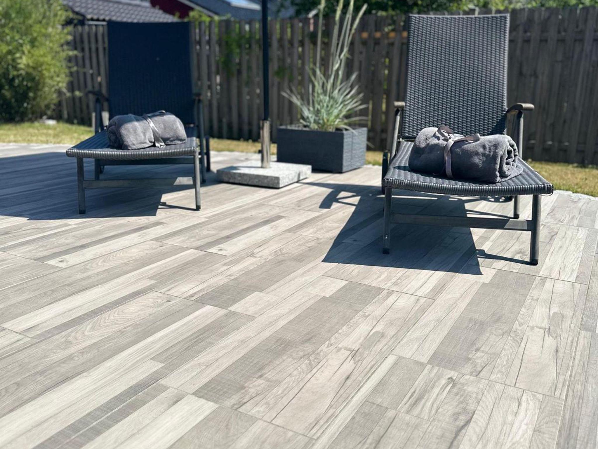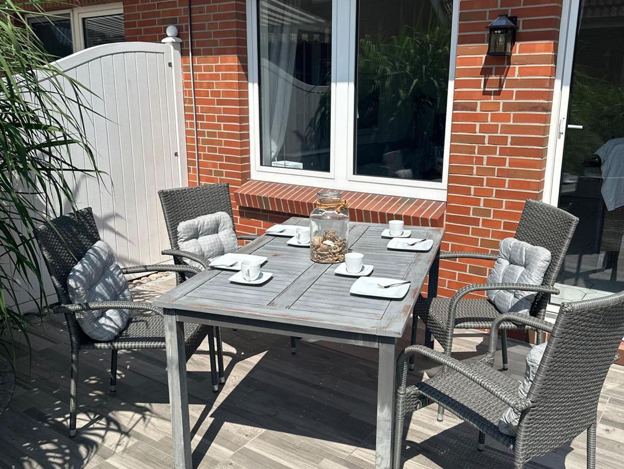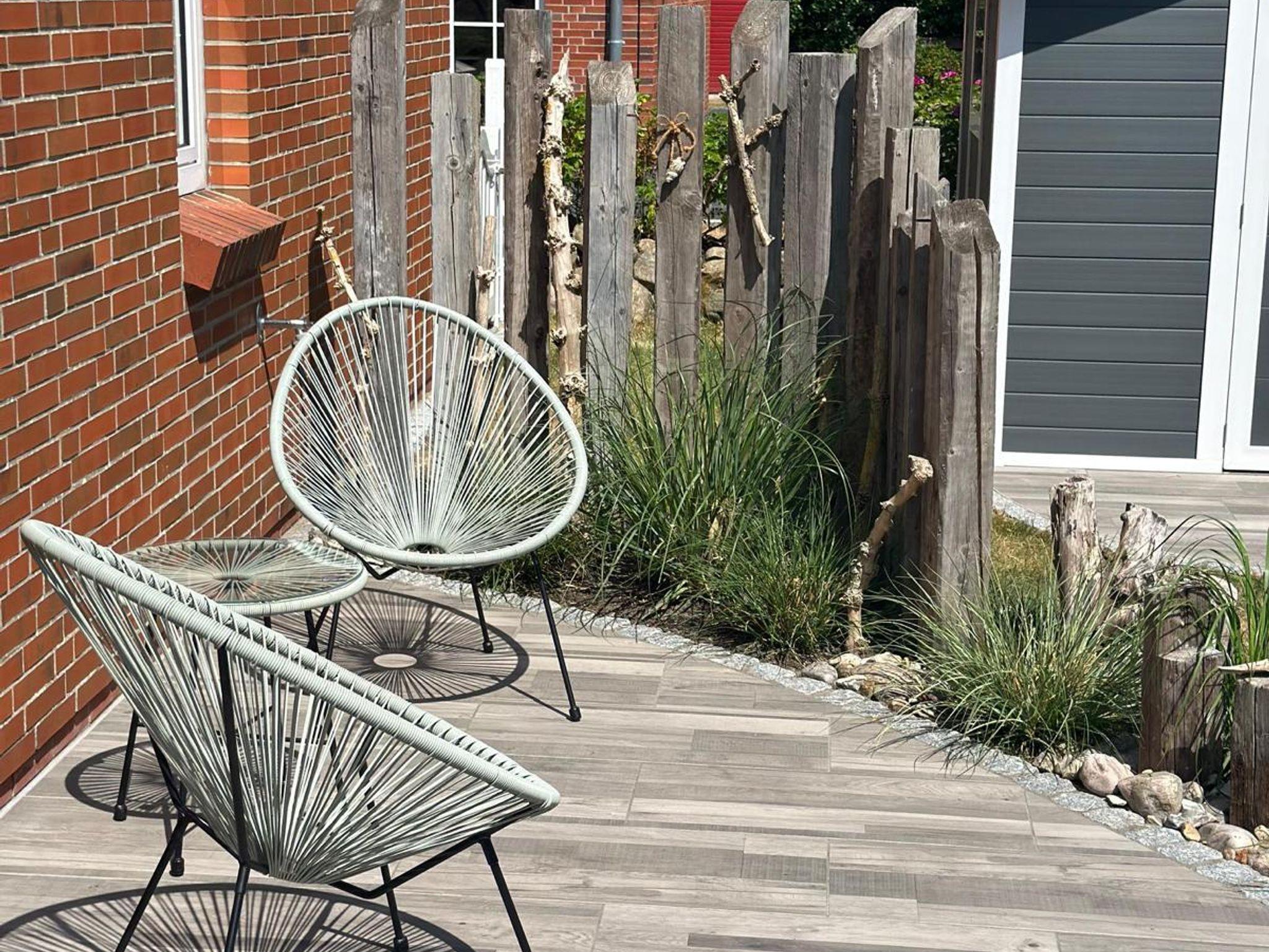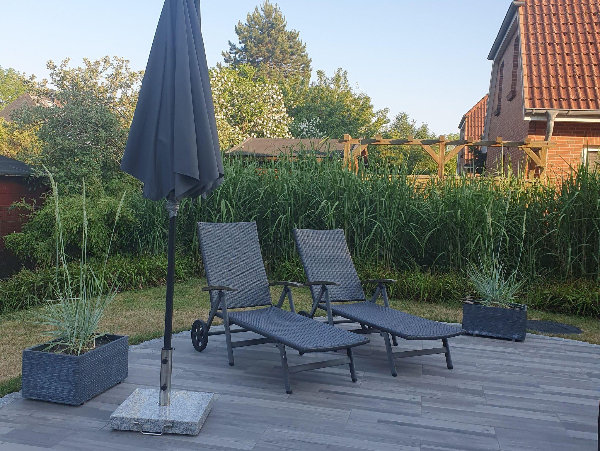 Auch eine Waschmaschine mit dazugehörigen Details gehört zur Ausstattung. Eine großzügige Terrasse, die nach Süden und Osten ausgelegt ist, eingebettet in einem großen Garten, lädt zum Entspannen ein. Die Gartenmöbel zum Relaxen stehen dafür bereit.