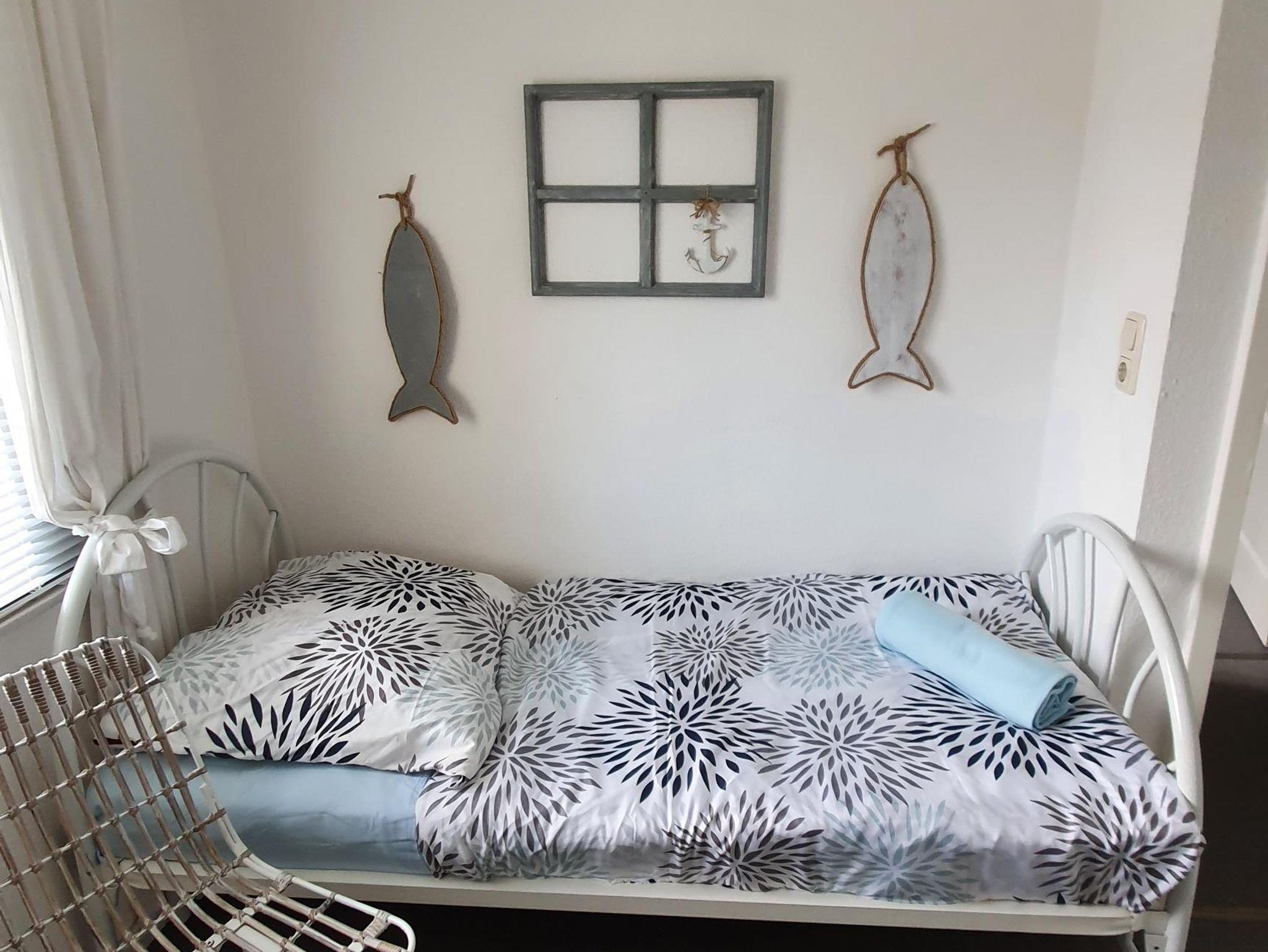 Das Obergeschoss bietet zwei getrennte Schlafräume, eines ist ausgestattet mit zwei Einzelbetten und einer kleinen Sitzgruppe, der zweite Schlafraum