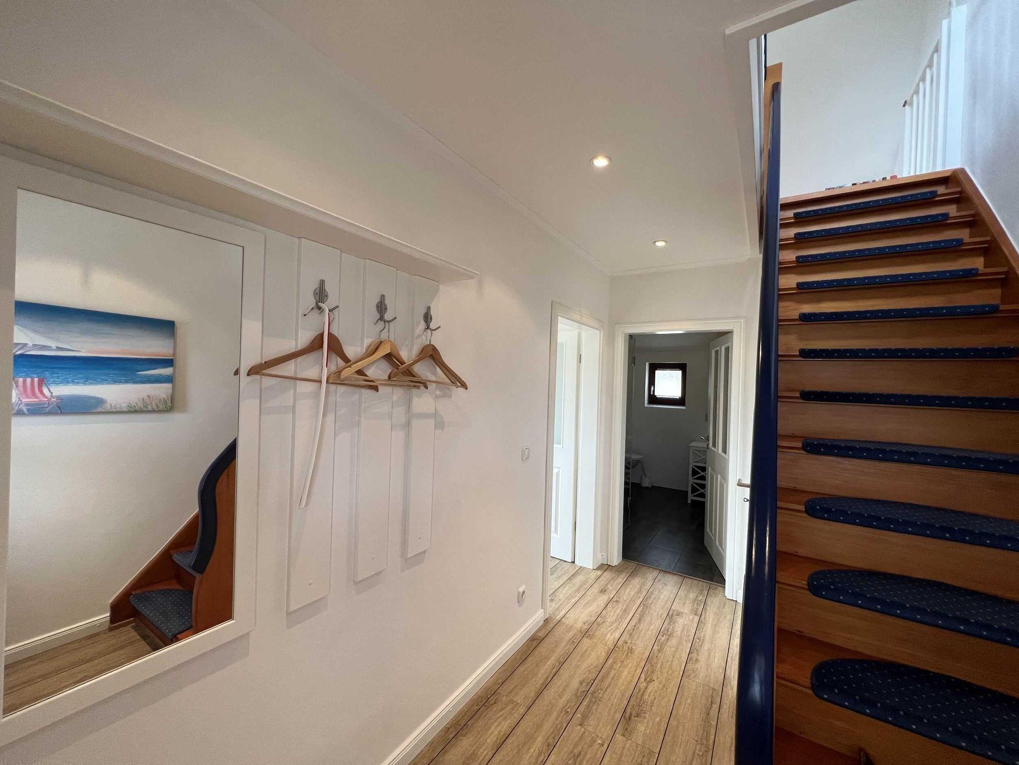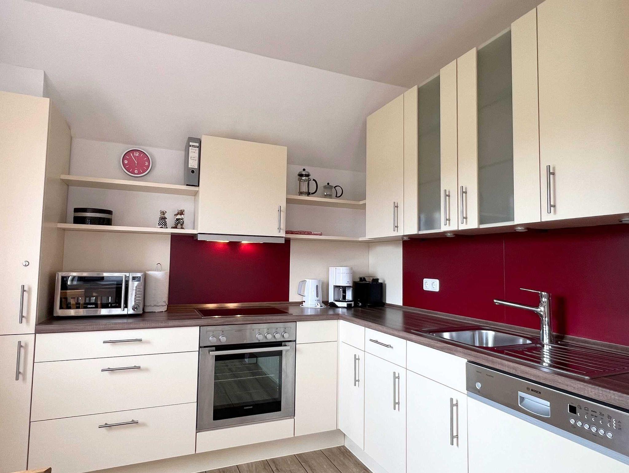Die Wohnung Wind ist eine großzügige, liebevoll eingerichtete 2 Zimmer-Wohnung für 2 Personen, ca. 60 m² groß, mit einer kleinen sonnigen Terrasse mit Gartenmöbeln, einer Gartenbank und einem Strandkorb. Sie befindet sich innerhalb einer Wohneinheit mit 3 Wohnungen im Ortsteil Böhl, umgeben von viel Grün. Im EG befindet sich der Wohn- und Essbereich mit einer integrierten und sehr komfortabel ausgestatteten Küche. Der Wohnbereich bietet eine gemütliche Sitzecke und einen Esstisch mit 4 Sitzplätzen. Das ebenfalls im EG befindliche Duschbad ist modern. Im offenen OG entspannen Sie im gemütlichen Schlafzimmer mit Doppelbett, Einbauschränke sorgen für die Ablage Ihrer Garderobe. Ein Relax-Sessel mit Leselampe lädt zusätzlich als Rückzugsmöglichkeit zum Lesen und Entspannen ein. Eine Aufbettung für 1 Kind (Matratzenwürfel) ist möglich. Babyreisebett und Kinderhochstuhl sind vorhanden.