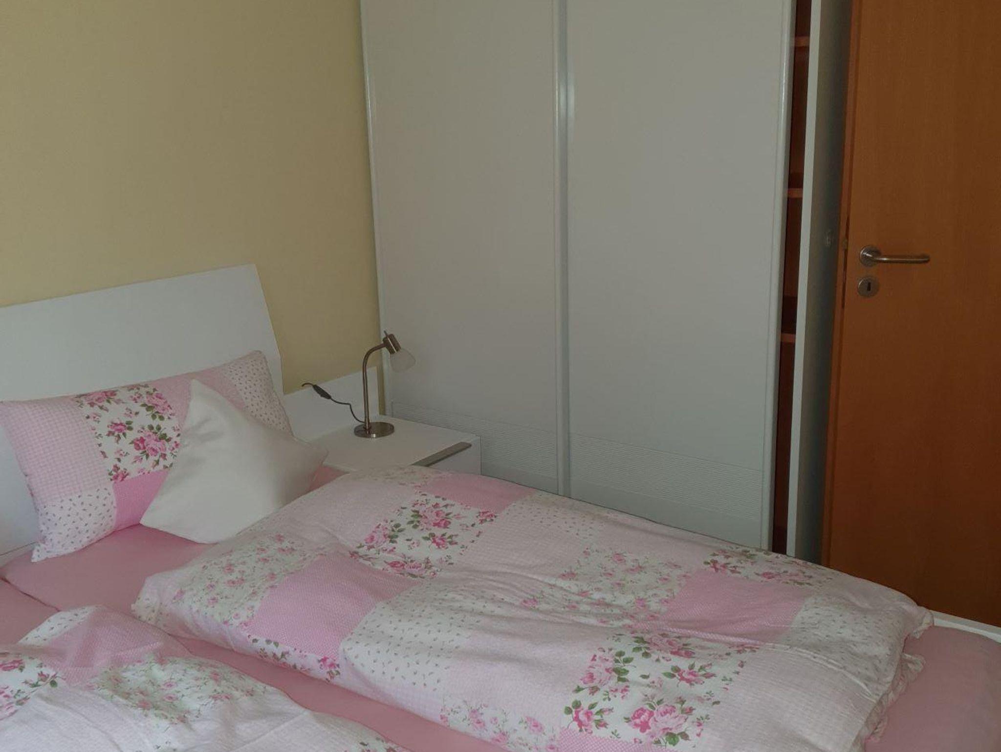 Zwei Schlafzimmer stehen zur Verfügung: eines mit zwei Einzelbetten, das andere mit einem komfortablen Doppelbett. Beide Zimmer sind mit Kleiderschränken ausgestattet.