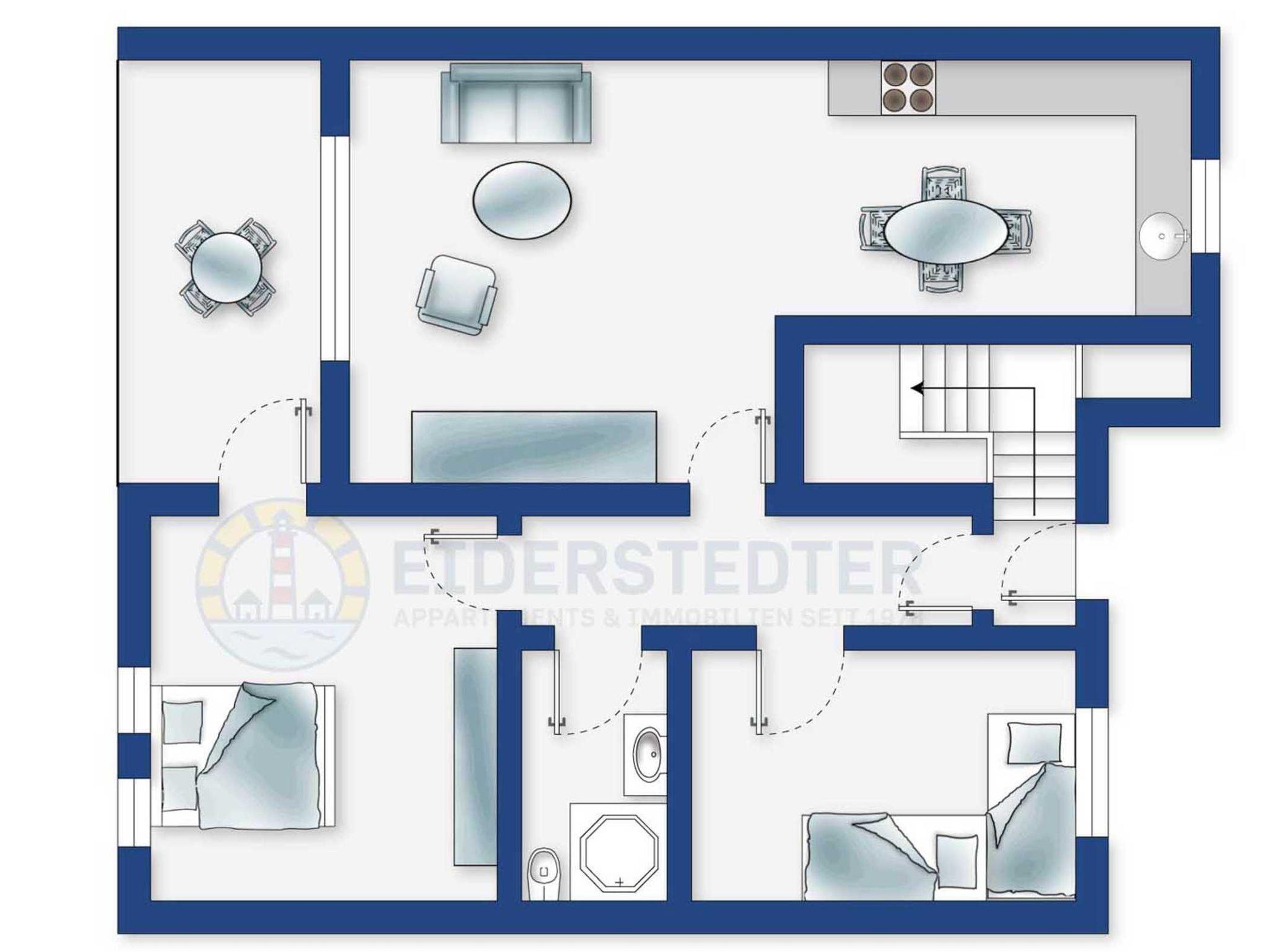 Gemütliche 3-Zimmer-Ferienwohnung im Haus Paulsen mit ca. 60 qm auf 1 Ebene (EG) für bis zu 4 Personen. Zentrumsnahe Lage im Ortsteil Dorf in Sankt Peter-Ording. Bis den Geschäften und Restaurants der Dorfstraße sind es nur wenige Gehminute. Den Strand erreichen Sie ebenfalls in wenigen Minuten zu Fuß. Die Reithalle ist in direkter Nachbarschaft. Mit schöner, möblierter Terrasse nach Westen.