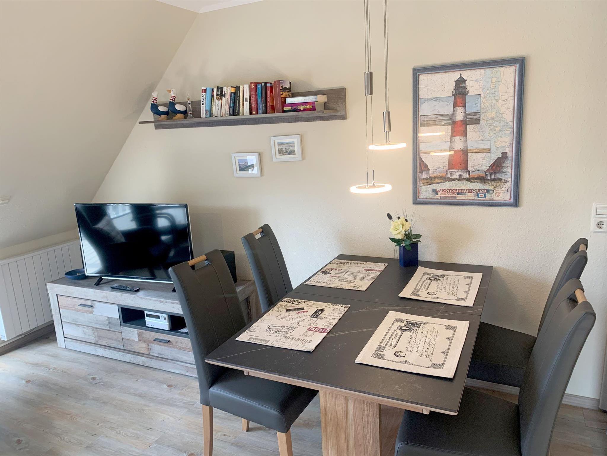 Mit der gut ausgestatteten 3-Zimmer-Ferienwohnung Sommerdeich Nr. 16, Westmarken 37a, mieten Sie eine geräumige und gemütliche Maisonette-Wohnung für 4 Personen. Neben dem Doppelbett gibt es im 2. Schlafzimmer noch 2 weitere Einzelbetten. Die offene Küchenzeile lädt zum Kochen und Backen ein. Im hell gekachelten Bad steht eine Waschmaschine. Auf dem West-Balkon atmen Sie die gute Seeluft ein.