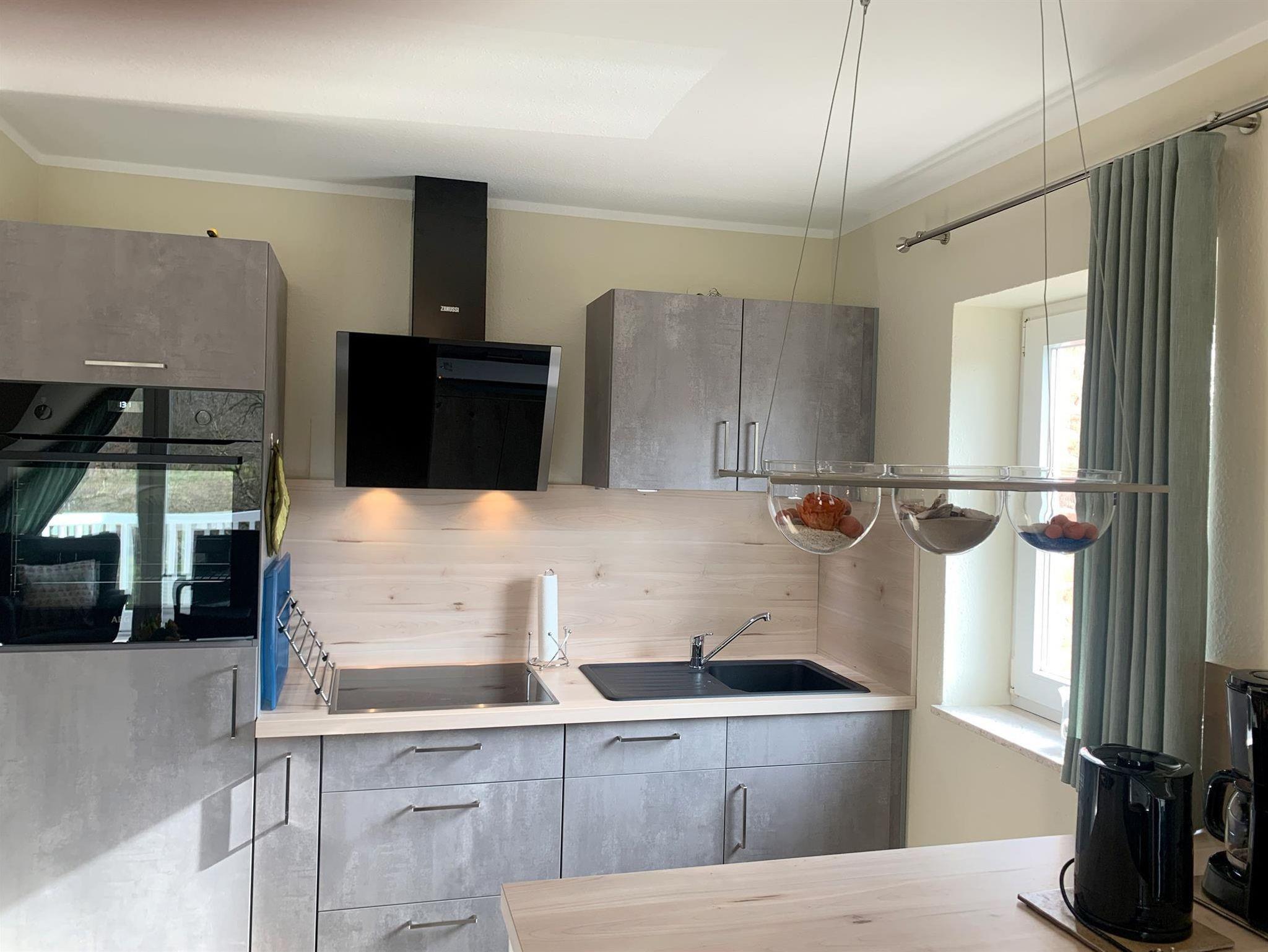 Wohnzimmer2 Couch, Couchtisch, Sessel, Beistelltisch, Tischlampe, Vitrine, TV-Schrank, Sat-TV, Stereoanlage mit CD-Player, Esstisch, Stühle, Treppe nach oben, Küchenzeile, 4 Plattenherd mit Backofen, Dunstabzugshaube, Kühlschrank, Spülmaschine, Kaffeemaschine, Wasserkocher, Toaster, Geschirr, Kochtöpfe. Abstellraum= Bügeleisen, Bügelbrett, Wäscheständer, Staubsauger
