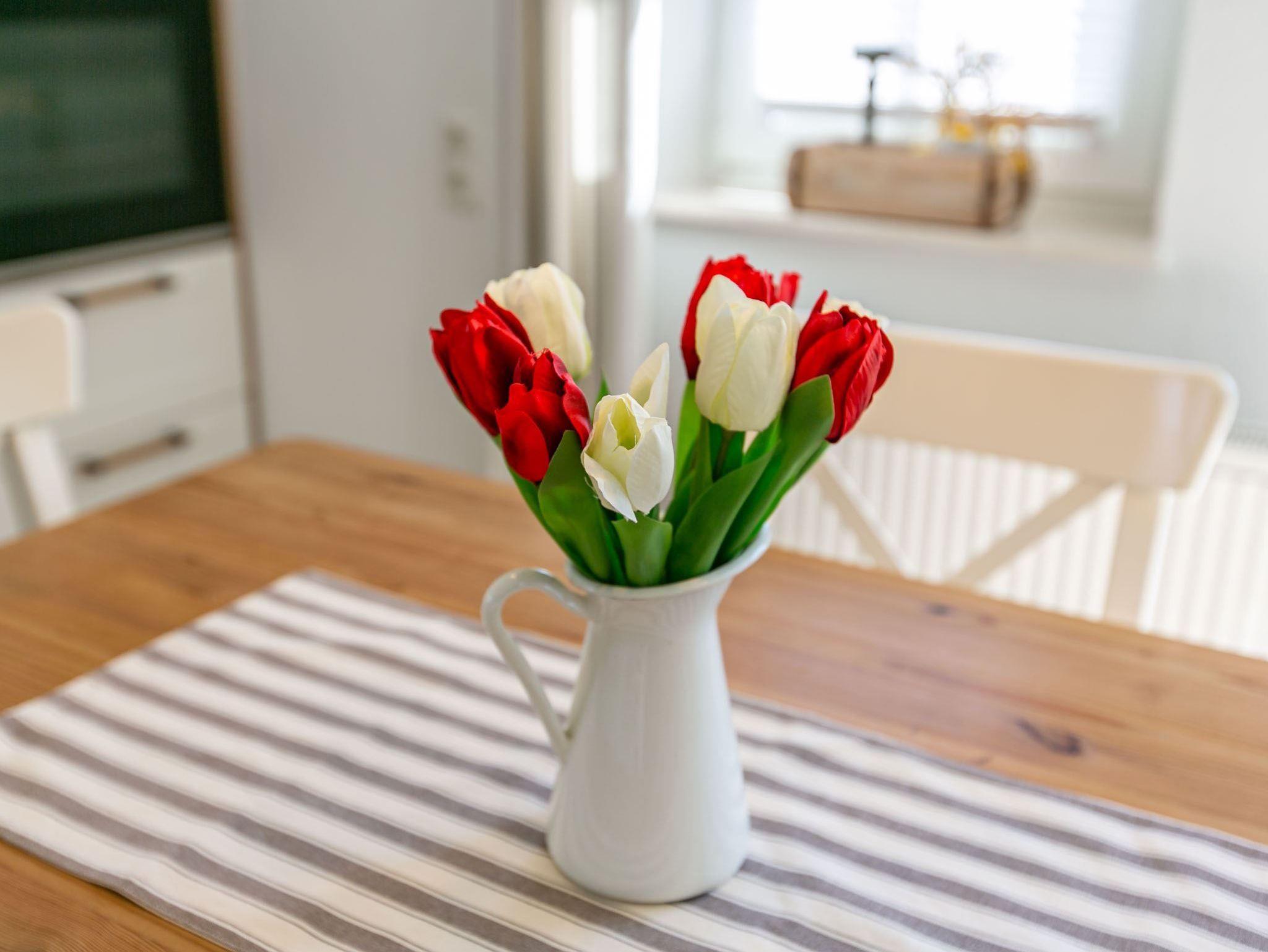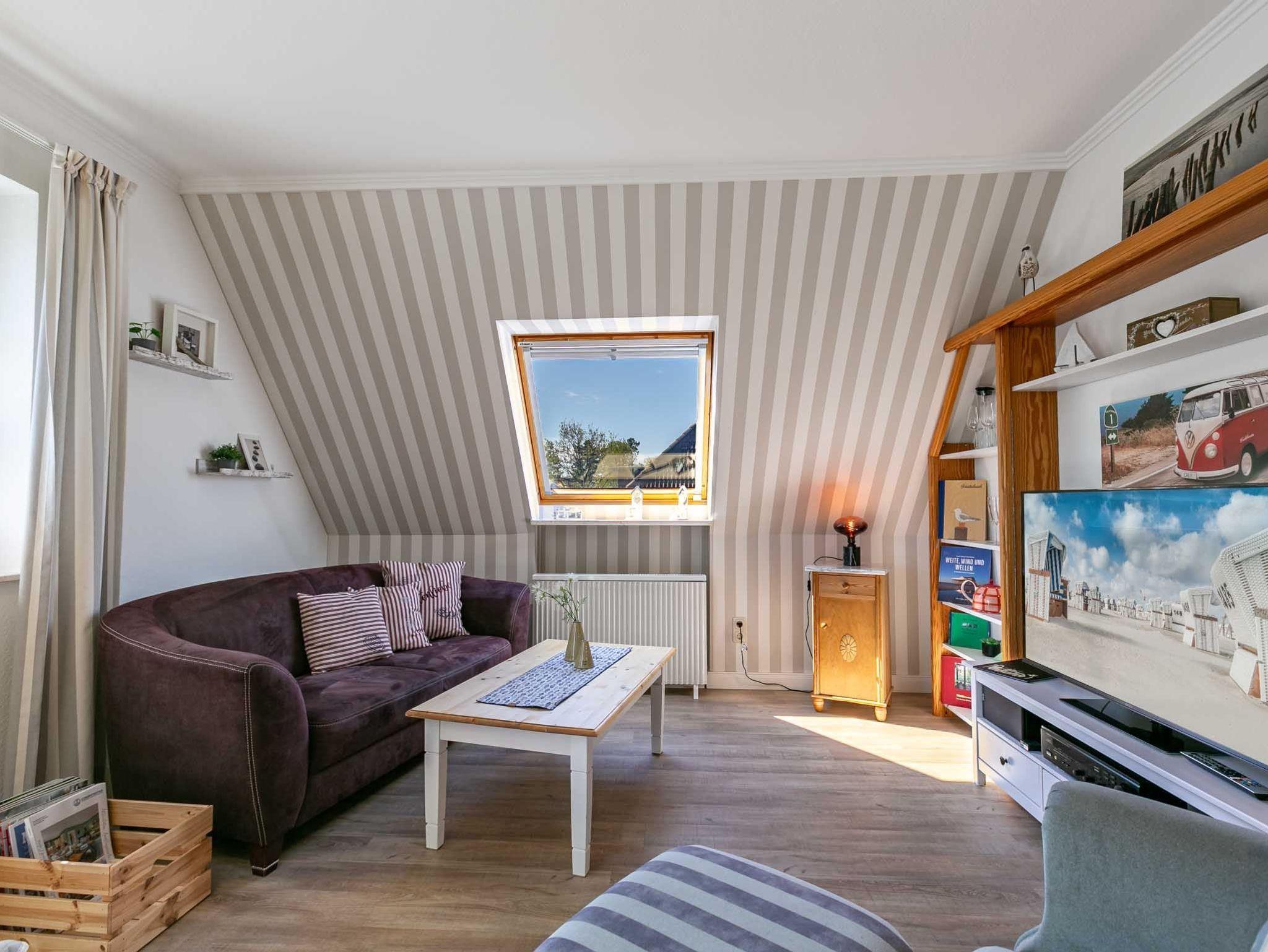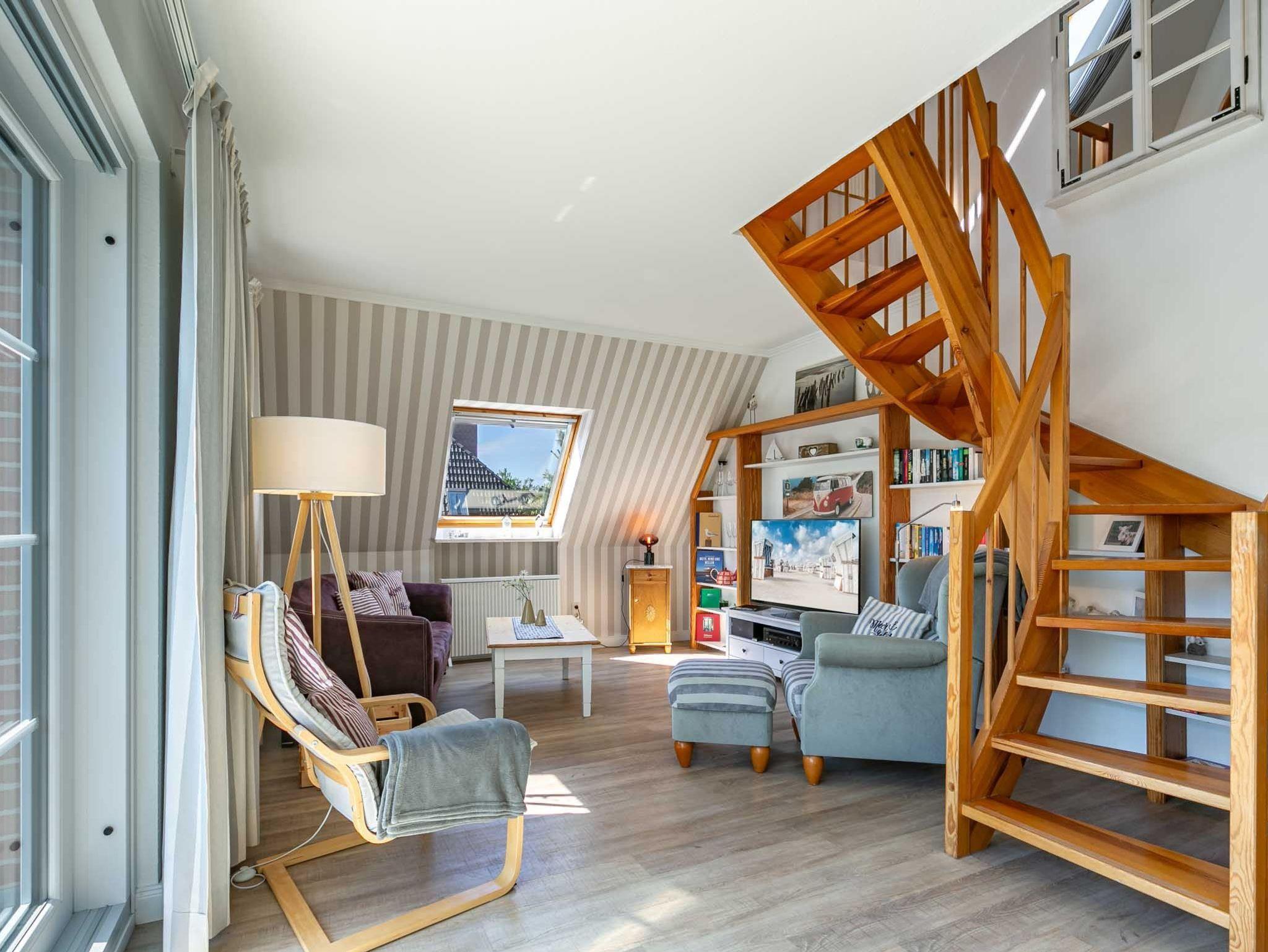 Exklusive 2 1/2-Zimmer-Ferienwohnung mit ca. 58 m² auf 2 Ebenen (OG, DG) für bis zu 4 Personen. Viel frische Luft, Ruhe und Erholung erwarten Sie hier. Sehr ruhige Lage am Wäldchen im Ortsteil Dorf in St. Peter-Ording und trotzdem nah zu den Einkaufsmöglichkeiten und der Gastronomie in der Dorfstraße. Das liebevoll eingerichtete Domizil Lütte Stuv bietet komfortables Wohnen auf höchstem Niveau. Ein kleiner Hund (bis 10 kg) ist herzlich willkommen.