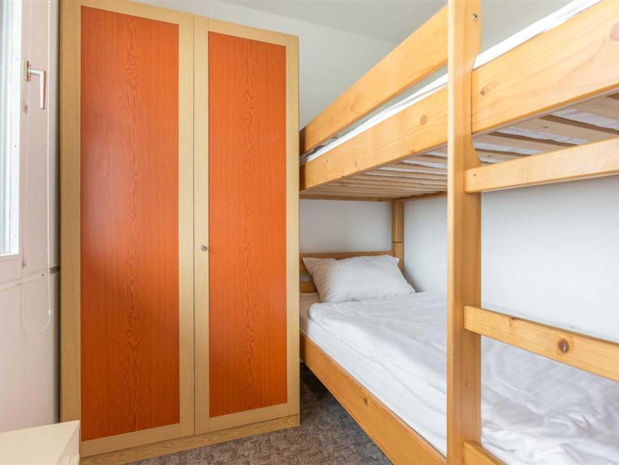 2. Schlafzimmer mit 2 Etagen-Einzelbetten (je 90x190cm), Kleiderschrank und kleinem Meerblick.
