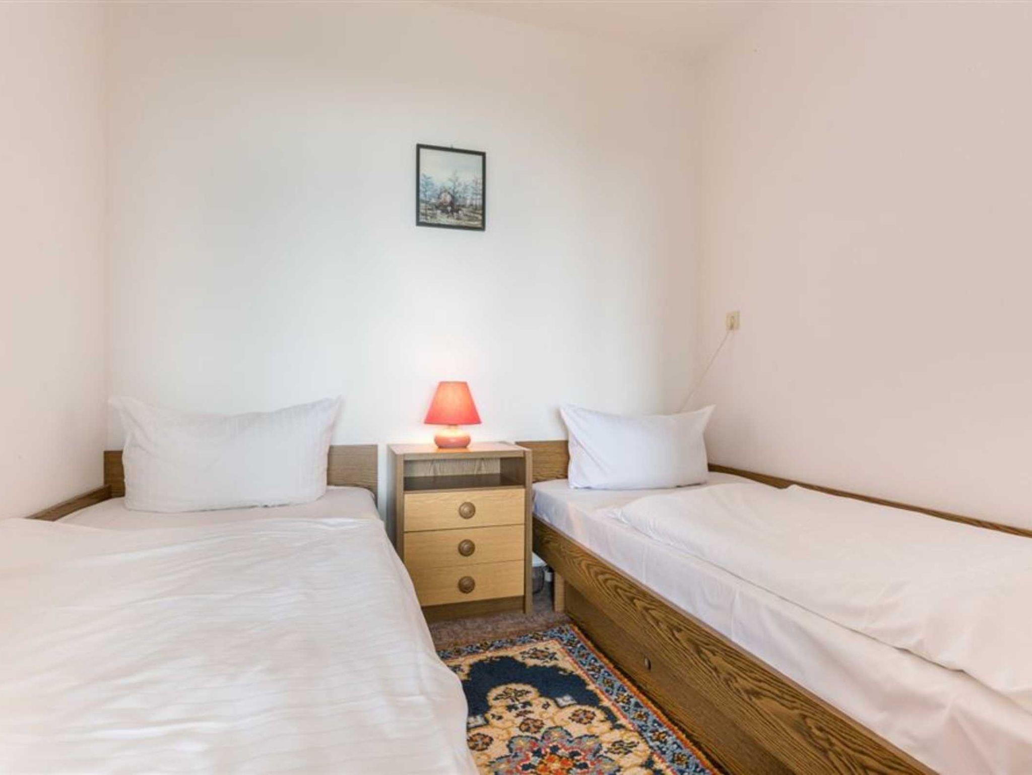 1. Schlafzimmer mit 2 Einzelbetten (je 90x200cm). Dieses Schlafzimmer ist durch einen Vorhang vom Wohnzimmer abgeteilt.