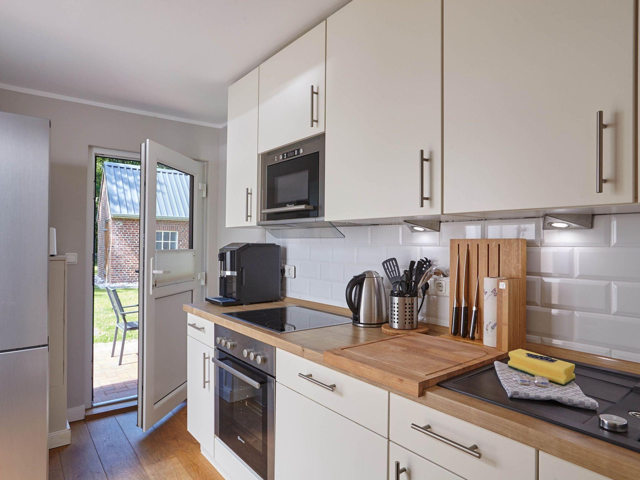 Sehr komfortable, bis Ende Mai 2022 kernsanierte ruhig gelegene 5* Ferien-Haushälfte (EG+OG), für 1-6 Personen. Dünenrandlage, strandnah. Drei separate Schlafzimmer, 2 Bäder, großes Wohnzimmer und Eßzimmer – kostenfreies WLAN laden zum Verweilen ein. Nordseefeeling pur stellt sich ein – die Lage ist prickelnd: in Dorfnähe und direkt an den Dünen. Im stilvollen, hellen Wohn- und Esszimmer ist moderne Unterhaltungselektronik mit geschmackvollen Interieur vereint. Die separate Küche bietet alles, was Sie für die Zubereitung von leckeren Mahlzeiten benötigen. Des Weiteren verfügt das Erdgeschoss über ein Schlafzimmer und ein Duschbad mit einem kombinierten Waschtrockner. Im Obergeschoss erwartet Sie ein großes Schlafzimmer mit einem Doppelbett mit Flachbild TV, ein weiteres Schlafzimmer mit 2 Einzelbetten und ein Duschbad. Alle Wohn- und Schlafräume sind mit Eichendielen ausgestattet. Das Ferienhaus bietet für 6 Personen das optimale Domizil auch für Familien. Für das Luft- oder Sonnenbad stehen die Terrasse, oder der große eingewachsene Garten am Dünenrand zur Verfügung. Das Haus wurde vom Deutschen Tourismusverband mit 5* zertifiziert.
