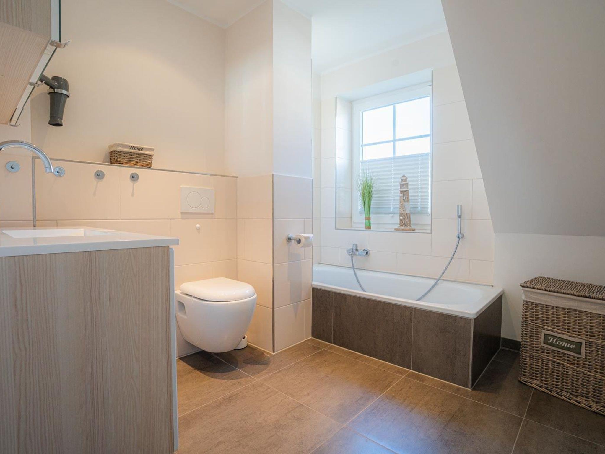 Exklusive Ferienhaushälfte ?Droemhus 44b? (hinten) mit 4 Zimmern und ca. 82 m² auf 2 Ebenen für bis zu 6 Personen. Ruhige Lage in einer Spielstraße im Ortsteil Dorf in St. Peter-Ording.