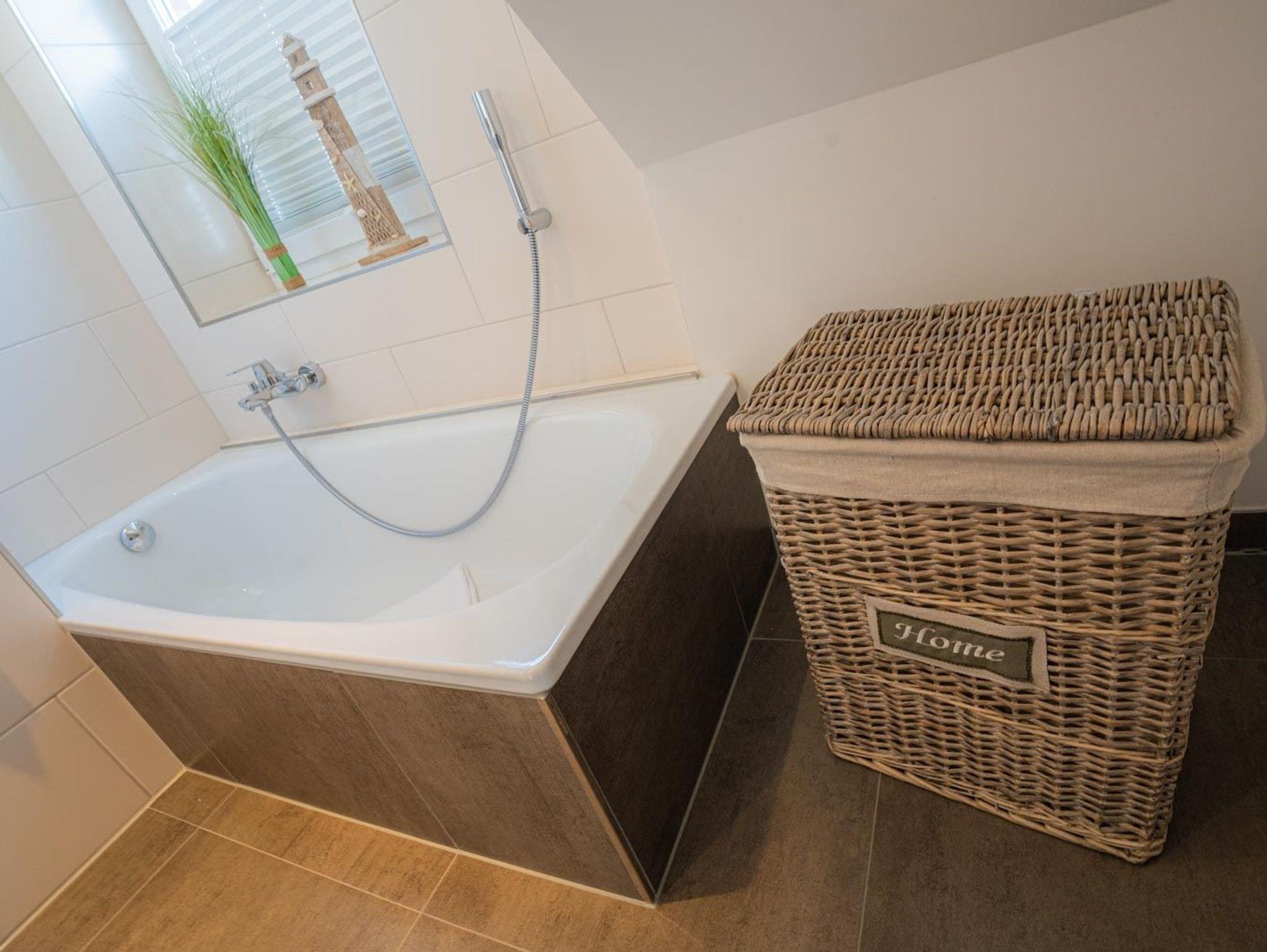 Flur mit Garderobe, Hauswirtschaftsraum mit Waschmaschine, Trockner und Bügelset. WLAN (Glasfaser), 1 Pkw-Stellplatz.