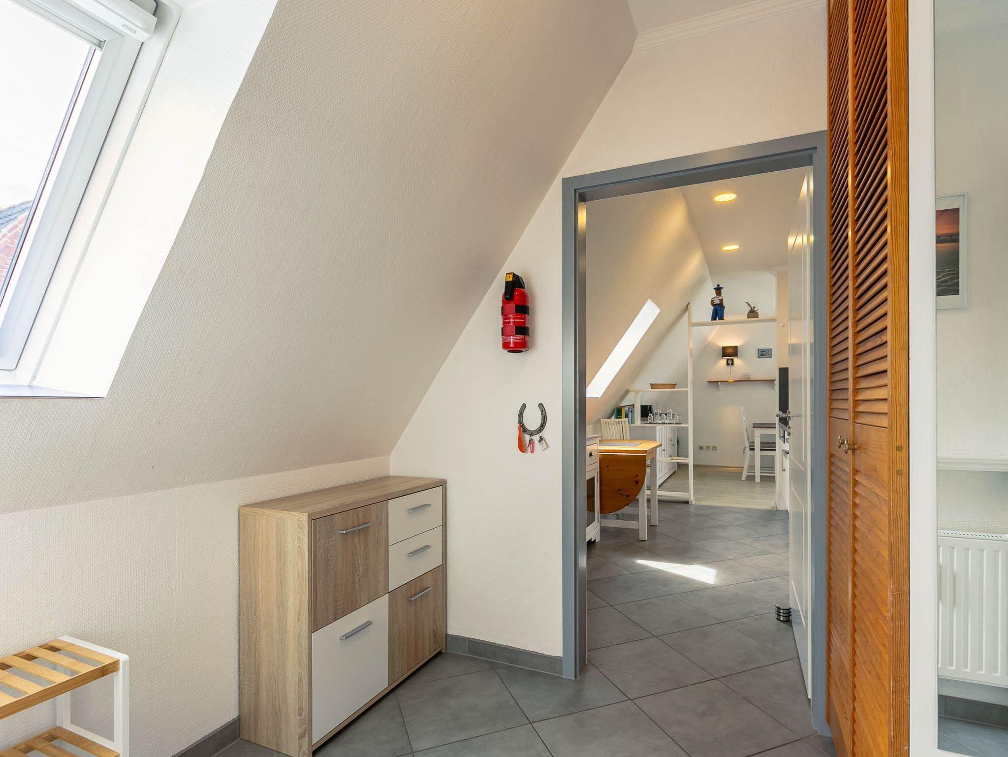 Gemütliche 2-Zimmer-Ferienwohnung Dorfoase mit ca. 55 m² auf 2 Ebenen (OG, DG) für bis zu 4 Personen. In zentraler Lage im Ortsteil Dorf in St. Peter-Ording. Viele Restaurants, Cafés, ein Supermarkt, Bäcker und die Geschäfte in der Dorfstraße sind in 150m bequem zu Fuß erreichbar, Ihr Auto können sie stehen lassen. Ideal für einen Familienurlaub mit allen Annehmlichkeiten des Zentrums vor der Haustür. Die Wohnung wurde 2023 umfangreich renoviert/modernisiert.