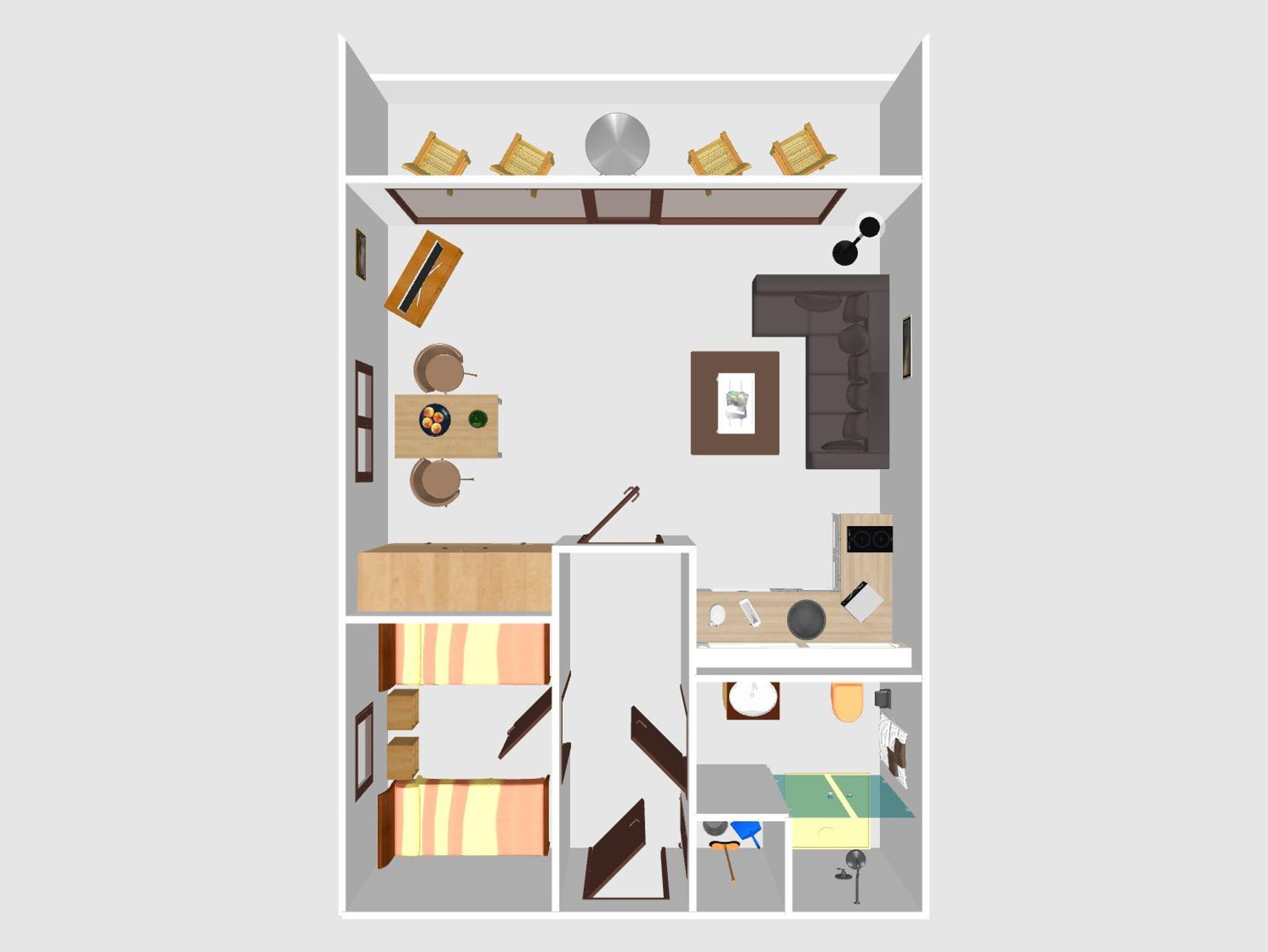 (1 Wohnzimmer, 1 Schlafzimmer, 1 Badezimmer)