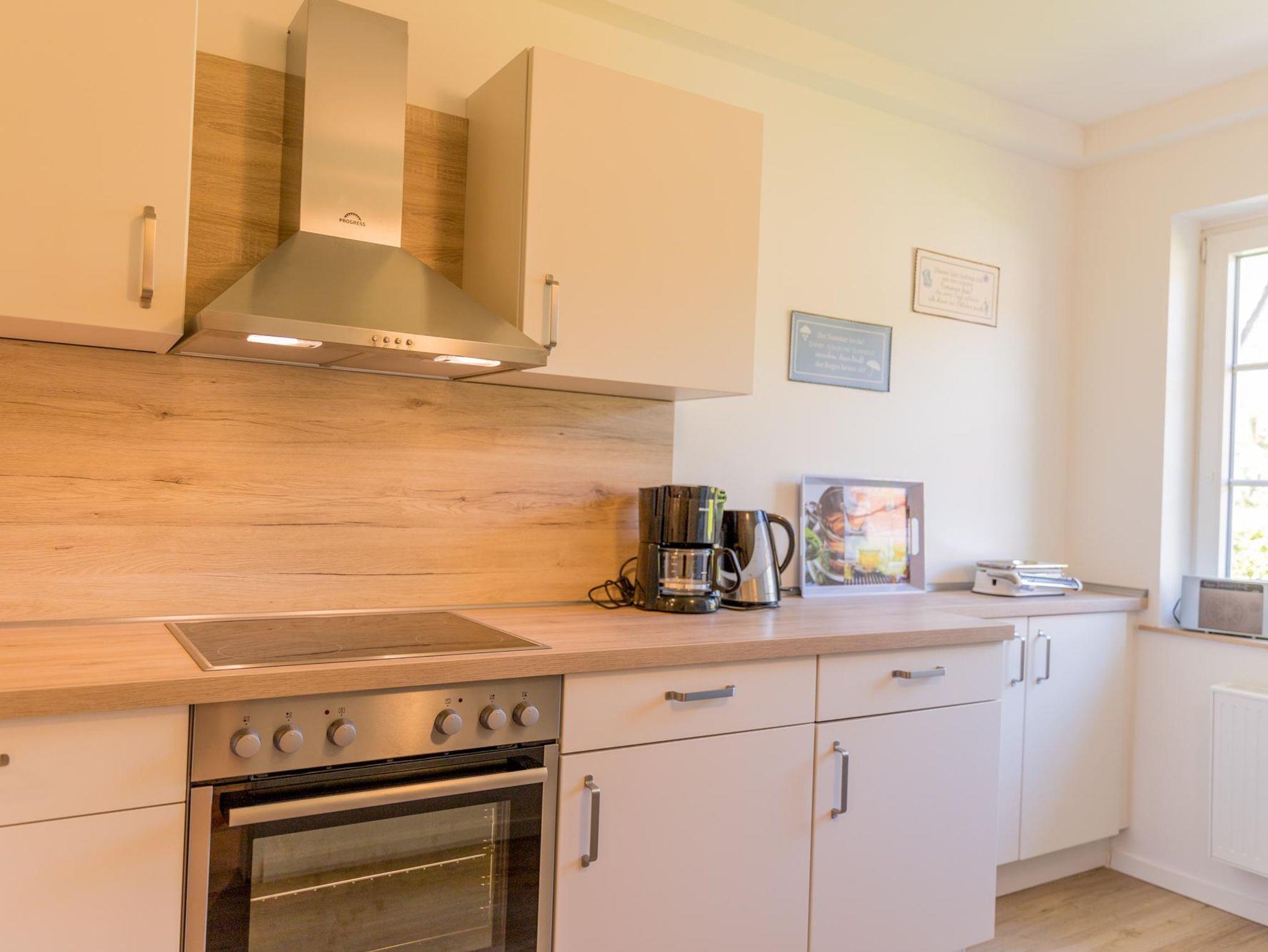 Schnuckelige Doppelhaushälfte mit großem Garten. So begrüßt Sie unser Ferienhaus Moja mit allem, was man für einen entspannten Urlaub benötigt. Die Küche ist voll ausgestattet mit Elektro-Herd, Backofen, Kühlschrank und Spülmaschine. Die Waschmaschine steht hier ebenfalls für Sie bereit.