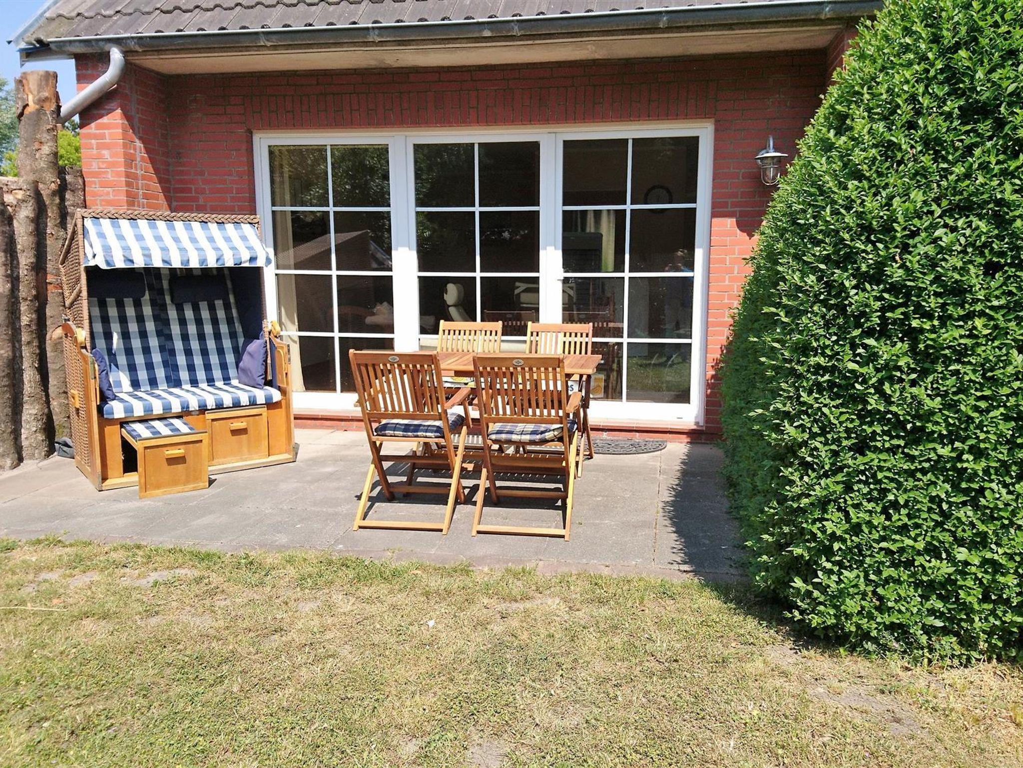 Eine Terrasse mit Gartenmöbeln und Strandkorb lädt ein zu gemütlichen Grillabenden (Holzkohlegrill vorhanden), im Gartenhaus finden Sie Liegen, 2 Fahrräder stehen kostenlos zur Verfügung.