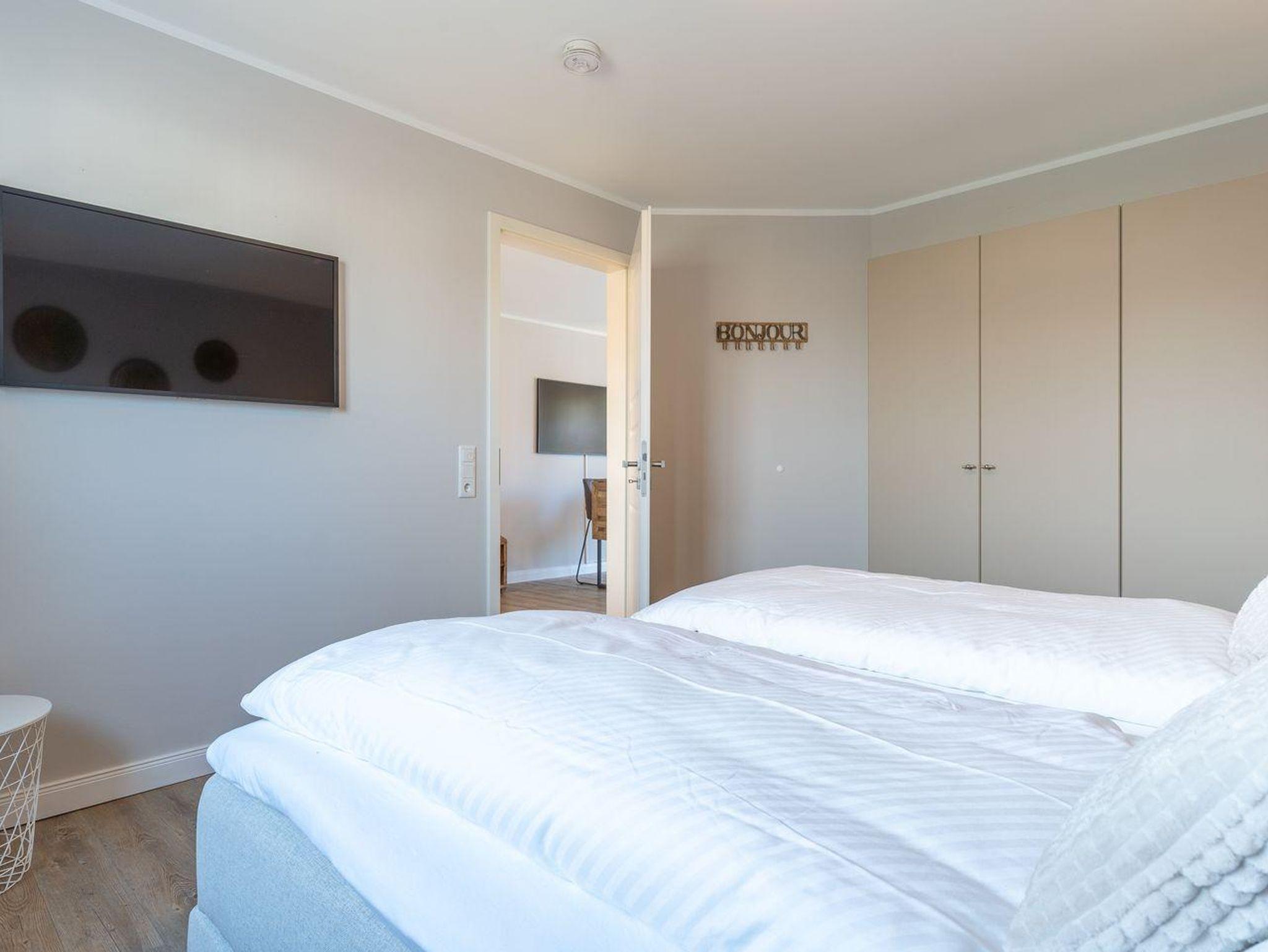 Das großzügig geschnittene Schlafzimmer mit ausreichend Stauraum verspricht erholsame Nächte. Zusätzlich gibt es im Wohnzimmer ein gemütliches Schlafsofa für eine Personen.