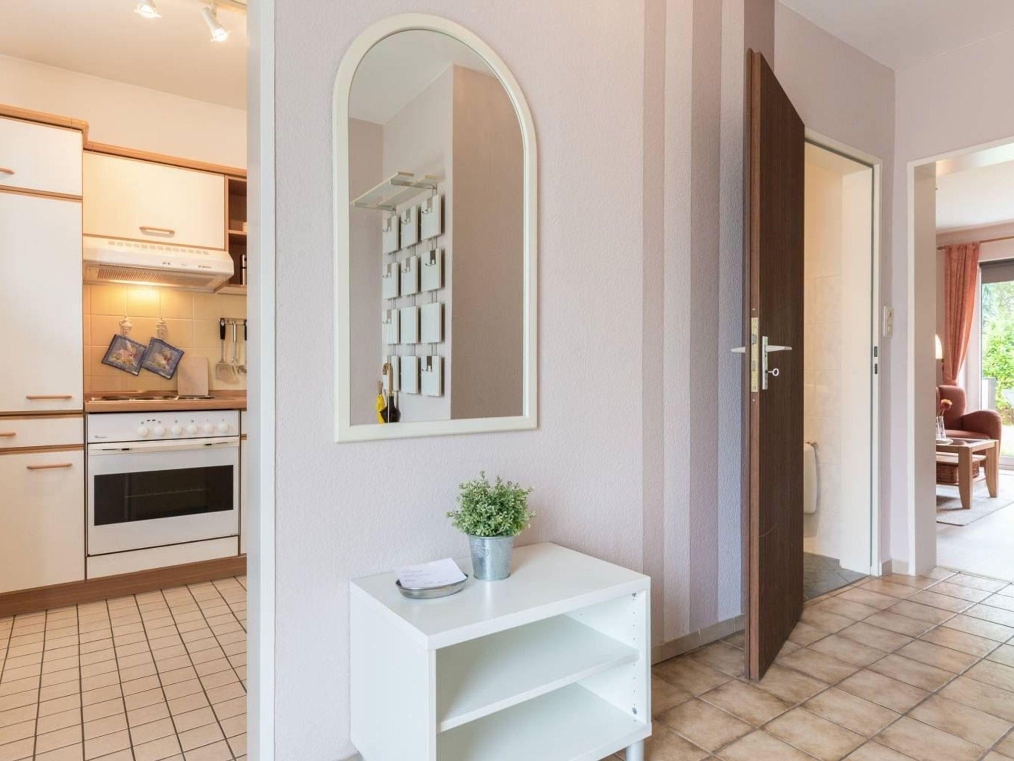 Flur mit Garderobe, Schuhschrank und Spiegel im Eingangsbereich. Abstellraum mit Bügelbrett und Wäscheständer vorhanden.