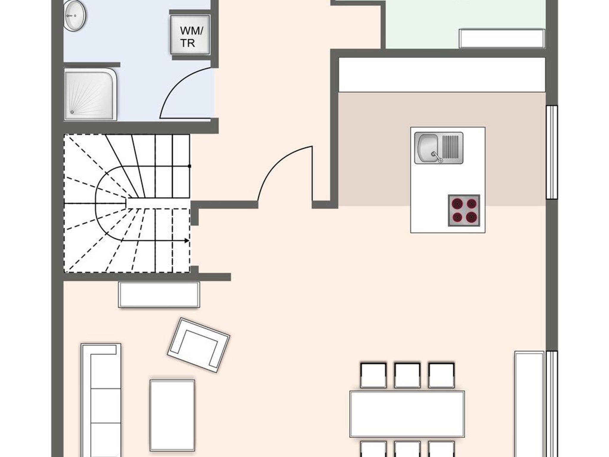 Im Erdgeschoss befindet sich der lichtdurchflutete Wohnraum mit TV, einer großen offenen Küche sowie einem gemütlichen Essbereich.