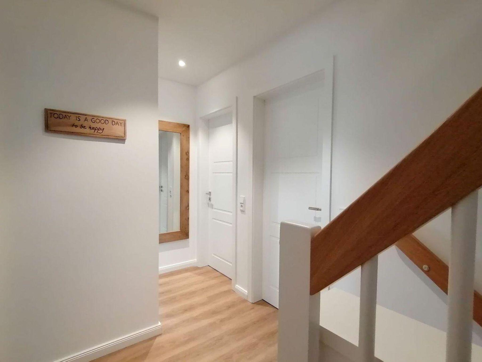 Vom Flur mit Garderobe, welche ausreichend Platz für Jacken und Schuhe bietet, gelangen Sie in ein Duschbad. Außerdem befindet sich im Erdgeschoss ein Arbeitszimmer.