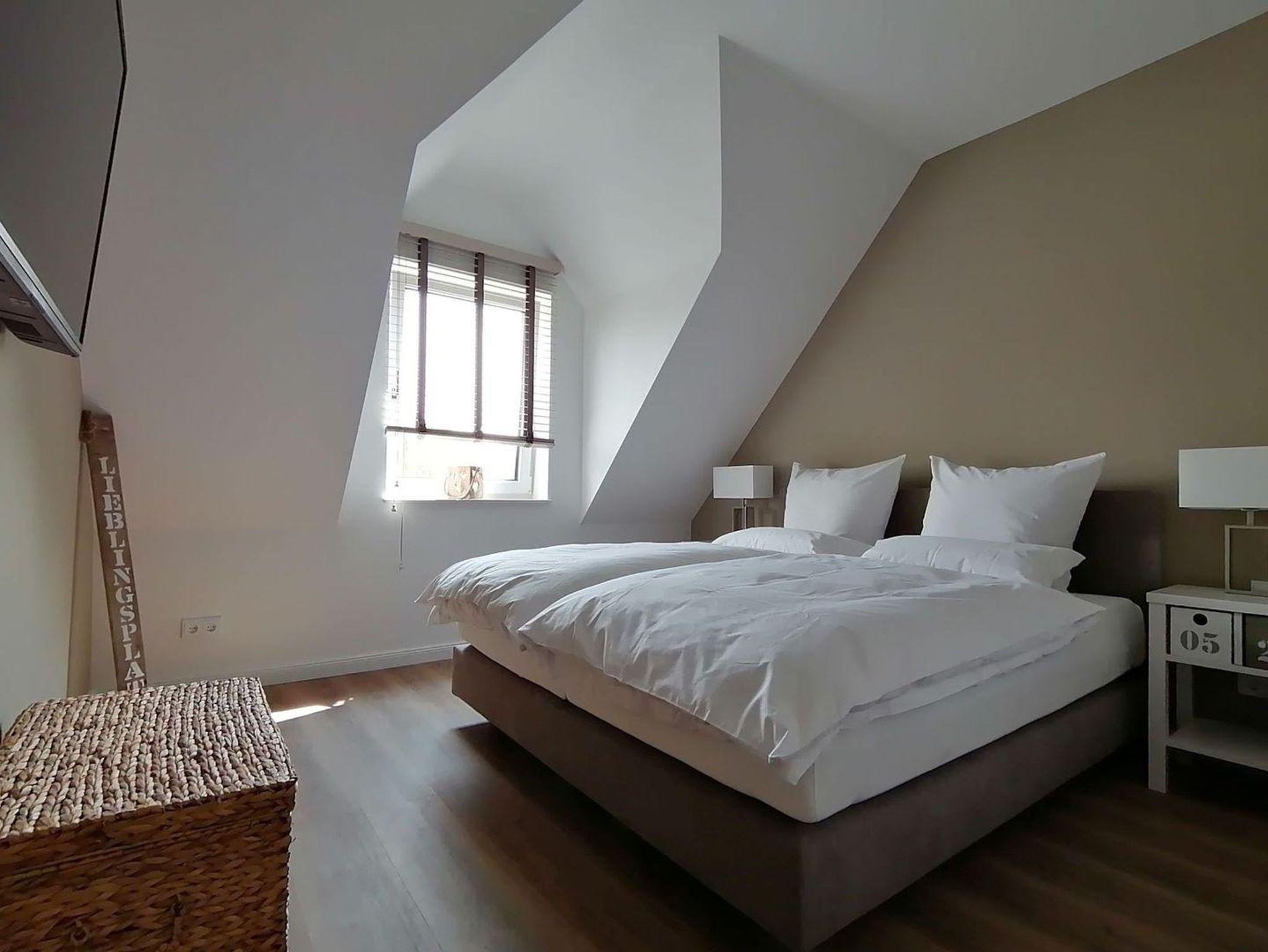 Über eine weitere Holztreppe geht es vom Flur ins Dachgeschoss. In dem großzügigen Dachgeschoss stehen Ihnen noch zwei weitere Einzelbetten zur Verfügung.