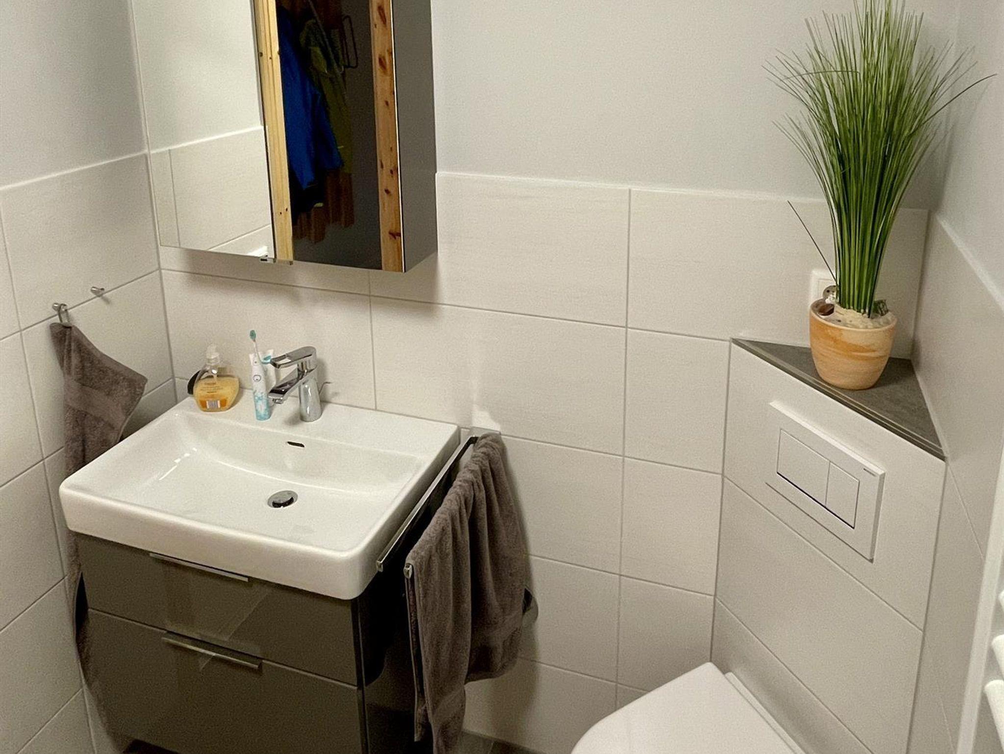 Im Badezimmer steht neben Dusche/WC auch eine Waschmaschine zur Verfügung.