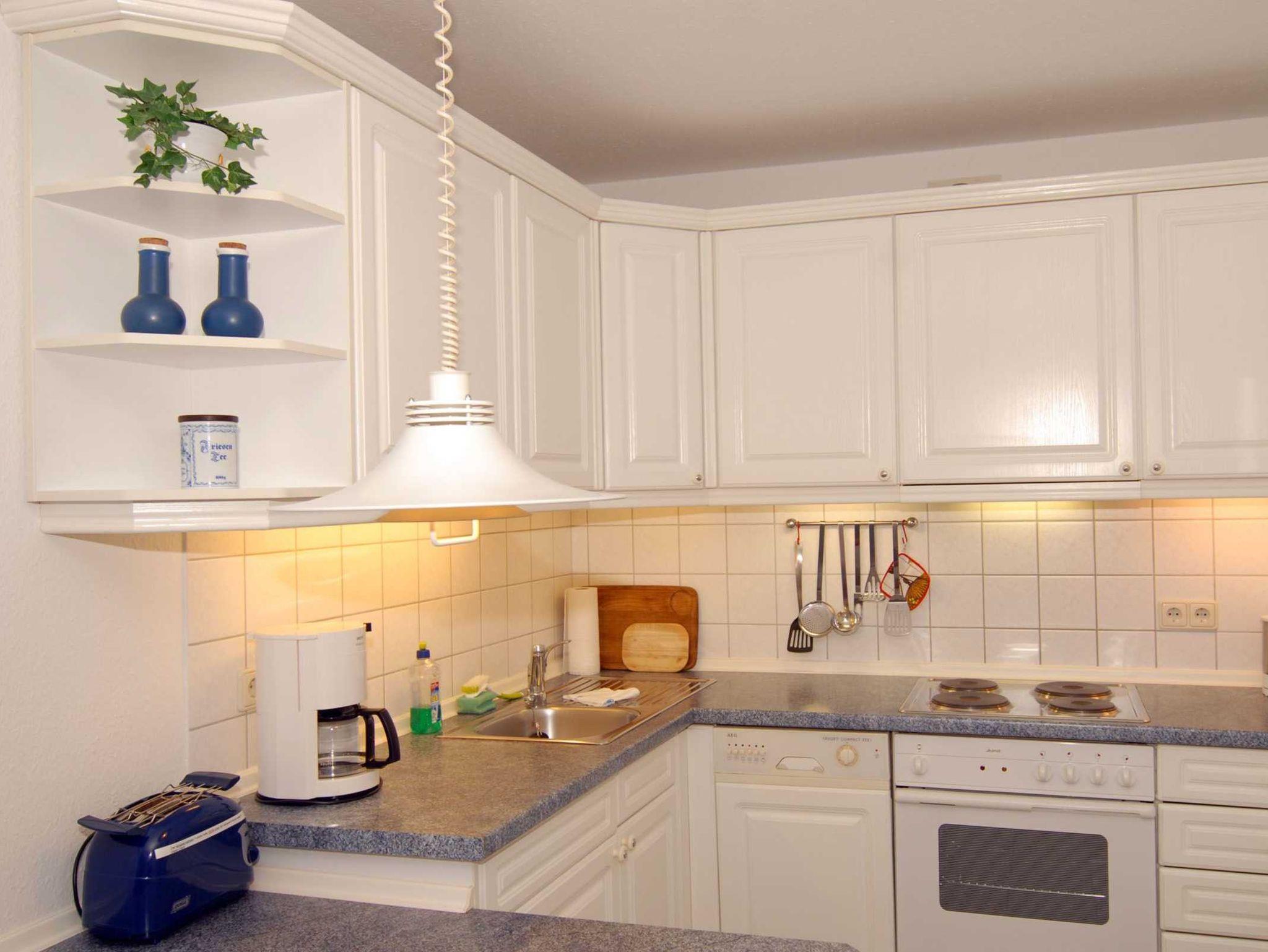Für unbeschwerte Urlaubstage Diese großzügige, hell und freundlich eingerichtete 2-Zimmer Ferienwohnung für Nichtraucher in St. Peter-Bad, für bis zu 2 Personen, liegt im 1. OG und Sie werden dort unbeschwerte Urlaubstage verbringen können. Besonders schön ist der Ess-Bereich mit der hübschen, weißen Landhausküche, die mit einem 4-Plattenherd und einem Backofen ausgerüstet ist. Neben dem Schrankdoppelbett im Wohnzimmer gibt es ein separates Schlafzimmer mit einem weiteren Doppelbett. Der in südöstlicher Richtung ausrichtete Balkon läd nach einem langen Strandtag zum Relaxen ein! Nicht kleinkindgerecht. PKW-Einstellplatz, Nr. 1.