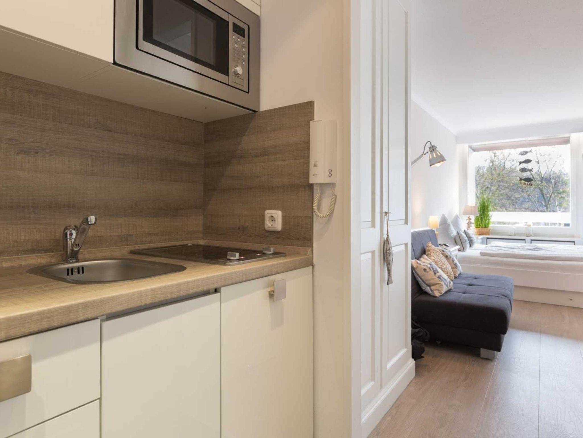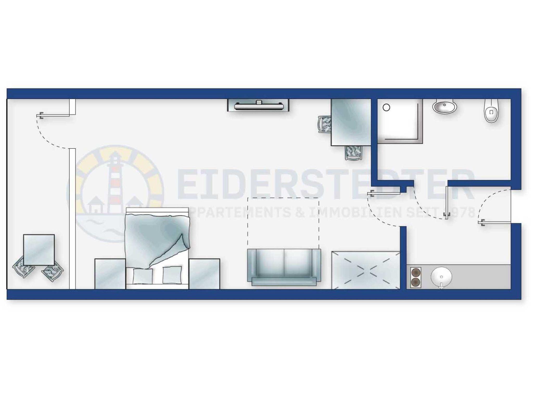 Geschmackvoll und hochwertig eingerichtetes Studio-Appartement Dünensonne im Bad im Haus Loreley mit ca. 26 qm auf 1 Ebene (1. OG) für bis zu 3 Personen (Wohlfühlbelegung: max. 2 Erwachsene). Zentrale Lage im Ortsteil Bad in St. Peter-Ording. Die Seebrücke, alle Geschäfte und Restaurants des Kurzentrums sowie die Dünentherme sind in direkter Nachbarschaft. Das Appartement ist auf die ruhige, straßenabgewandte Seite des Hauses ausgerichtet. Mit hochwertigen Tischler-Einbauten und vielen liebevollen Details. Ein Urlaubsdomizil der Extra-Klasse zum Wohlfühlen. Allergikerfreundliches Domizil ohne Teppichböden.