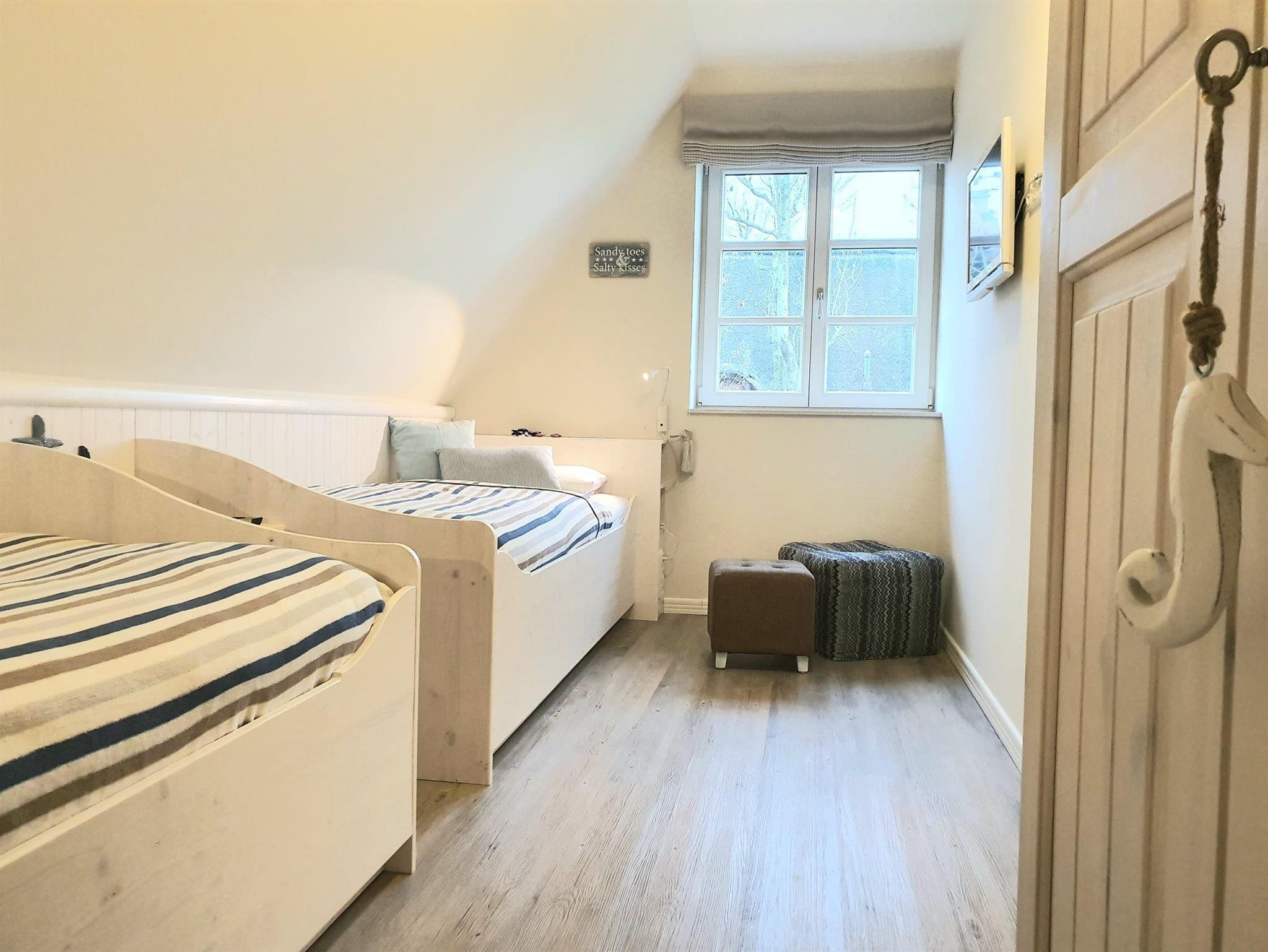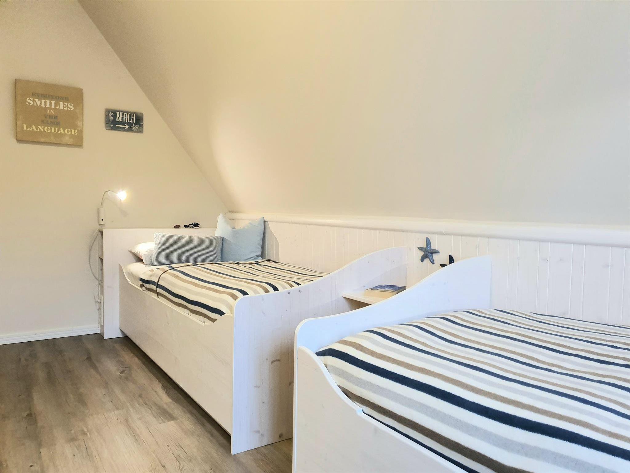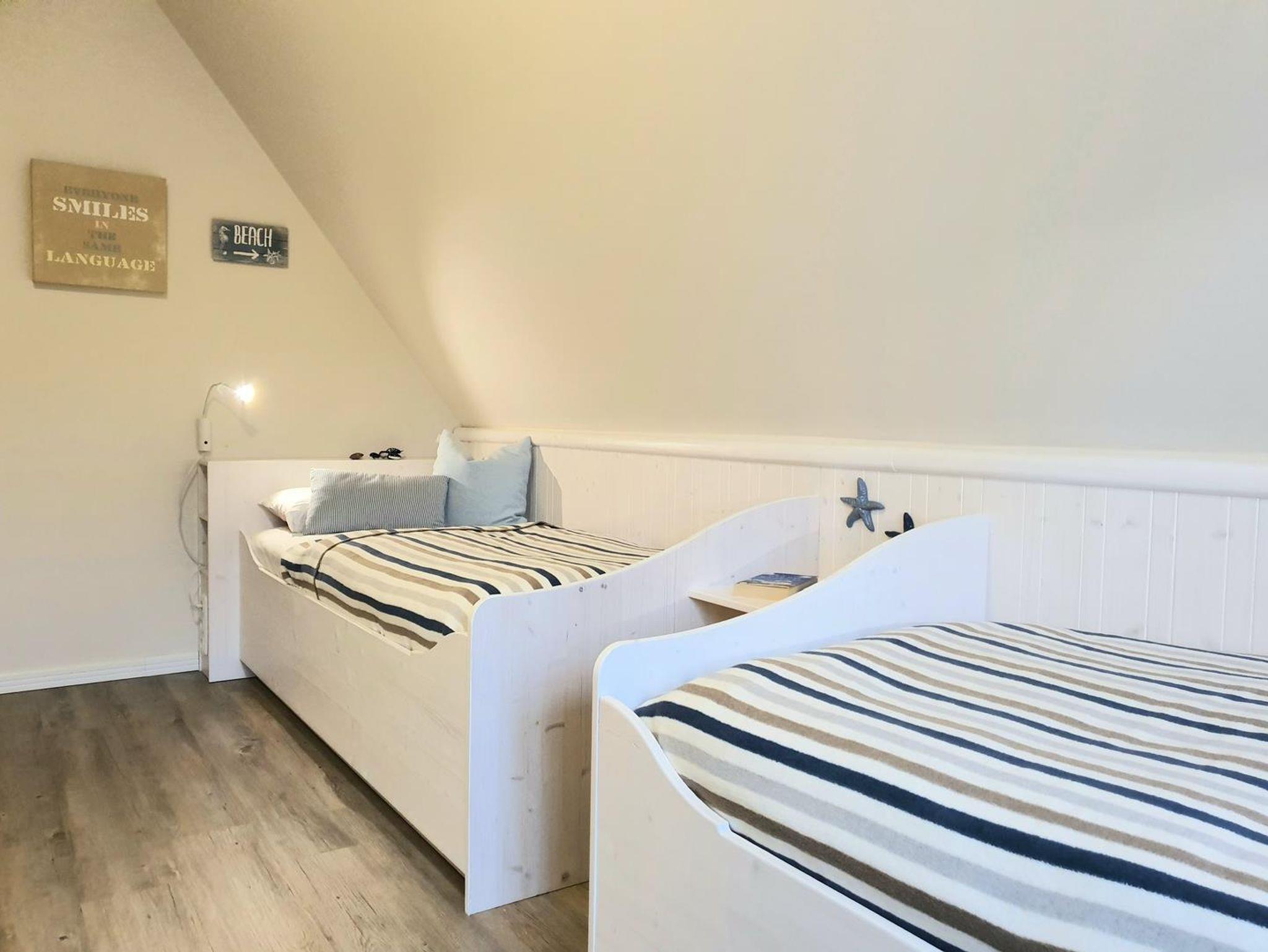 Komfortdetails: Fußbodenheizung, Insektenschutzgitter in allen Räumen. Abstellmöglichkeit für Fahrräder vorhanden. Eigener PKW-Stellplatz mit direktem Zugang z.Hausgrundstück. 2 sonnige Terrassen mit Weitblick. Großer Strandkorb. Bügelbrett, Bügeleisen, Safe, Kinderhochstuhl, Spiele, Fön. Das Grillen ist nicht erlaubt. Die 5. Person wird mit 5,00 Euro pro Tag zusätzlich berechnet (ab 2026 kostet die 5. Person 8,00 Euro pro Tag zusätzlich), das Haustier kostet 9,00 Euro pro Tag.