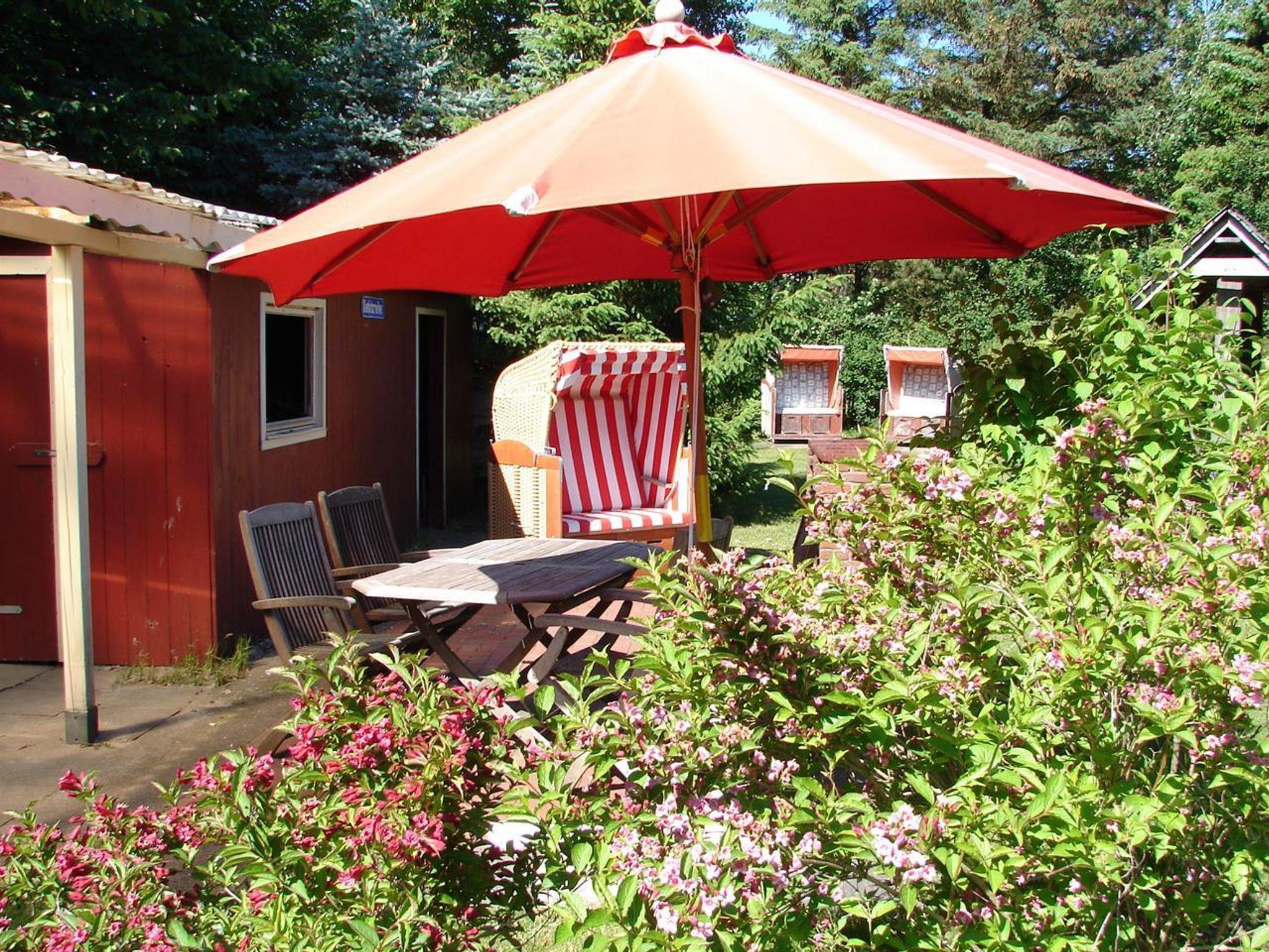Fernab vom Alltagstrubel steht Ihnen der Garten mit Liegefläche, Grün, Gartenmöbeln, Strandkörben und Grill zur freien Verfügung.