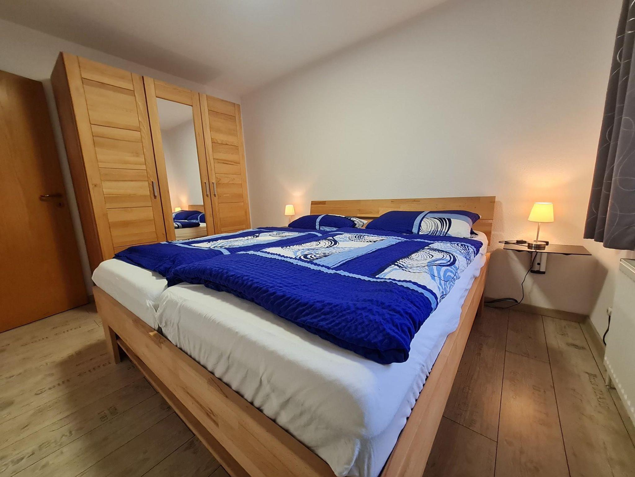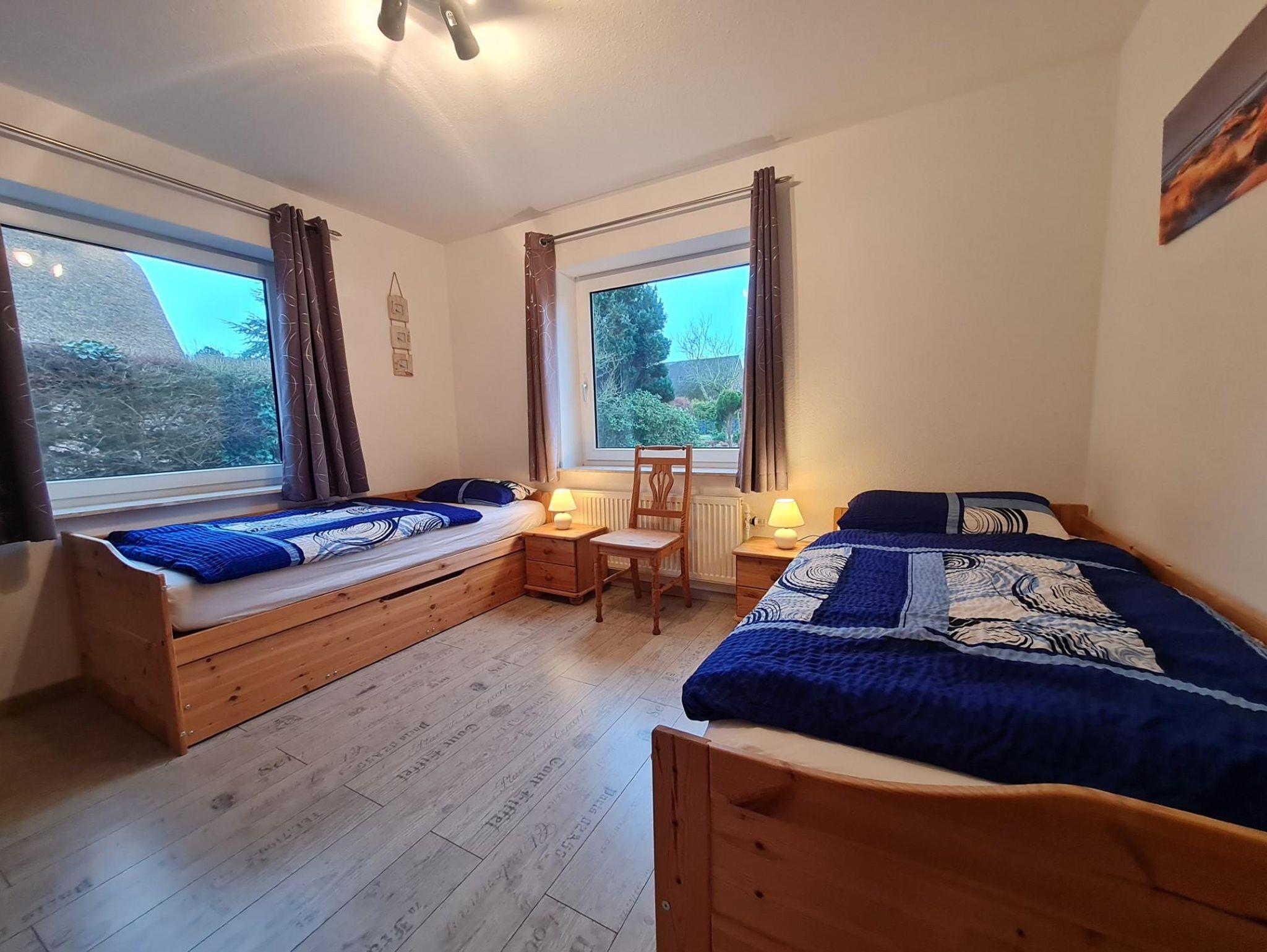 Ein Schlafzimmer ist mit einem Doppelbett, das andere mit zwei Einzelbetten ausgestattet.