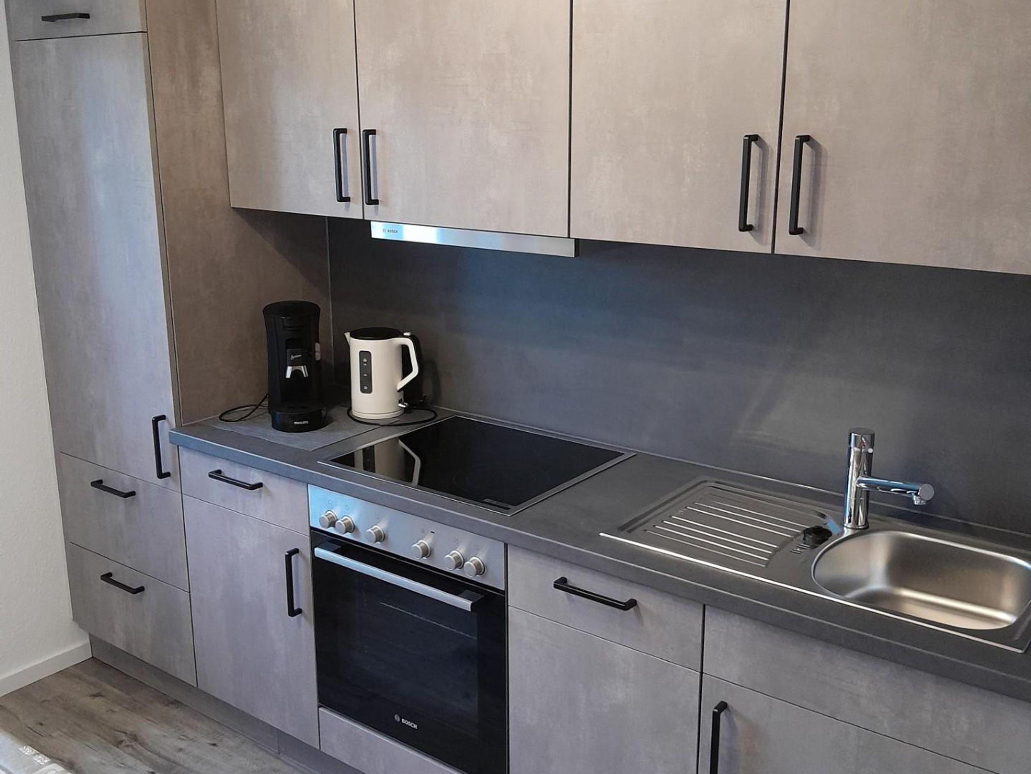 Die Küche ist voll eingerichtet (u.a. Geschirrspüler Backofen,...). Ein Vollbad mit Dusche, WC und Badewanne ist vorhanden.