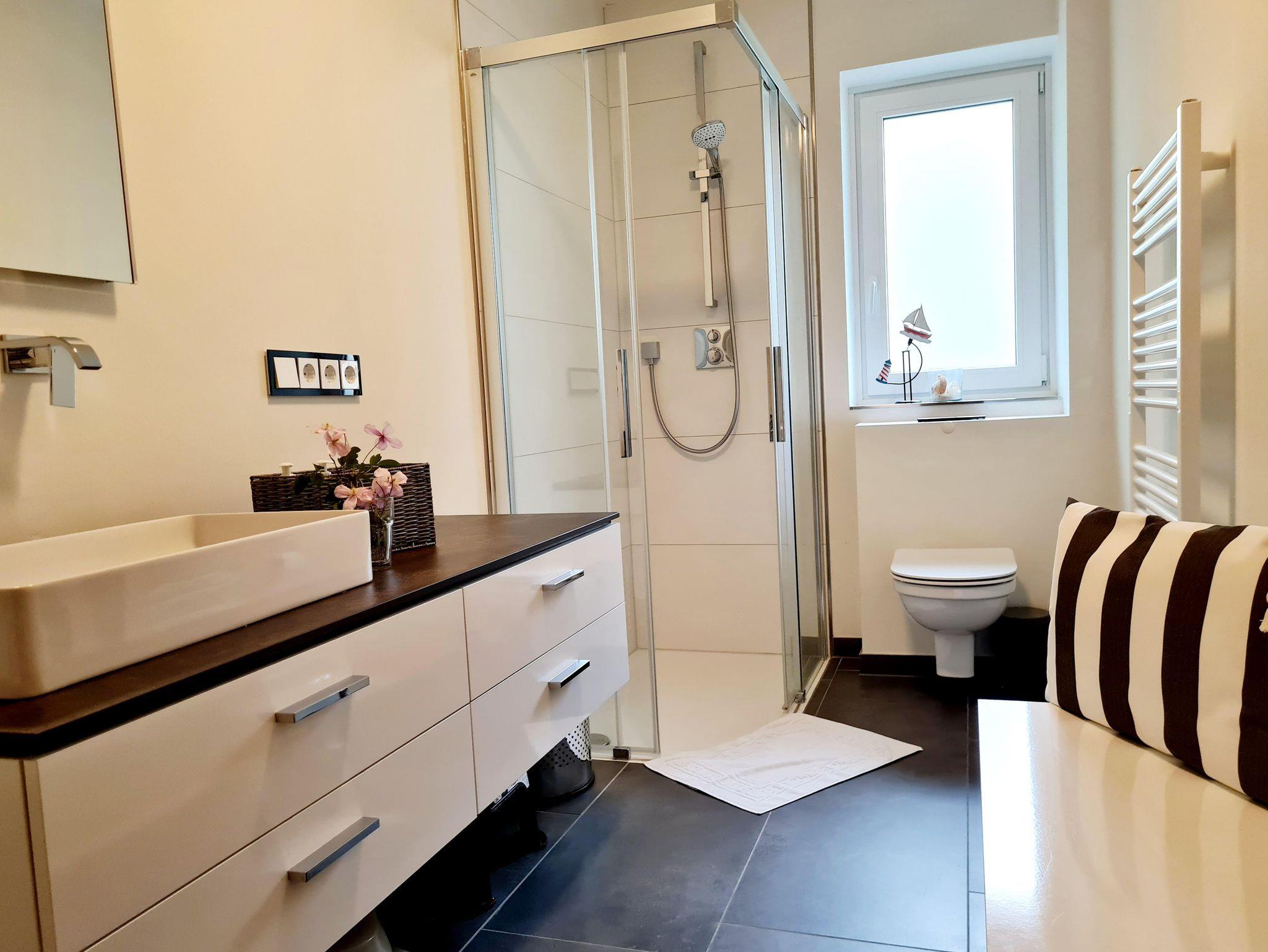 Das Badezimmer ist mit Dusche/WC und einer zusätzlichen Badewanne ausgestattet und bietet damit sowohl Funktionalität als auch Raum zum Wohlfühlen.