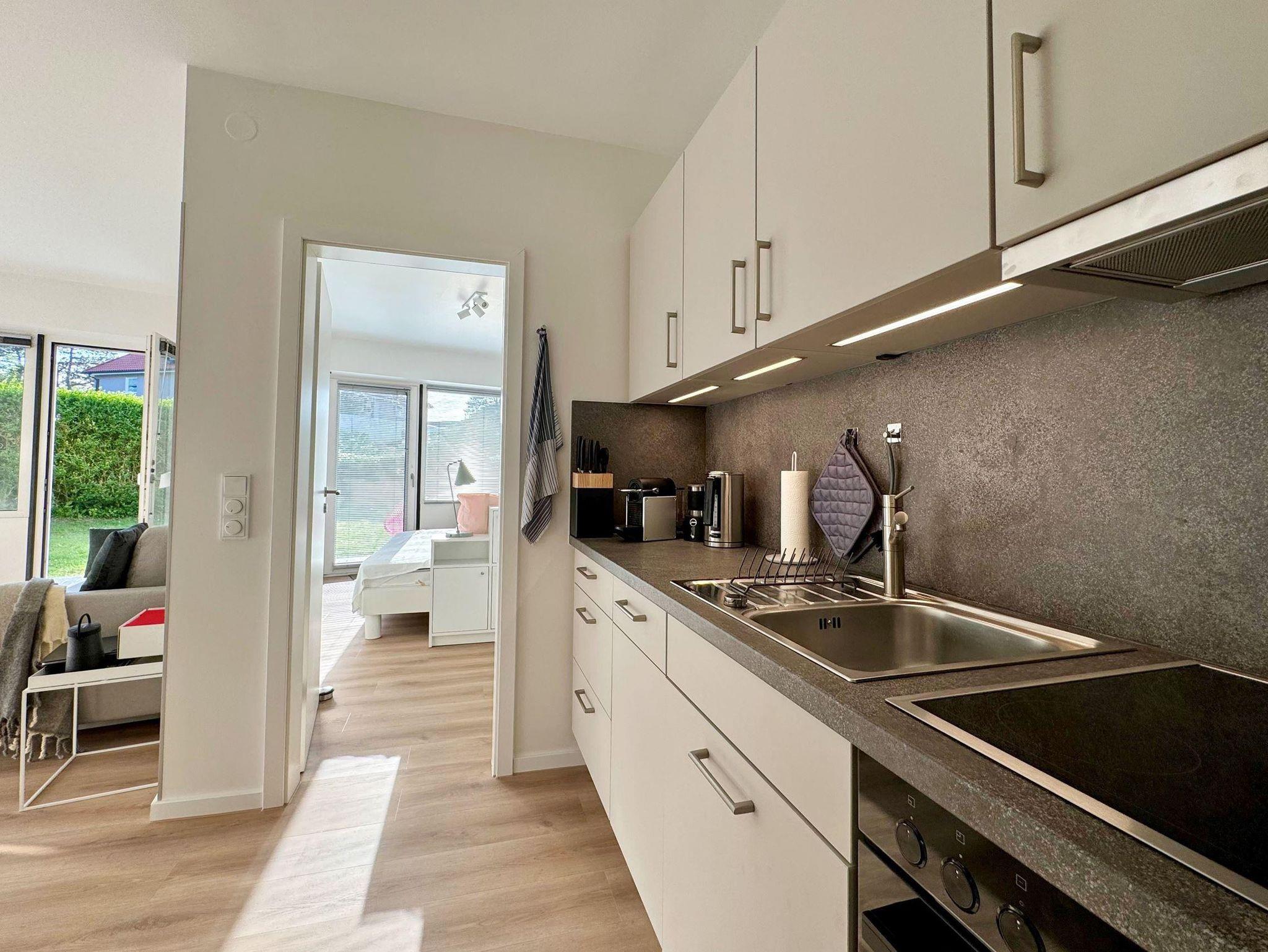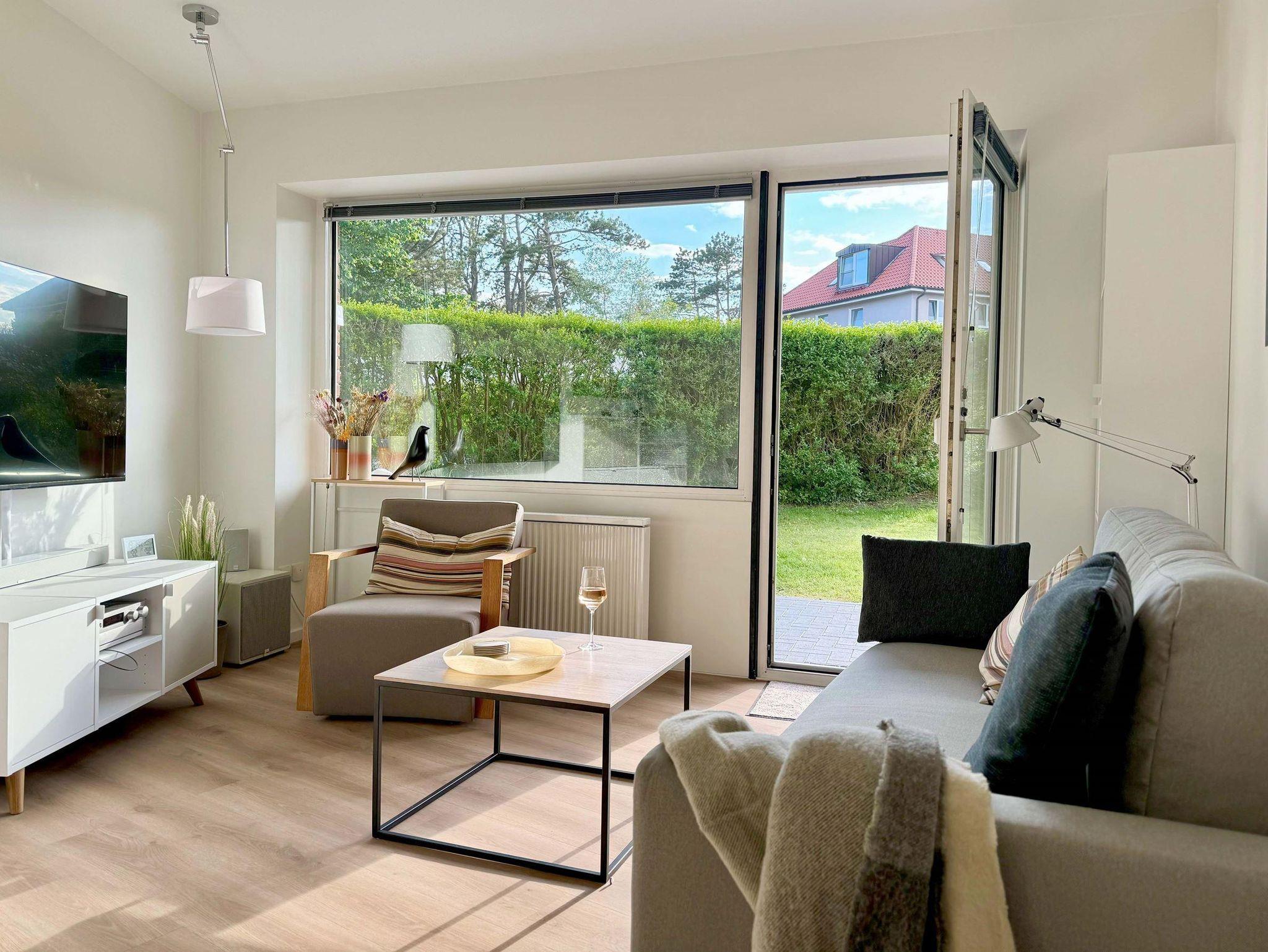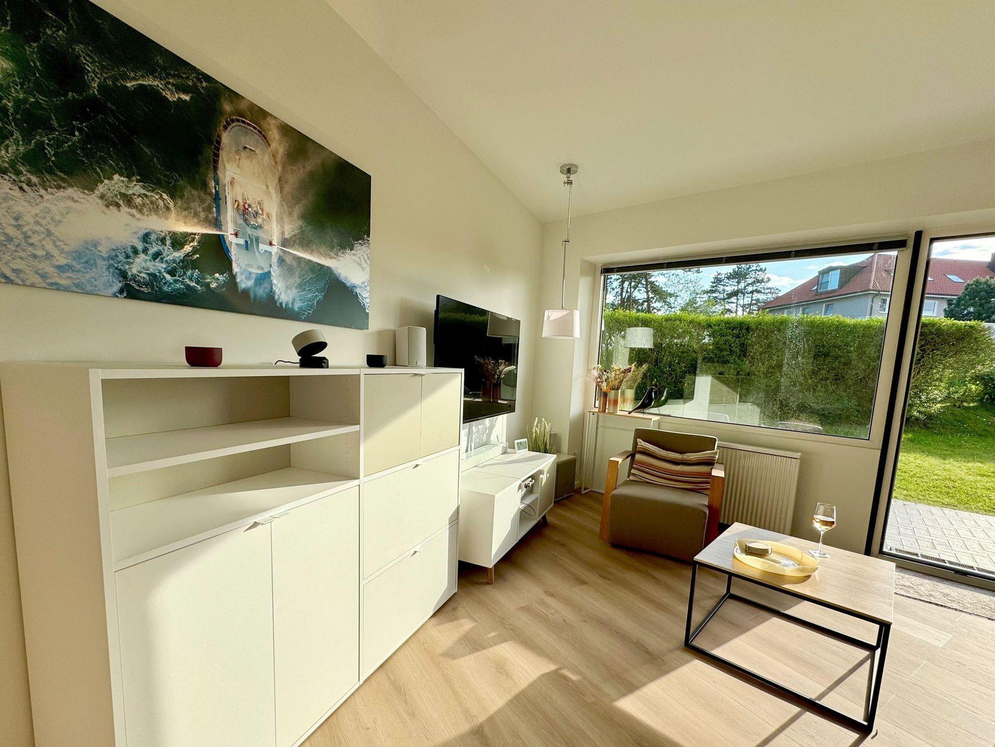 Am Deich 1 – in Strandnähe am Dünenwaldrand gelegen – erwartet Sie eine im Jahr 2024 komplett renovierte und im skandinavischen Design liebevoll eingerichtete 43 qm große 2-Zimmer Ferienwohnung. Genießen Sie Nordsee pur im Ortsteil Ording von St. Peter-Ording. Die Ausstattung der Wohnung lässt für entspannte Tage am Meer keine Wünsche offen: Eine hochwertige Küchenzeile mit umfangreicher Ausstattung (u.a. Geschirrspüler, Nespresso- und Filterkaffeemaschine), ein modernes Duschbad, ein gemütliches Schlafzimmer mit kleinem Arbeitsplatz und ein Wohnzimmer, in dem selbst Regentage zur Freude werden (55 Zoll Smart-TV, Soundbar, analoge und digitale Musiktechnik mit USB-C, AirPlay und Bluetooth Streaming). Auf der großen, überdachten Terrasse befinden sich Gartenmöbel, ein Grill sowie zwei Acapulco Sessel, in denen Sie den Tag beim Sonnenuntergang am Deich ausklingen lassen können.