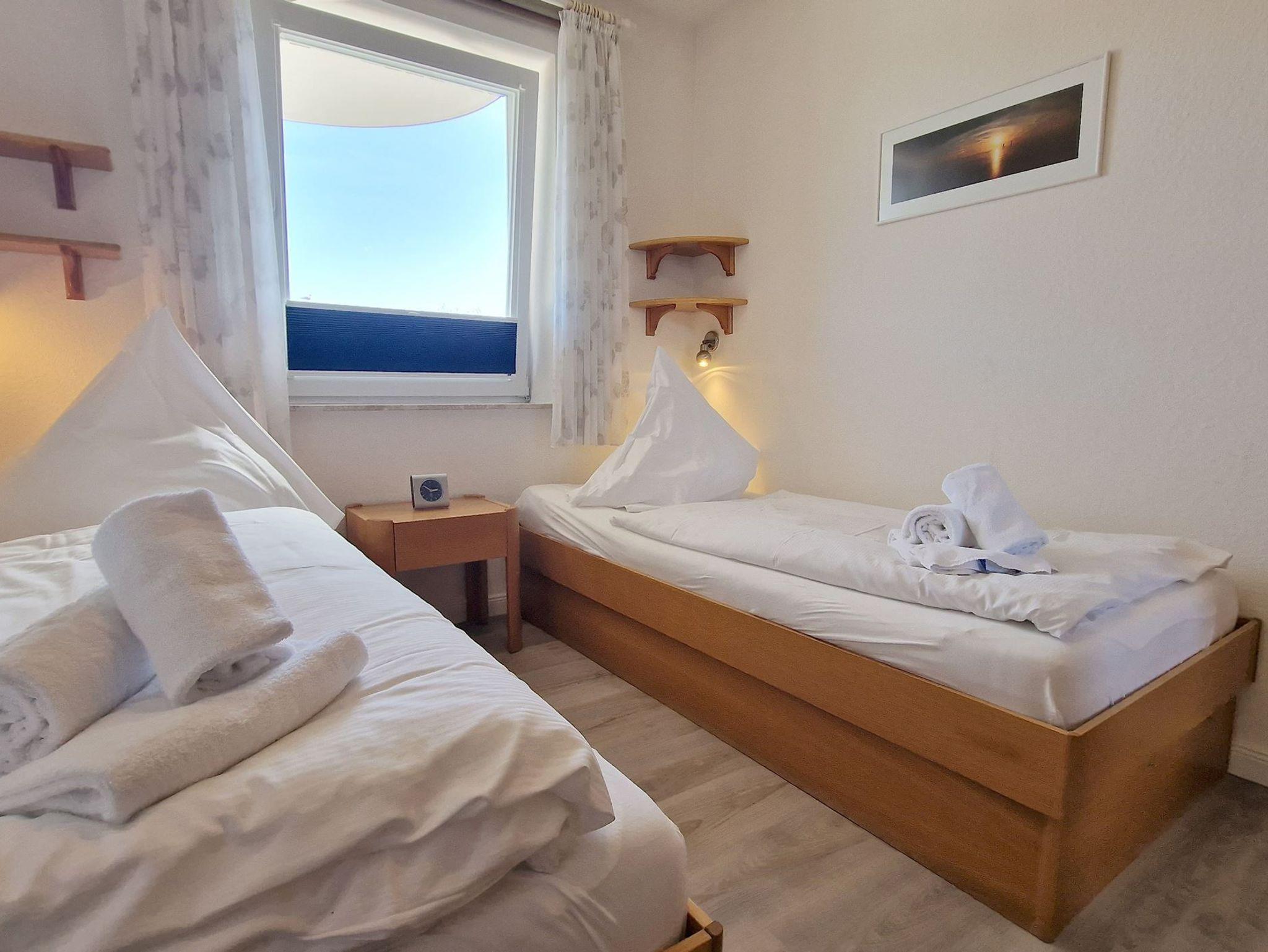 Schlafmöglichkeiten: Genießen Sie erholsame Nächte auf dem bequemen Schlafsofa im Wohnzimmer oder in einem der beiden Einzelbetten im Schlafzimmer. Hier finden Sie den perfekten Rückzugsort!