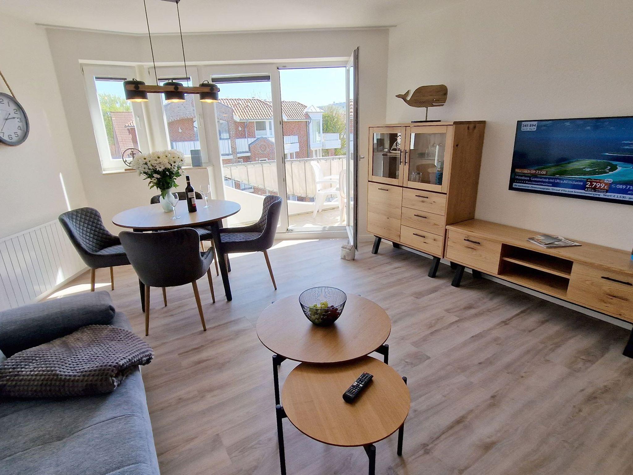 Balkon: Atmen Sie die frische Nordseeluft auf unserem einladenden Süd-Ost-Balkon und genießen Sie die Sonne bei einer Tasse Kaffee oder einem Glas Wein!