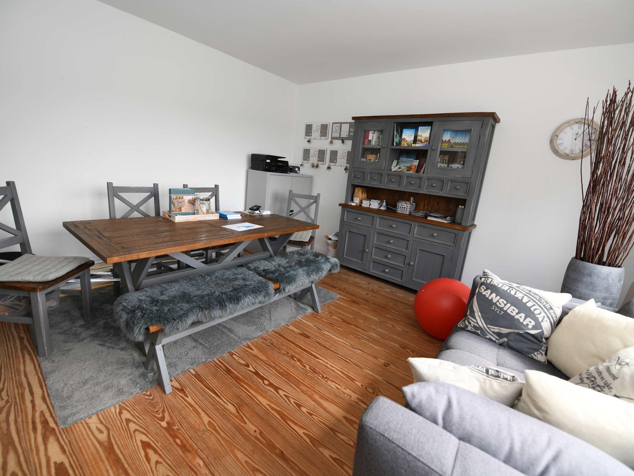 - Wohnzimmer mit vollausgestattete Küchenzeile (Herd, Kühlschrank, Spülmaschine, Toaster, Kaffeemaschine und Wasserkocher) Backofen befindet sich im 1. OG in der Teeküche