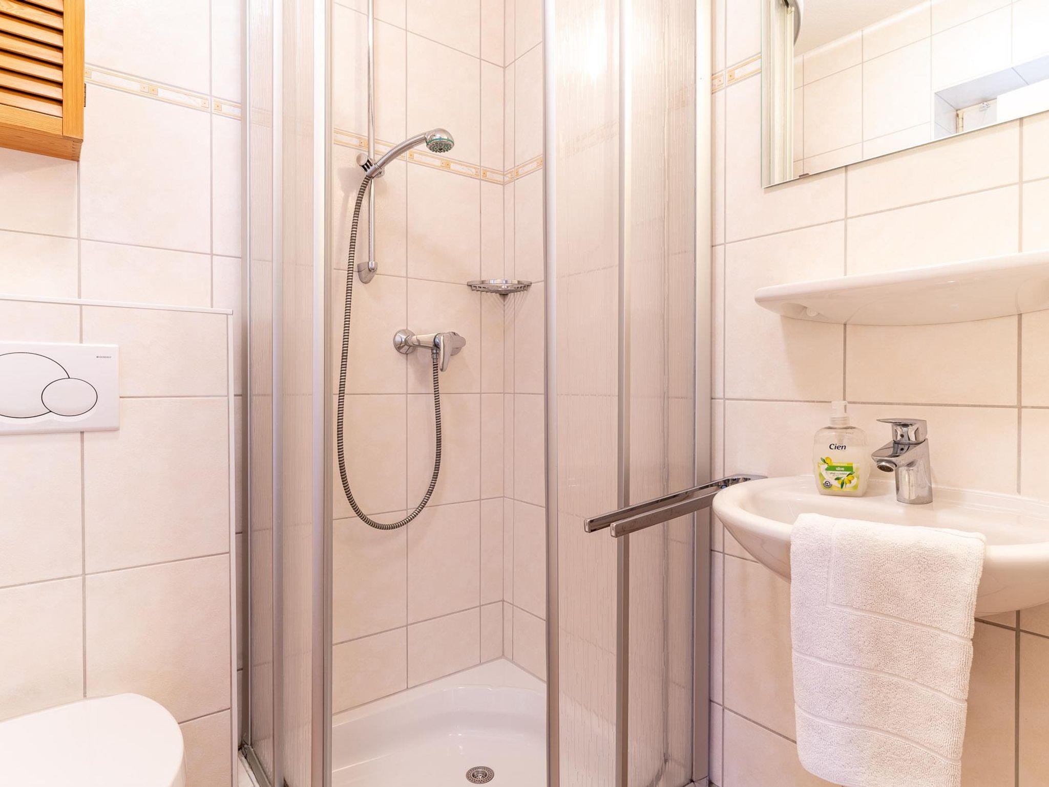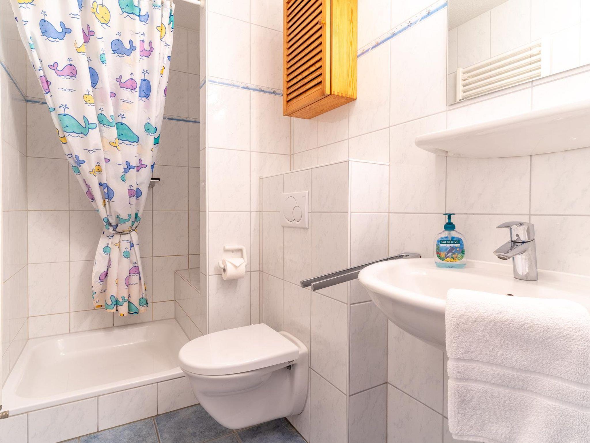 Vom Flur erreicht man über eine Treppe das Eltern- Schlafzimmer mit Doppelbetten (180 x 200cm). sowie Sitzecke mit Korbsessel und jetzt neu mit einem zweiten Fernseher. Im zweiten Schlafraum, der vom Flur zu erreichen ist, stehen zwei Einzelbetten mit den Maßen 100 x 200cm. Eine weitere Treppe höher befindet sich der 3. Schlafraum mit Doppelbetten (180 x 200cm). Hier haben Sie einen wunderschönen Blick über den Deich auf das Vorland und die Dünen. Das angrenzende Bad ist mit Waschbecken, Dusche, WC und beheizbarem Handtuchhalter ausgestattet. Das 2. Bad liegt im Erdgeschoß. Alle Betten verfügen über Lattenroste, Bandscheibenmatratzen und waschbaren Decken und Kopfkissen.
