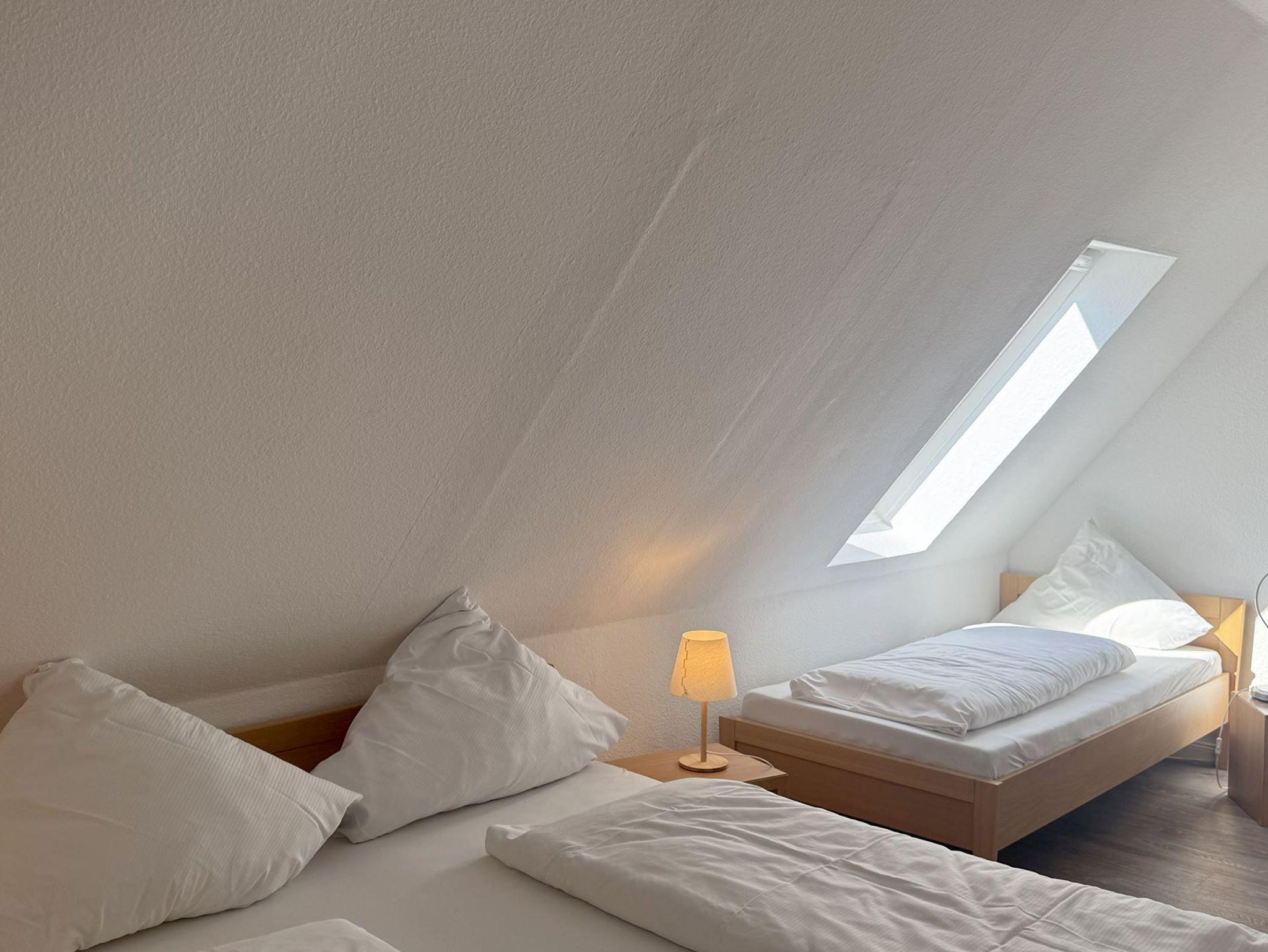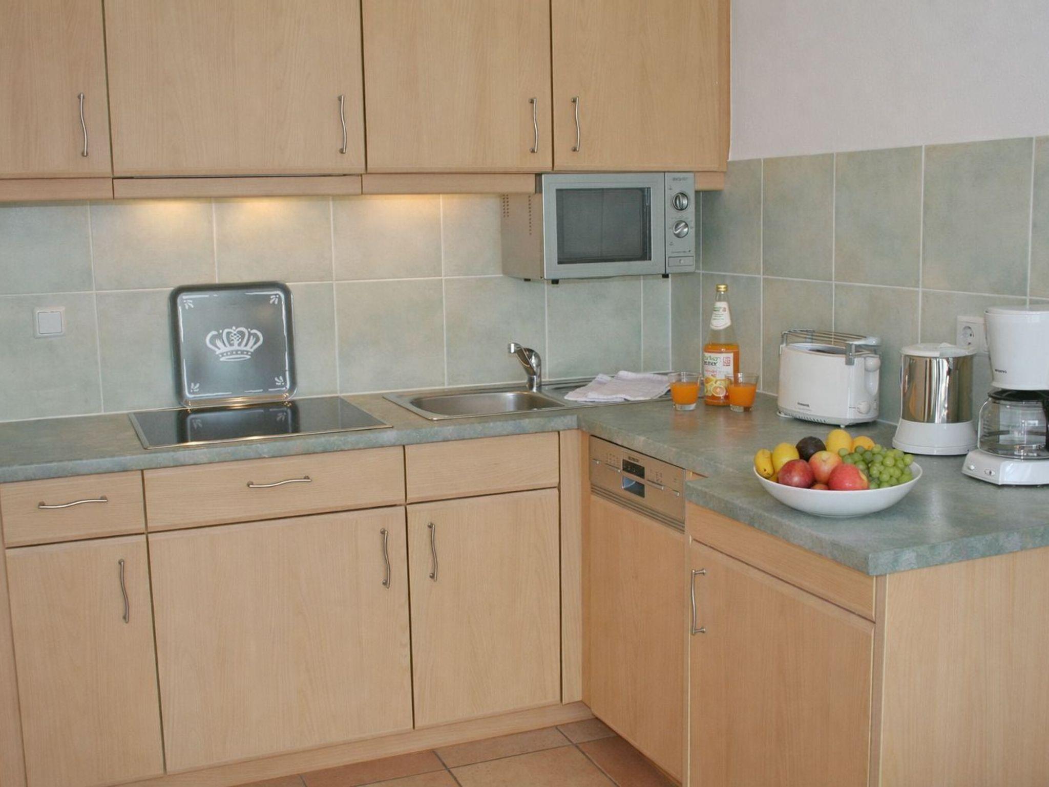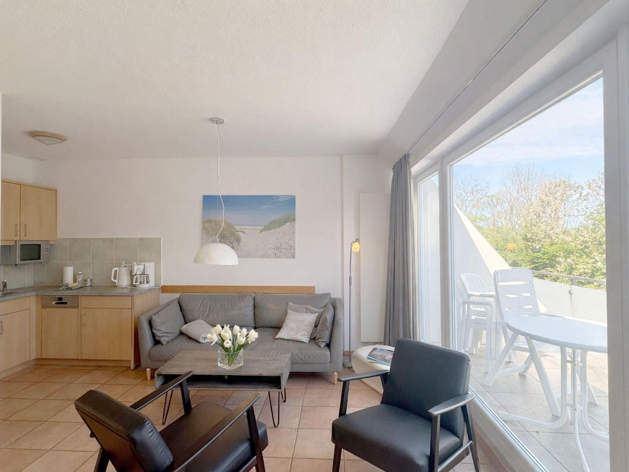 Die Wohnung 13 in der Anlage Luna I liegt im Obergeschoss des Hauses. Sie ist 75qm groß und geeignet für bis zu 5 Personen. Der Eingangsbereich ist mit einer Garderobe ausgestattet. Es gibt zwei Schlafzimmer mit Doppelbetten (180x200cm, getrennte Matratzen). In einem der beiden Schlafzimmer befindet sich zusätzlich ein Einzelbett für eine fünfte Person. Des weiteren sind zwei Duschbäder mit Waschbecken und WC vorhanden. Der Wohn-Essbereich verfügt über eine offene, umfangreich ausgestattete Küche. Im Wohn-Esszimmer befinden sich ein Esstisch sowie etwas separiert davon ein großzügiger, gemütlicher Sitzbereich mit Fernseher. WLAN steht kostenlos zur Verfügung. Die Einrichtung ist modern und hochwertig. Die gesamte Wohnung ist durch ihren Bodenbelag mit Designerparkett und Fliesen geeignet für Allergiker. Vom Wohnbereich aus gelangen Sie auf den Balkon der Wohnung, der mit Gartenmöbeln ausgestattet ist und einen Blick in die wunderschöne Grünanlage mit Obstwiese bietet.