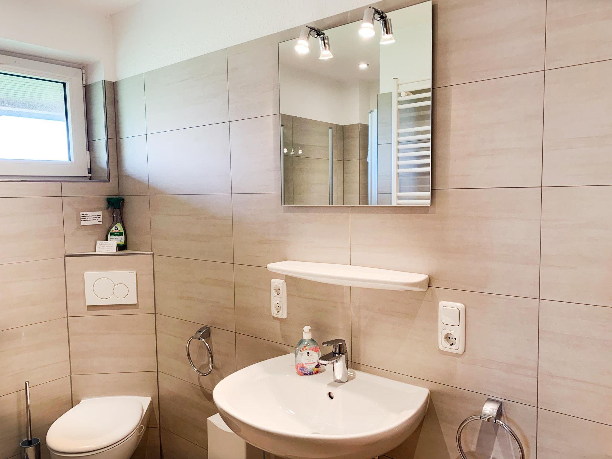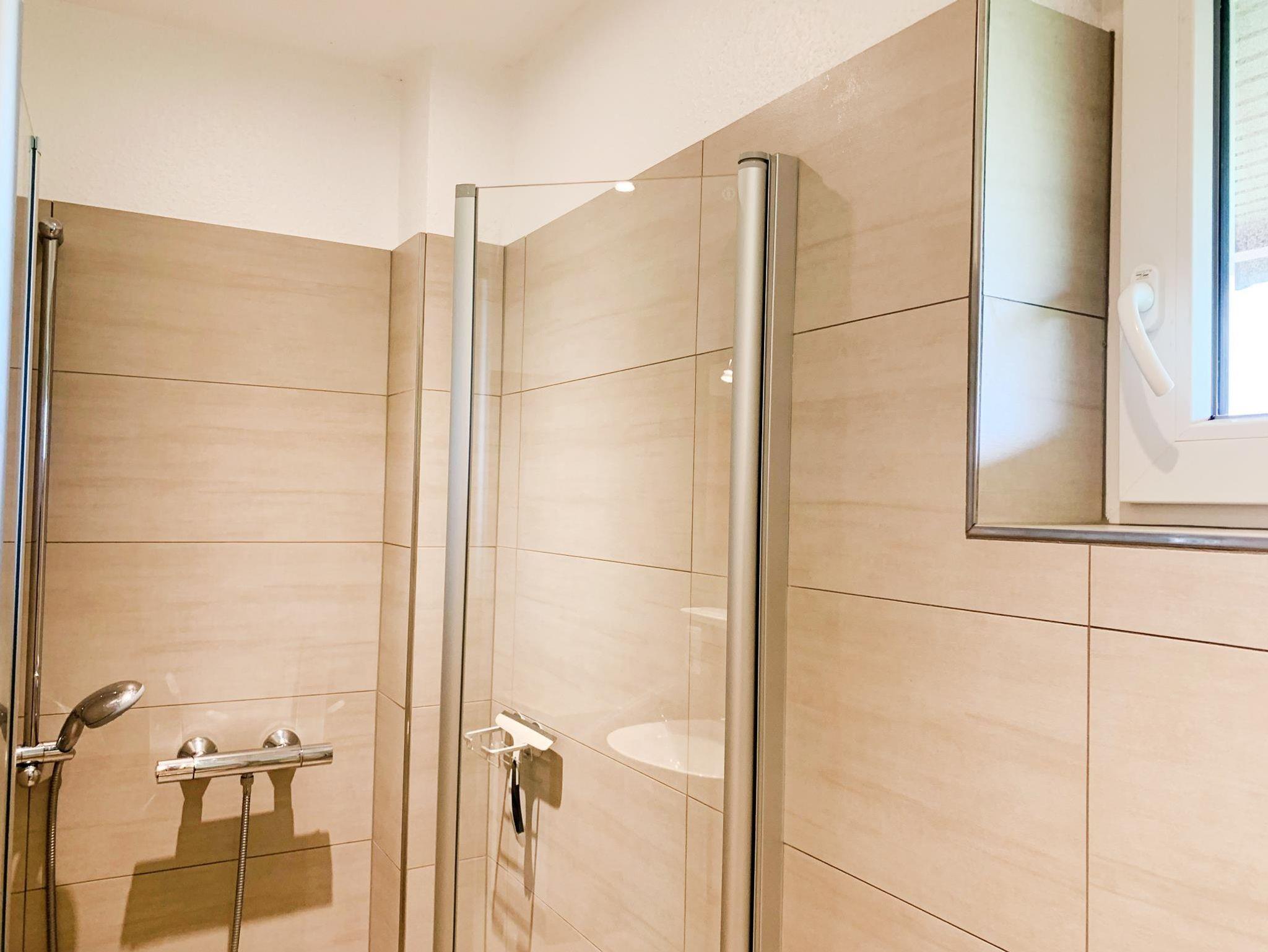 Bad: Dusche, Waschbecken, WC, Duschkabine