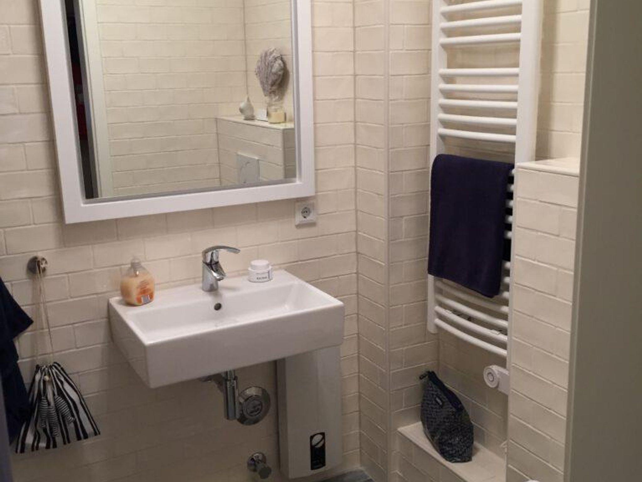 Duschbad mit ebenerdiger Dusche, Handtucherwärmung.