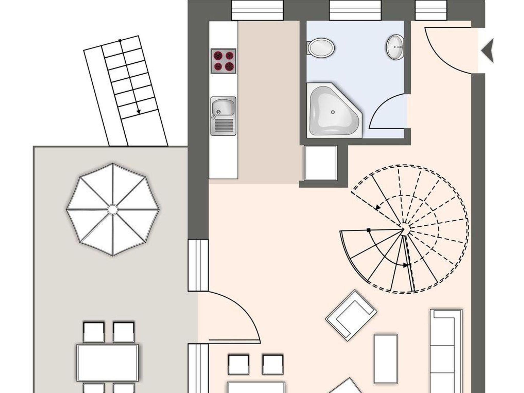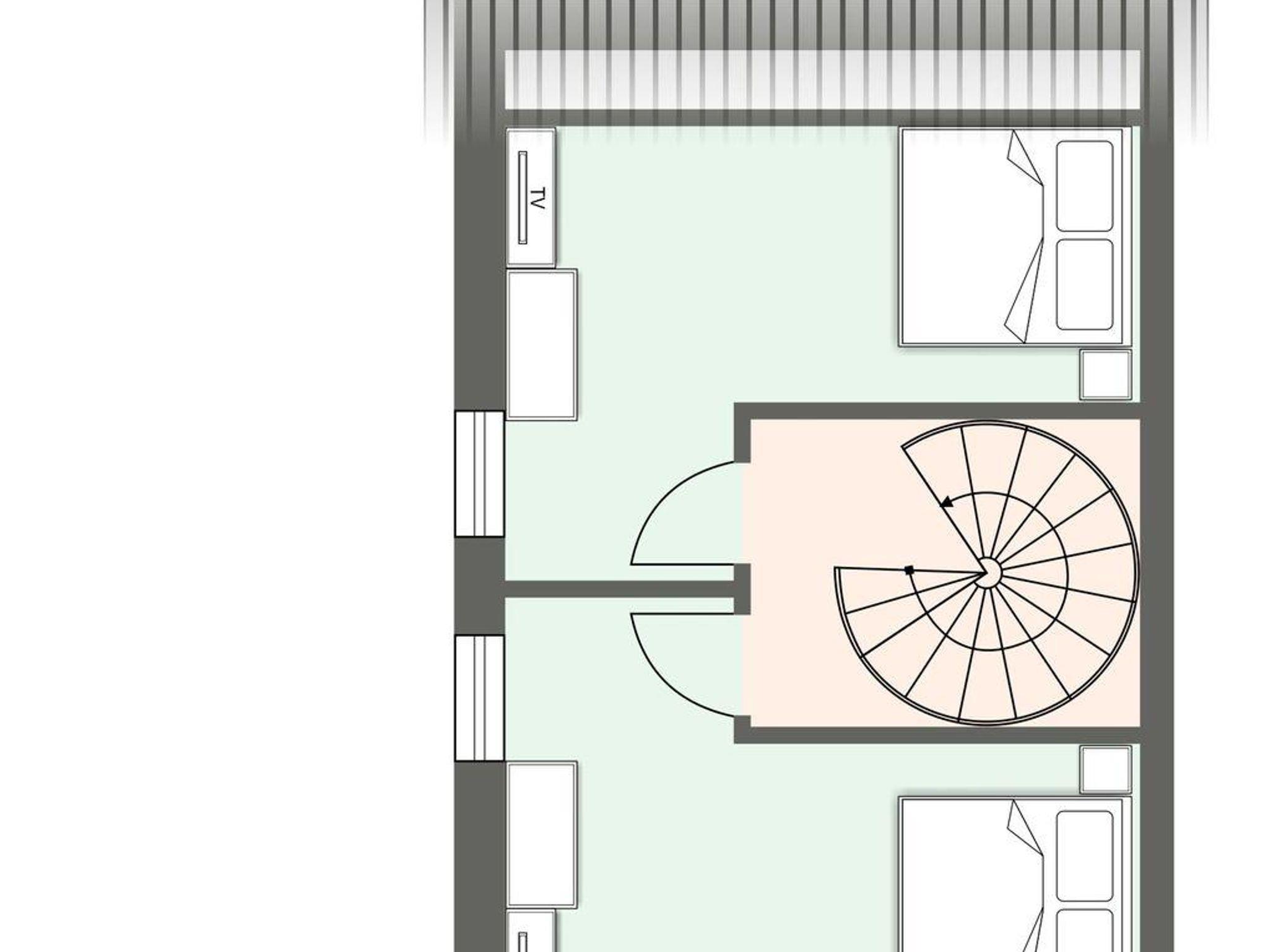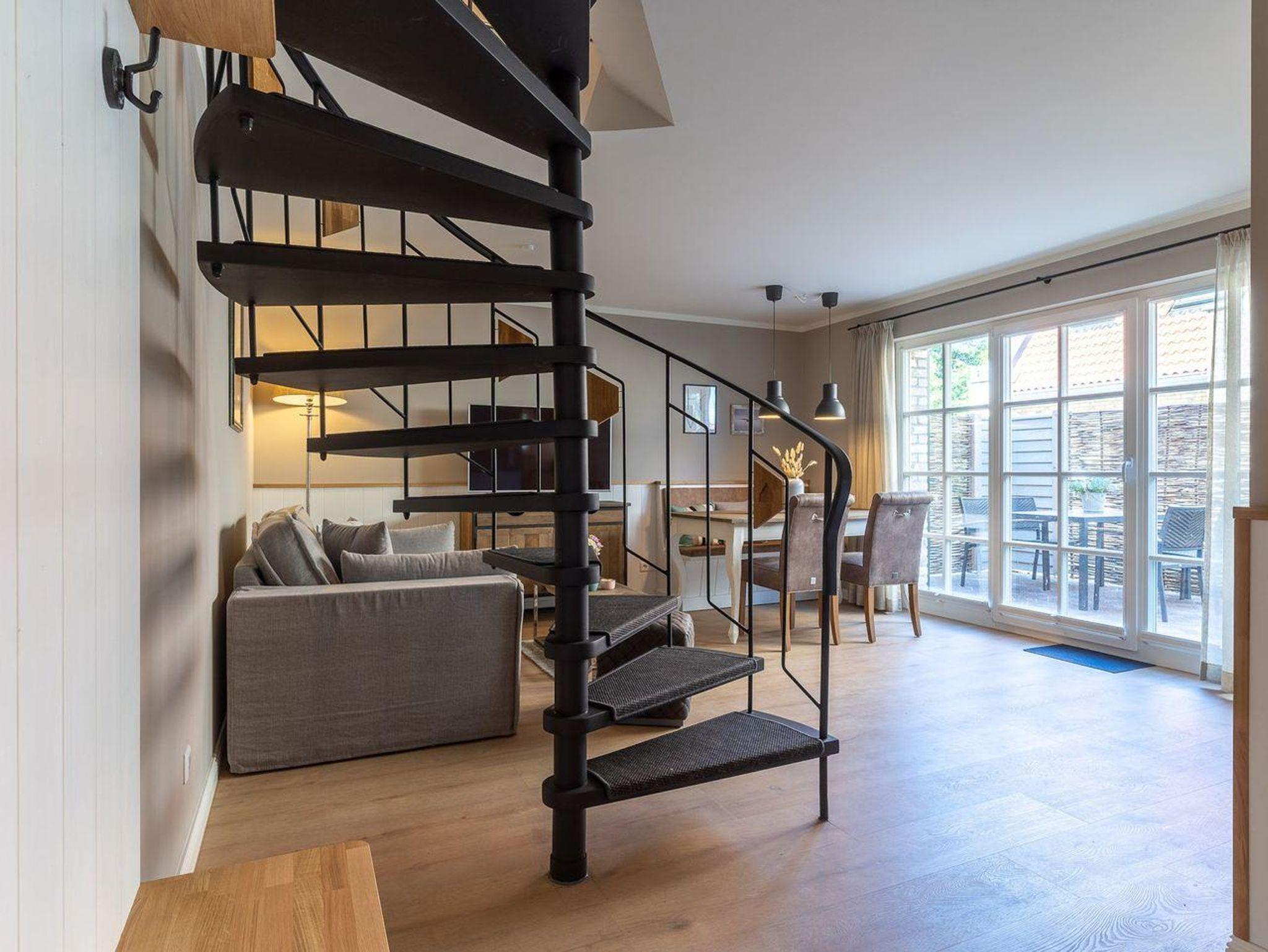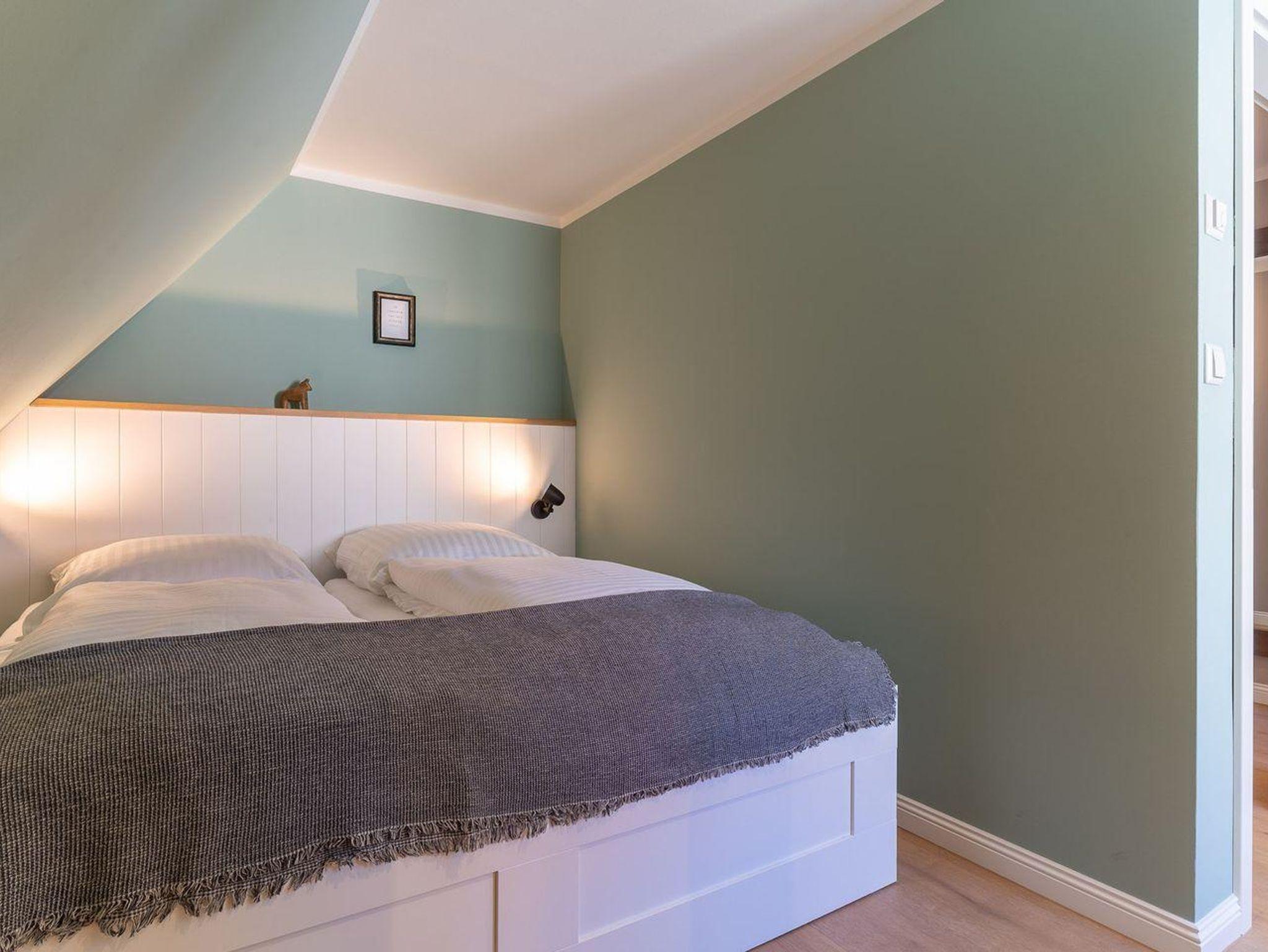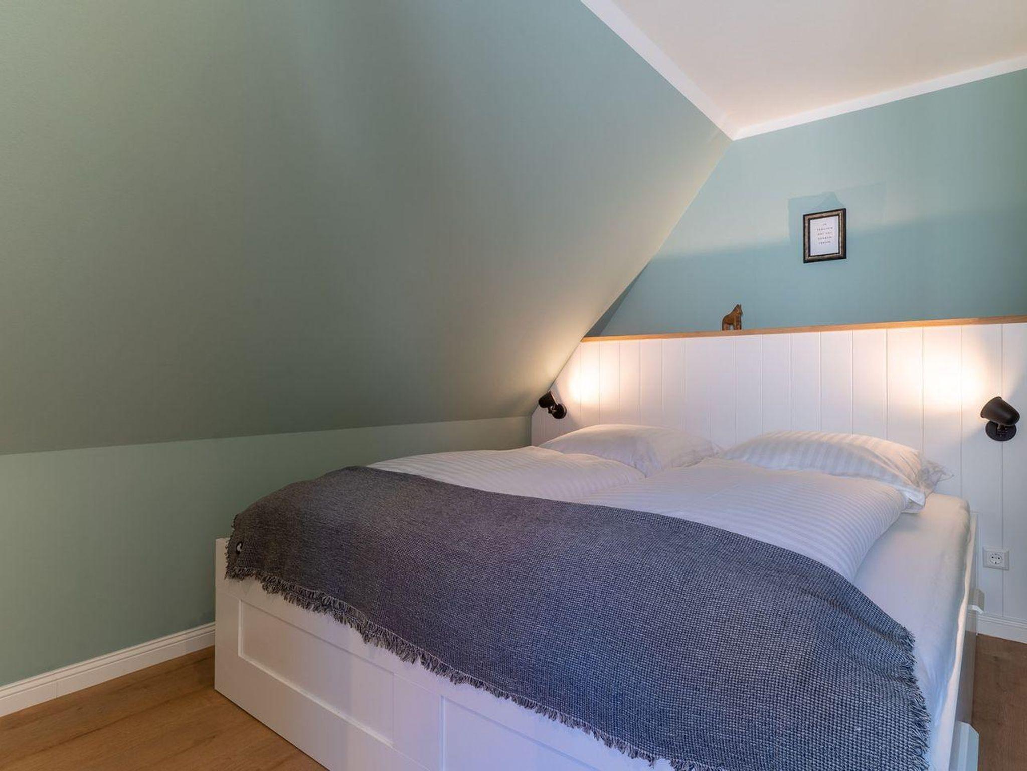 Über eine Wendeltreppe aus dem Wohnraum gelangt man in das Obergeschoss. Hier befinden sich zwei gemütliche Schlafzimmer mit je einem Doppelbett.