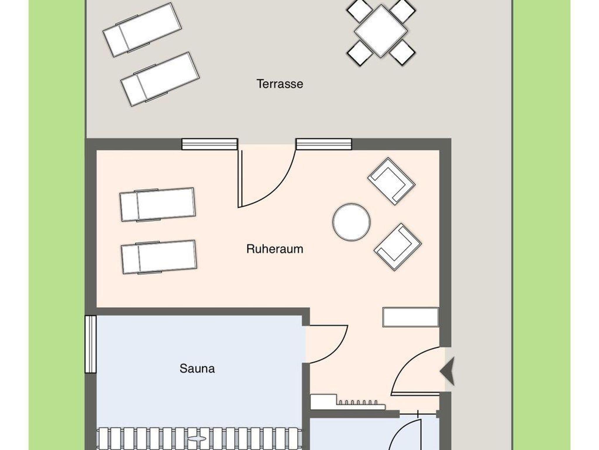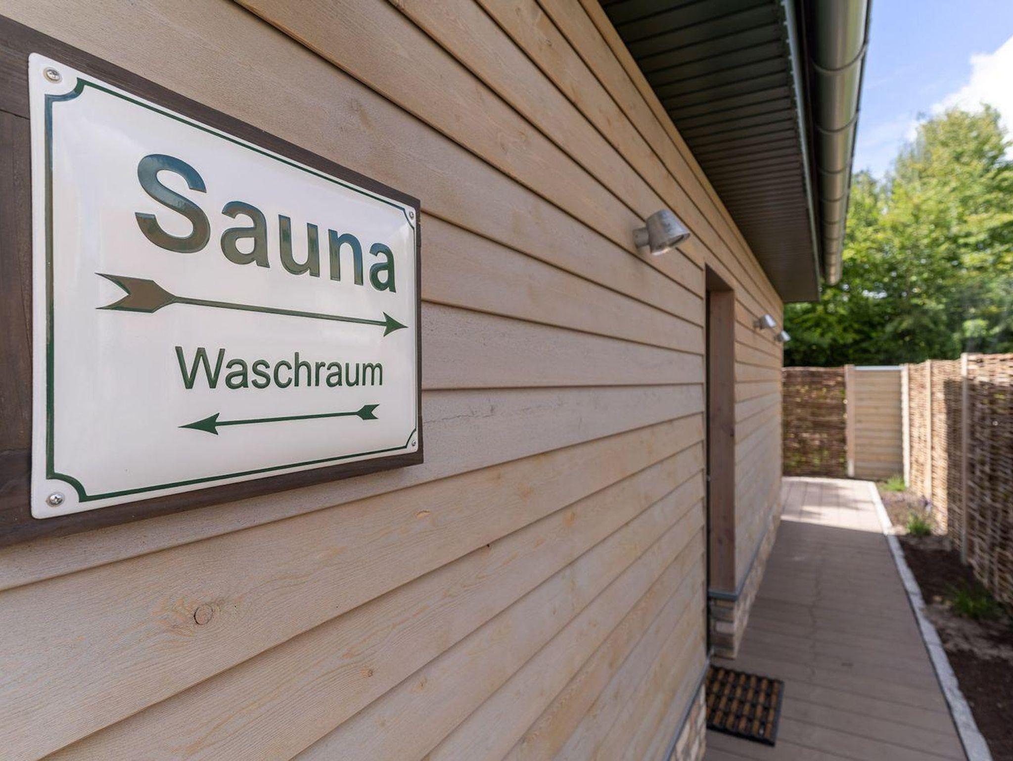 Auf dem Grundstück befindet sich eine hochwertige Außensauna mit Ruheraum für genügend Freiraum zur Erholung. Die Gemeinschaftssauna ist von allen 15 Appartements aus dem Haus nutzbar, sowie die Waschmaschinen und der Trockner im Waschraum.