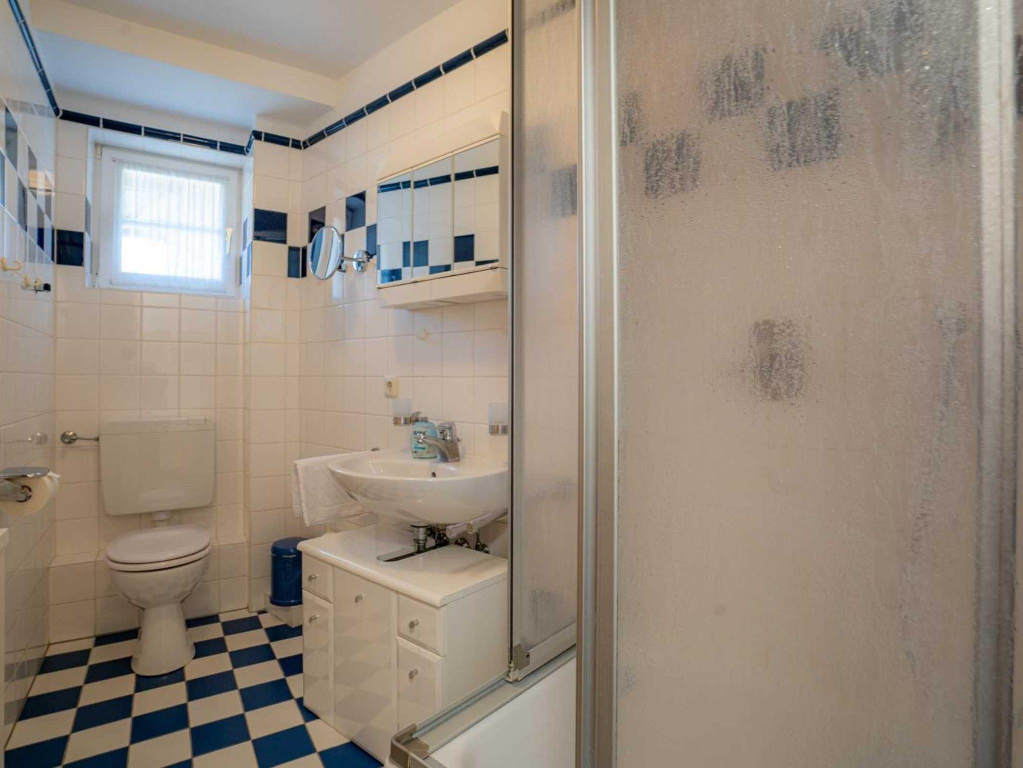 Badezimmer (Duschbad) mit Dusche (Eintritt: ca. 45cm), WC, Tageslicht und Föhn.