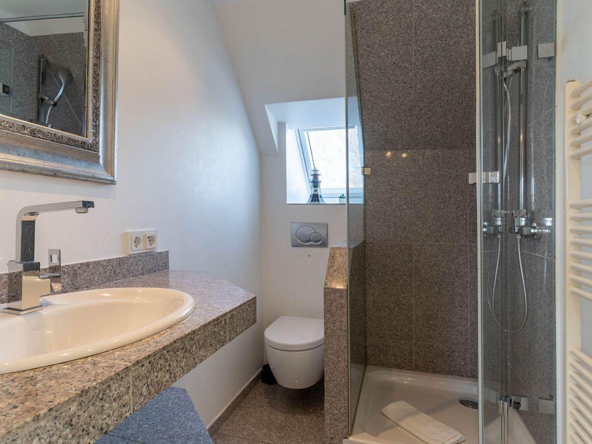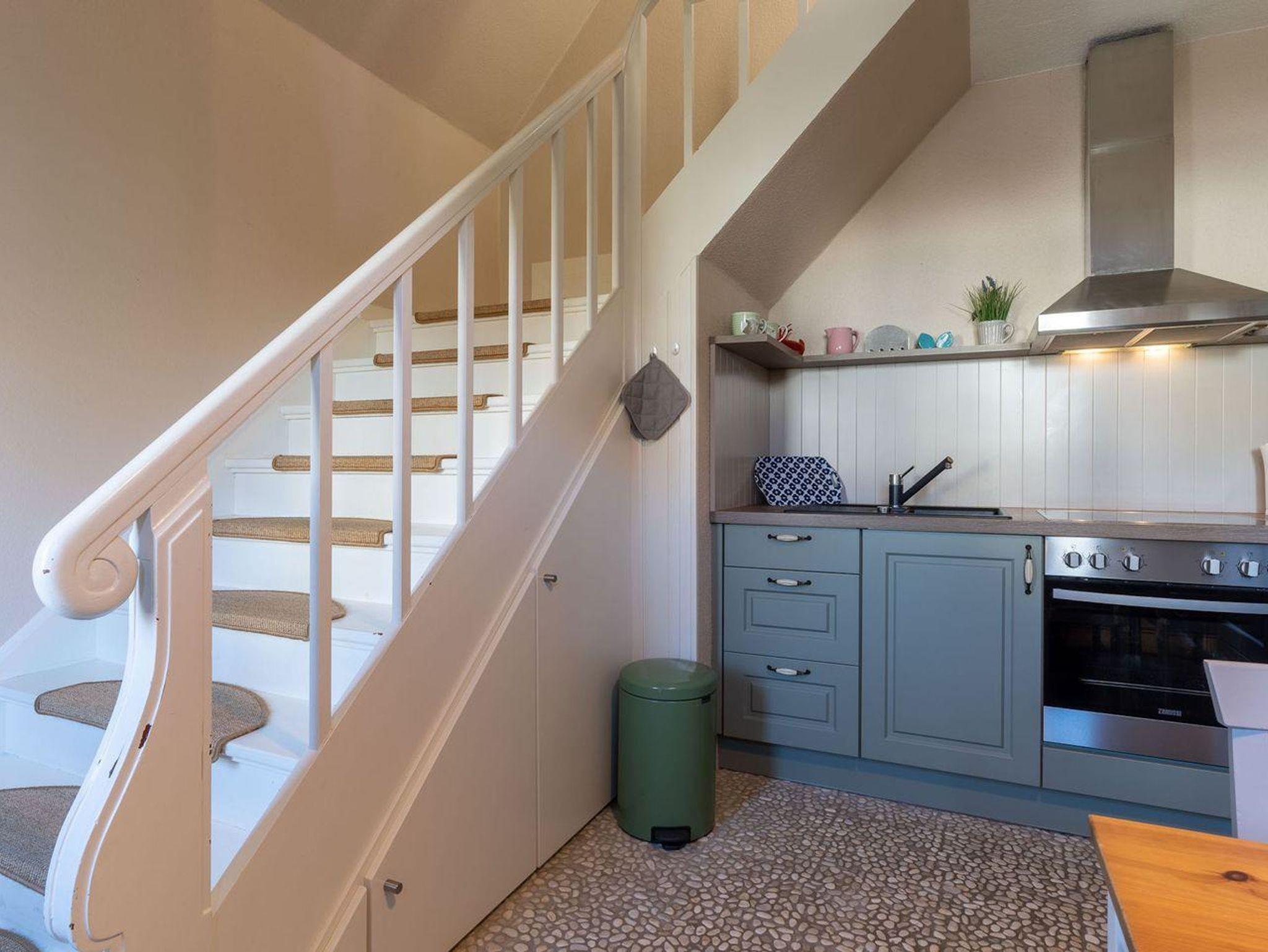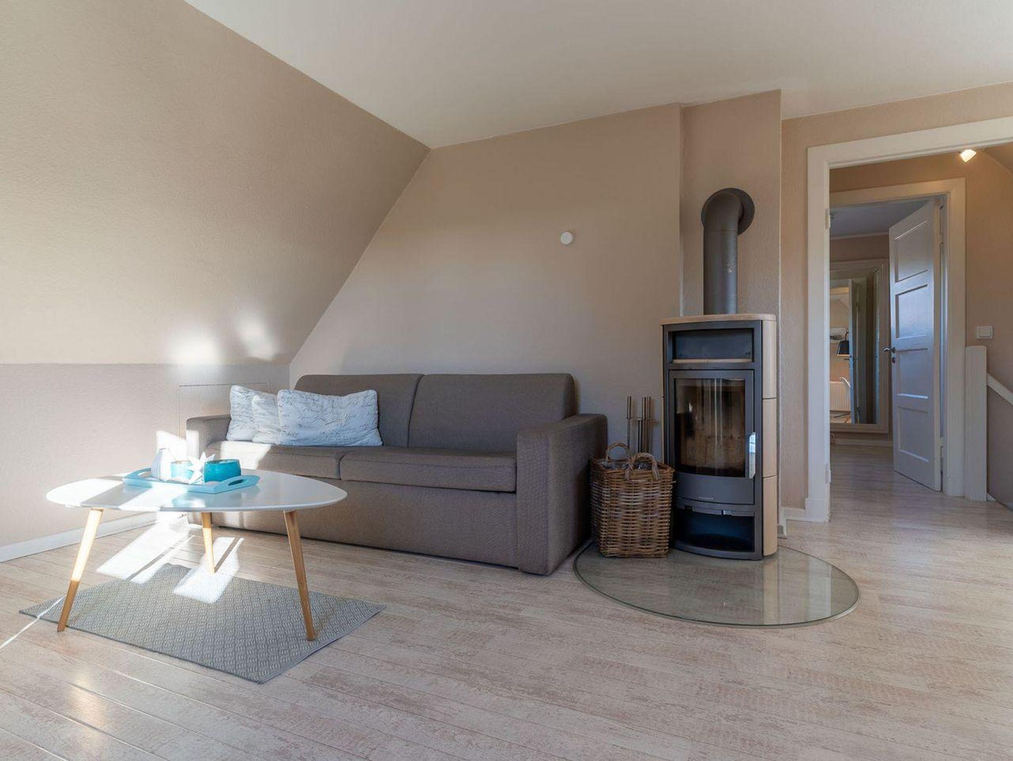 Sie gelangen durch Ihren Haupteingang direkt in den Eingangsbereich mit einer modernen Küche. Die Küche ist mit hochwertigen Geräten voll ausgestattet. Über eine schöne Holztreppe gelangen Sie in das Obergeschoss. Das großzügige Wohnzimmer mit Kamin sorgt für entspannte Urlaubstage. Hier befindet sich ein gemütliches Schlafsofa. Im Obergeschoss ist ebenso ein Doppelschlafzimmer mit großen Einbauschrank und ein Duschbad. Genießen Sie die schönste Zeit im Jahr - Ihren Urlaub, im gemütlichen Kleinod - direkt an den Dünen.