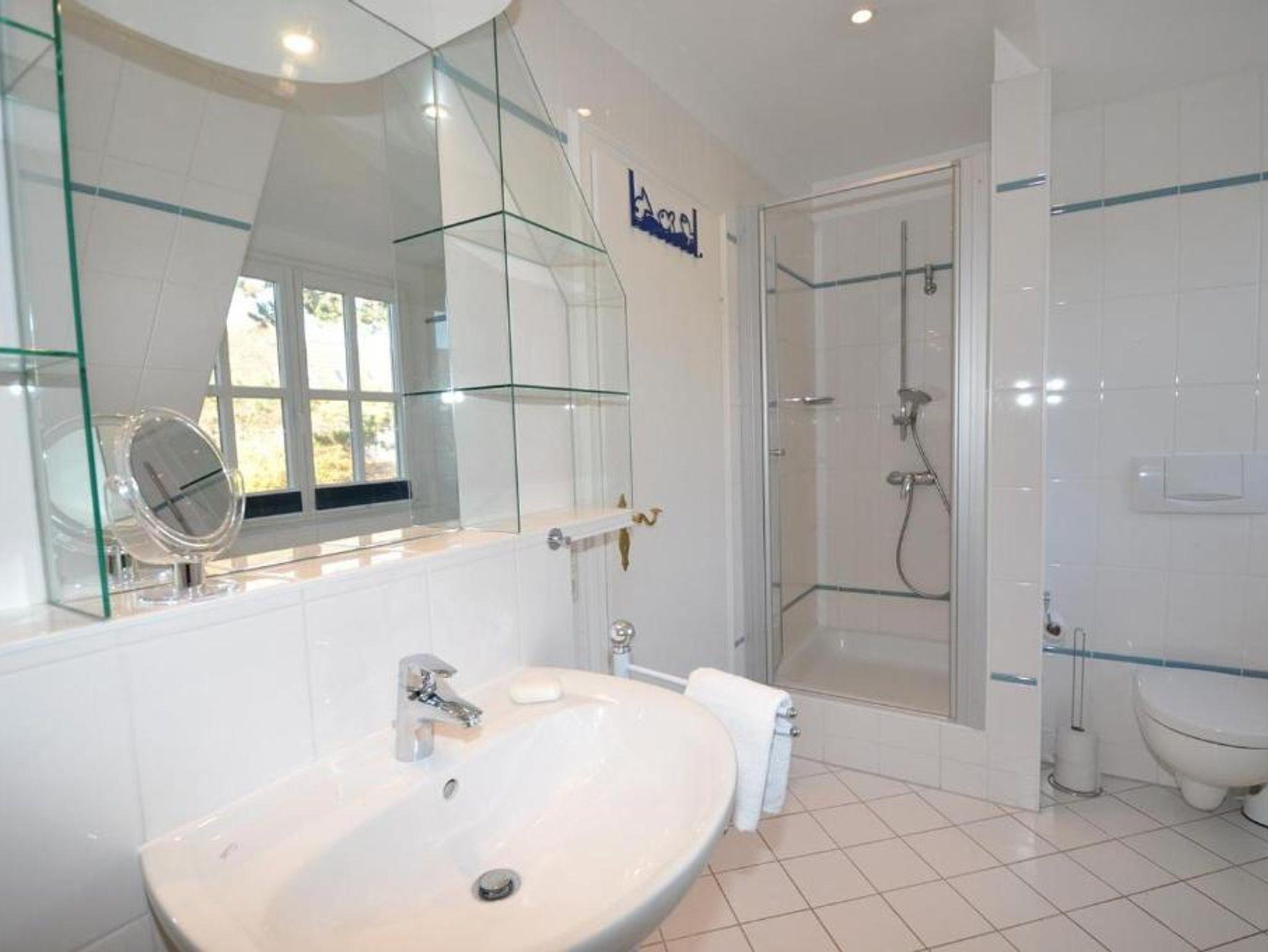 • Badezimmer mit Dusche, Badewanne und WC
