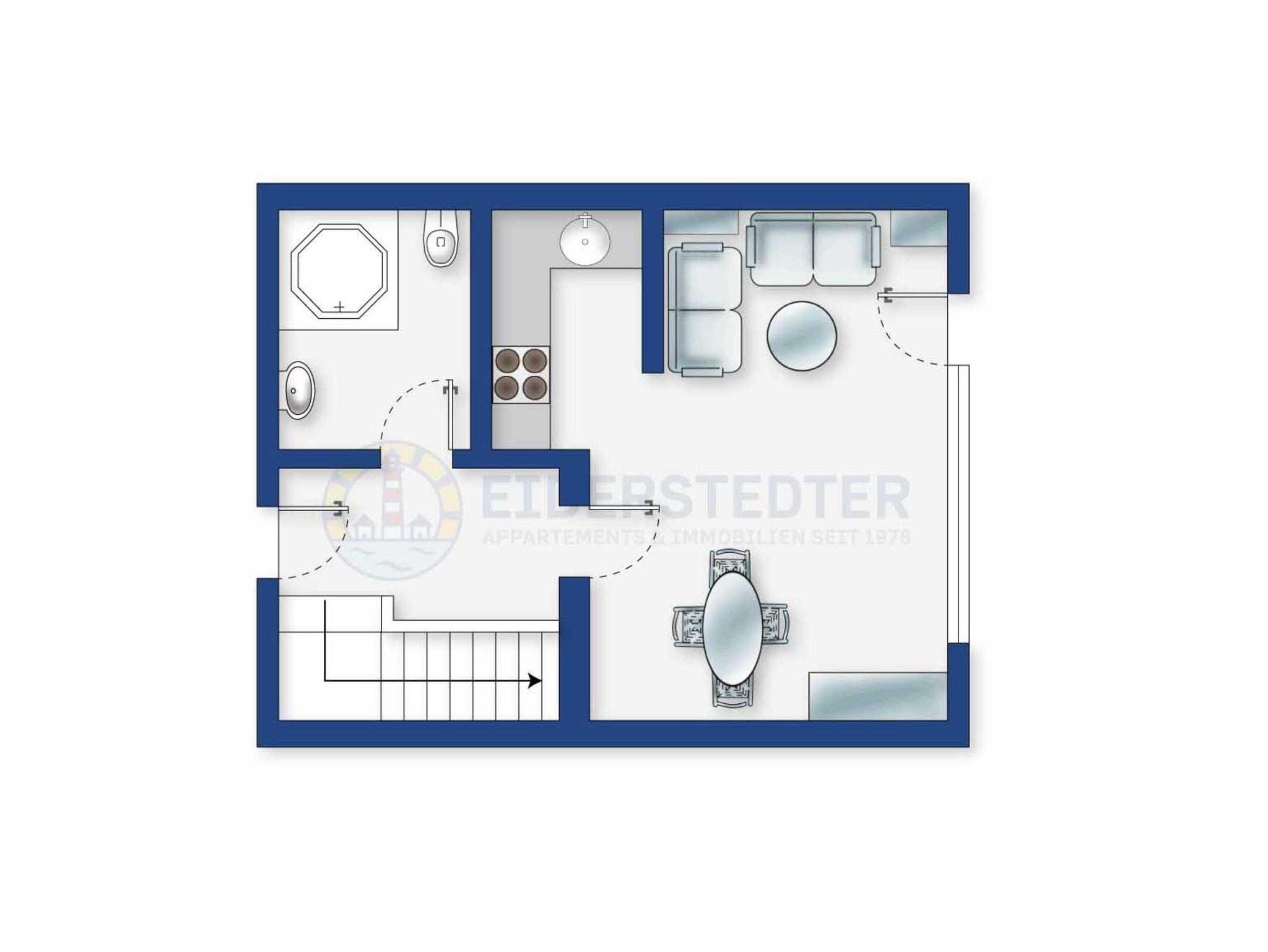 Komfortabler Mittelhausteil mit 3 Zimmern und ca. 60 m² auf 2 Ebenen (EG, OG) für bis 4 Personen. In ruhiger Lage im südlichen Ortsteil Böhl. Mit schönem großen Garten.