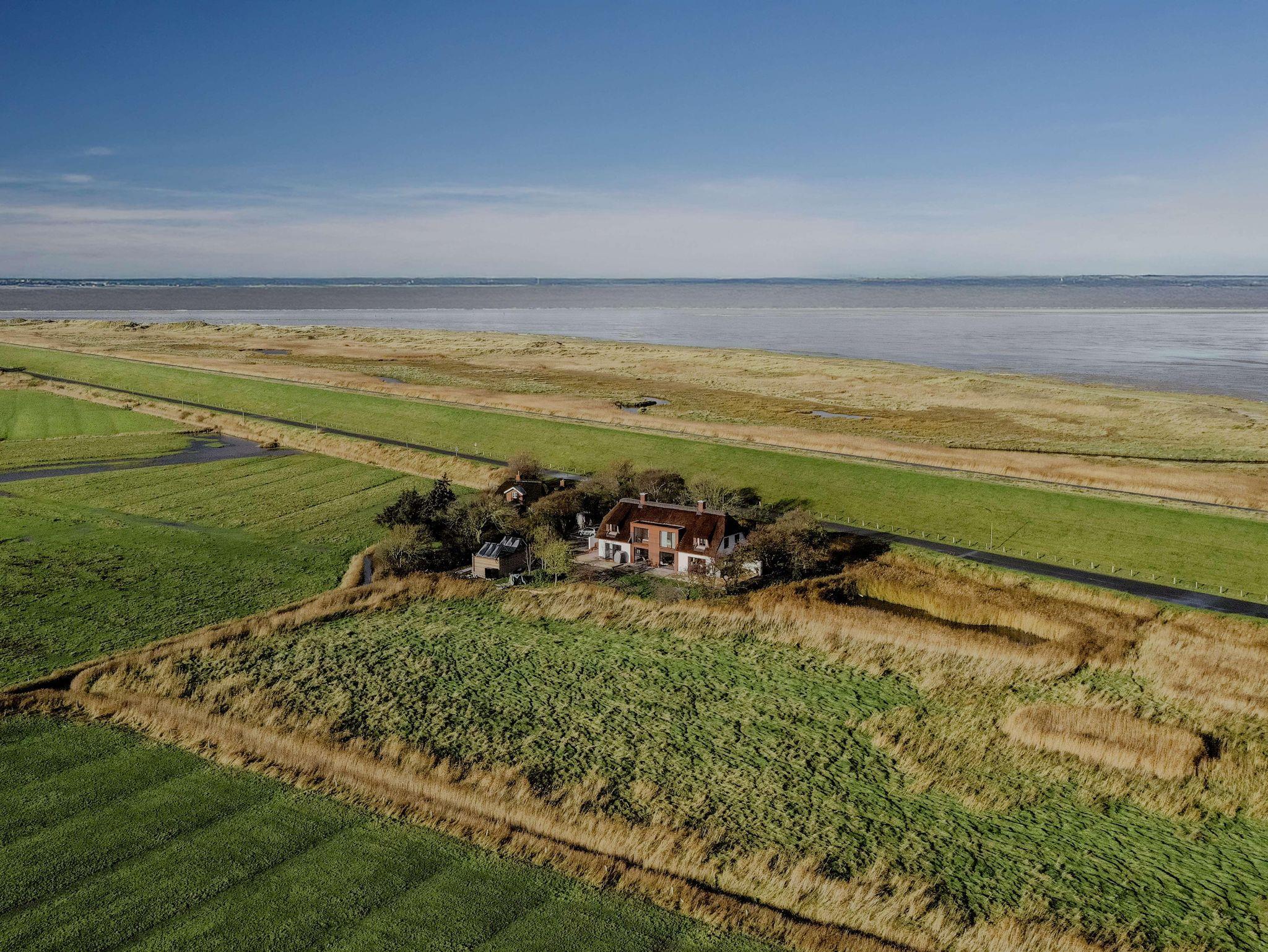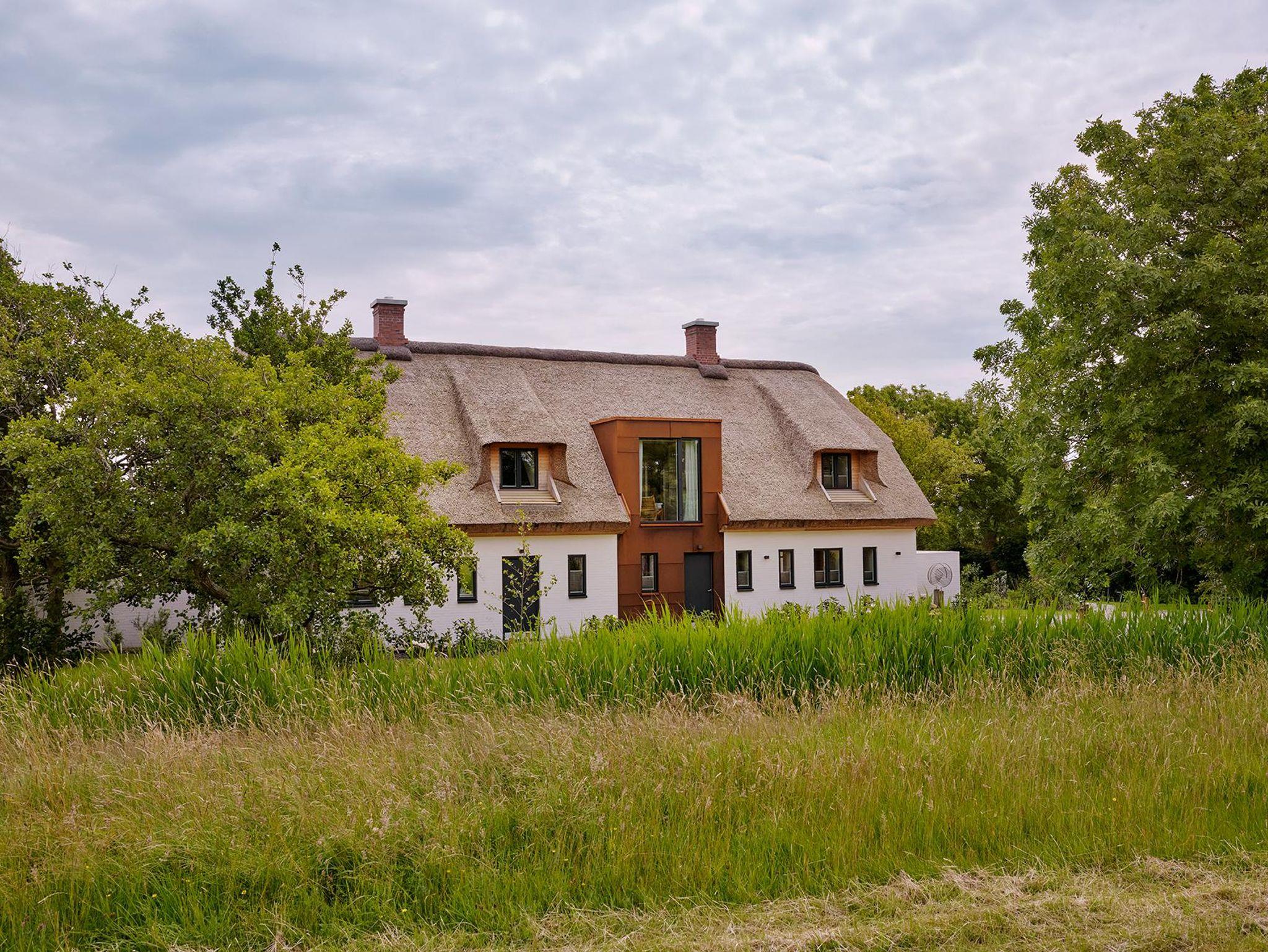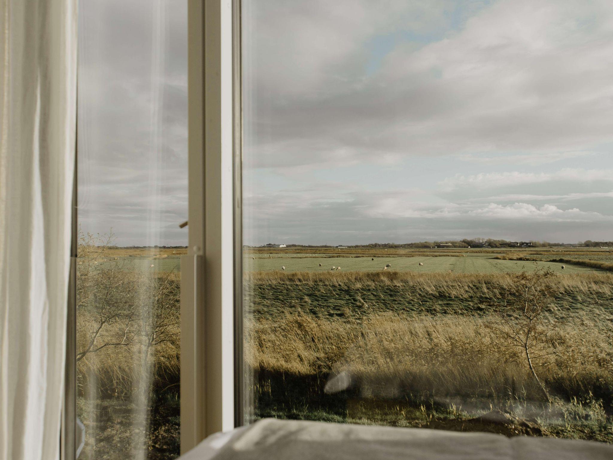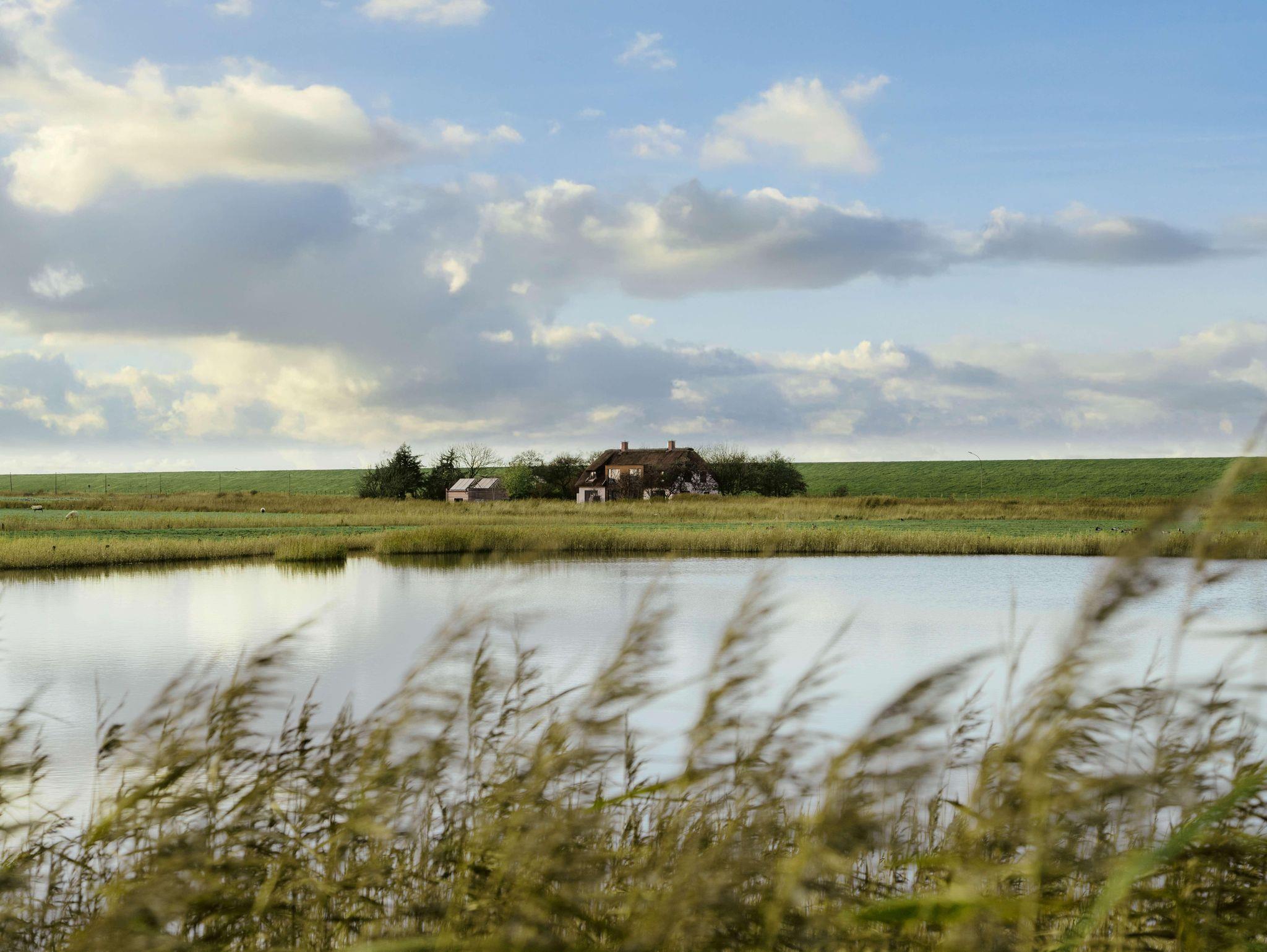 Der großzügige Wohnraum öffnet sich nach Süden und Osten mit bodentiefen Fenster- und Türelementen zu einer weiträumigen Holzterrasse und schafft so einen fließenden Übergang zwischen Innen und Außen, zur Weite der Wiesenlandschaft Eiderstedts. Das norderdiekhuus mit der großen, sehr gut ausgestattete Küche, mit dem breiten Sofa am Fenster mit Weitblick sowie den drei sehr gemütlichen Schlafzimmer im Obergeschoss, eins davon mit Bad en suite, bietet Platz für bis zu sechs Gäste. Die Ferienwohnung ist komplett mit Fussbodenheizung ausgestattet.