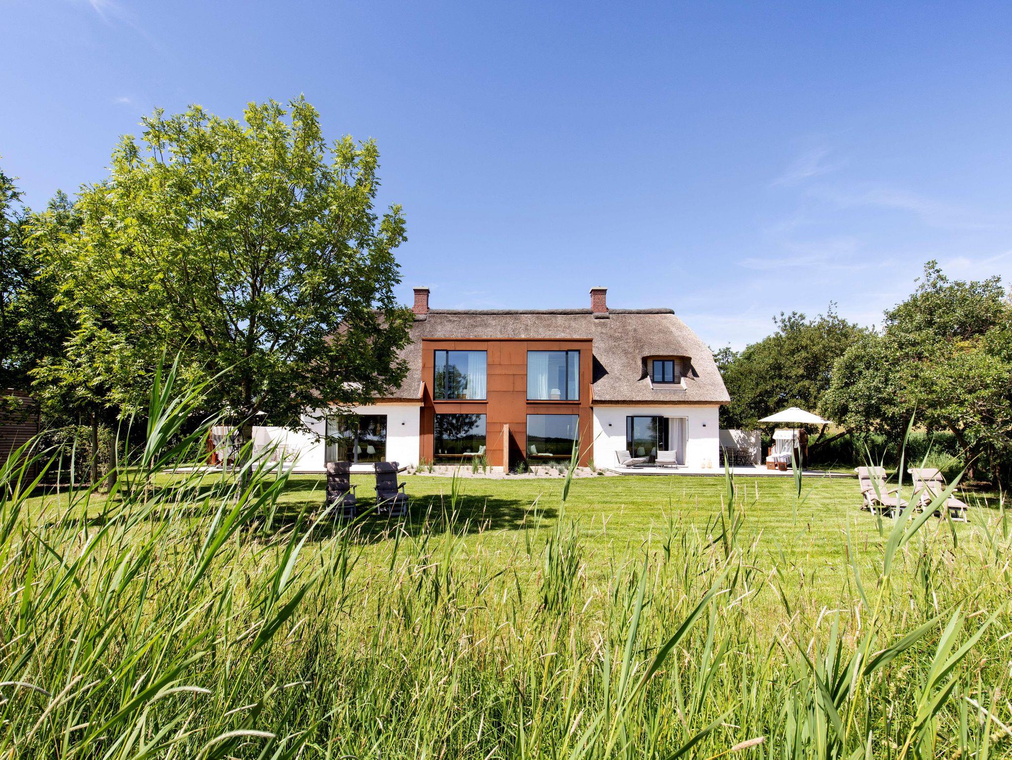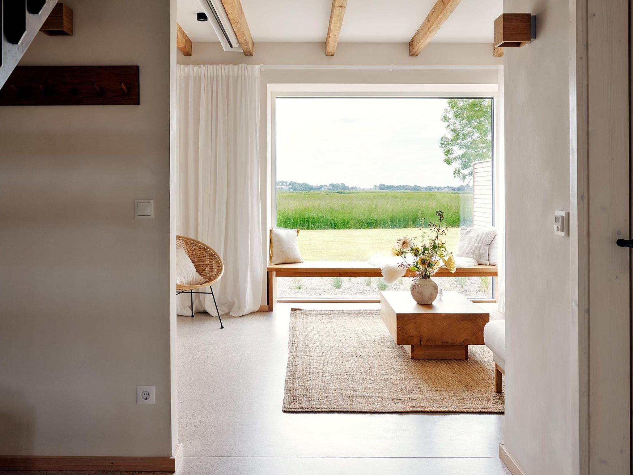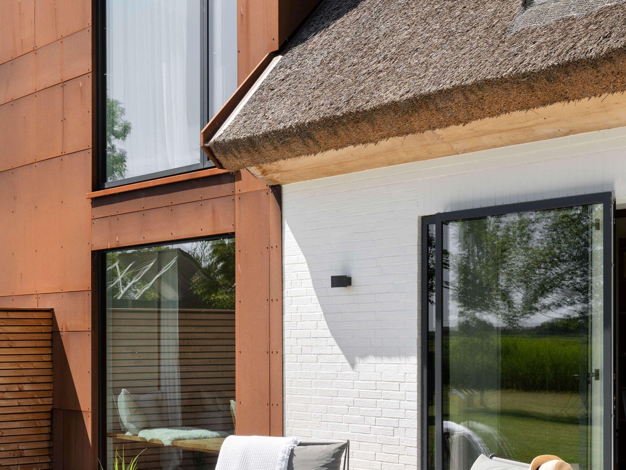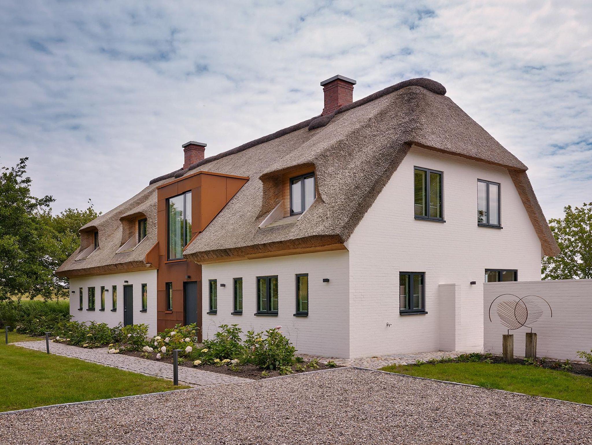 Der großzügige Wohnraum öffnet sich nach Süden und Osten mit bodentiefen Fenster- und Türelementen zu einer weiträumigen Holzterrasse und schafft so einen fließenden Übergang zwischen Innen und Außen, zur Weite der Wiesenlandschaft Eiderstedts. Das norderdiekhuus mit der großen, sehr gut ausgestattete Küche, mit dem breiten Sofa am Fenster mit Weitblick sowie den drei sehr gemütlichen Schlafzimmer im Obergeschoss, eins davon mit Bad en suite, bietet Platz für bis zu sechs Gäste. Die Ferienwohnung ist komplett mit Fussbodenheizung ausgestattet.