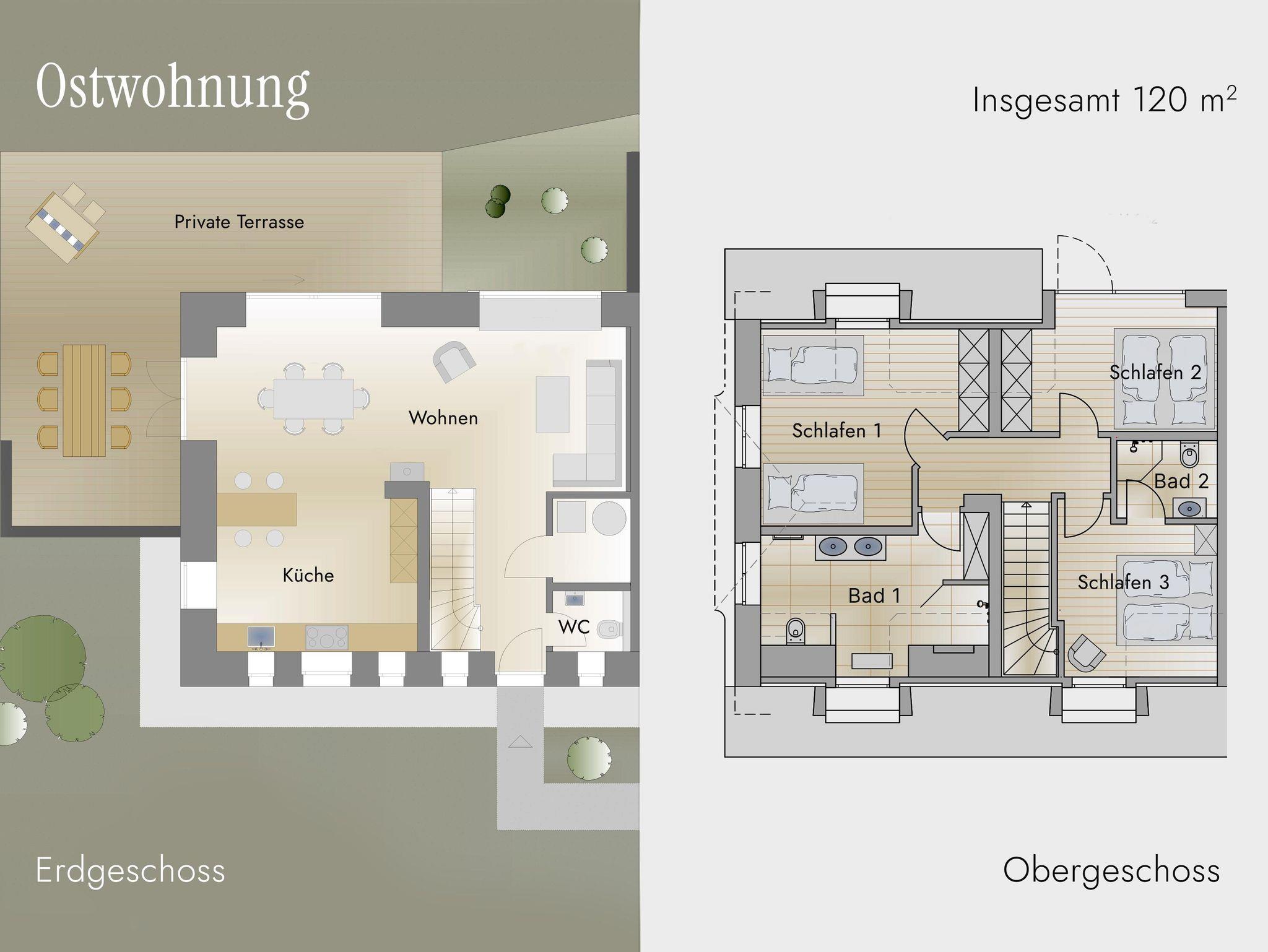 Ein zweites separates Duschbad mit WC im Obergeschoß und zusätzlich ein Gäste-WC im Erdgeschoß.