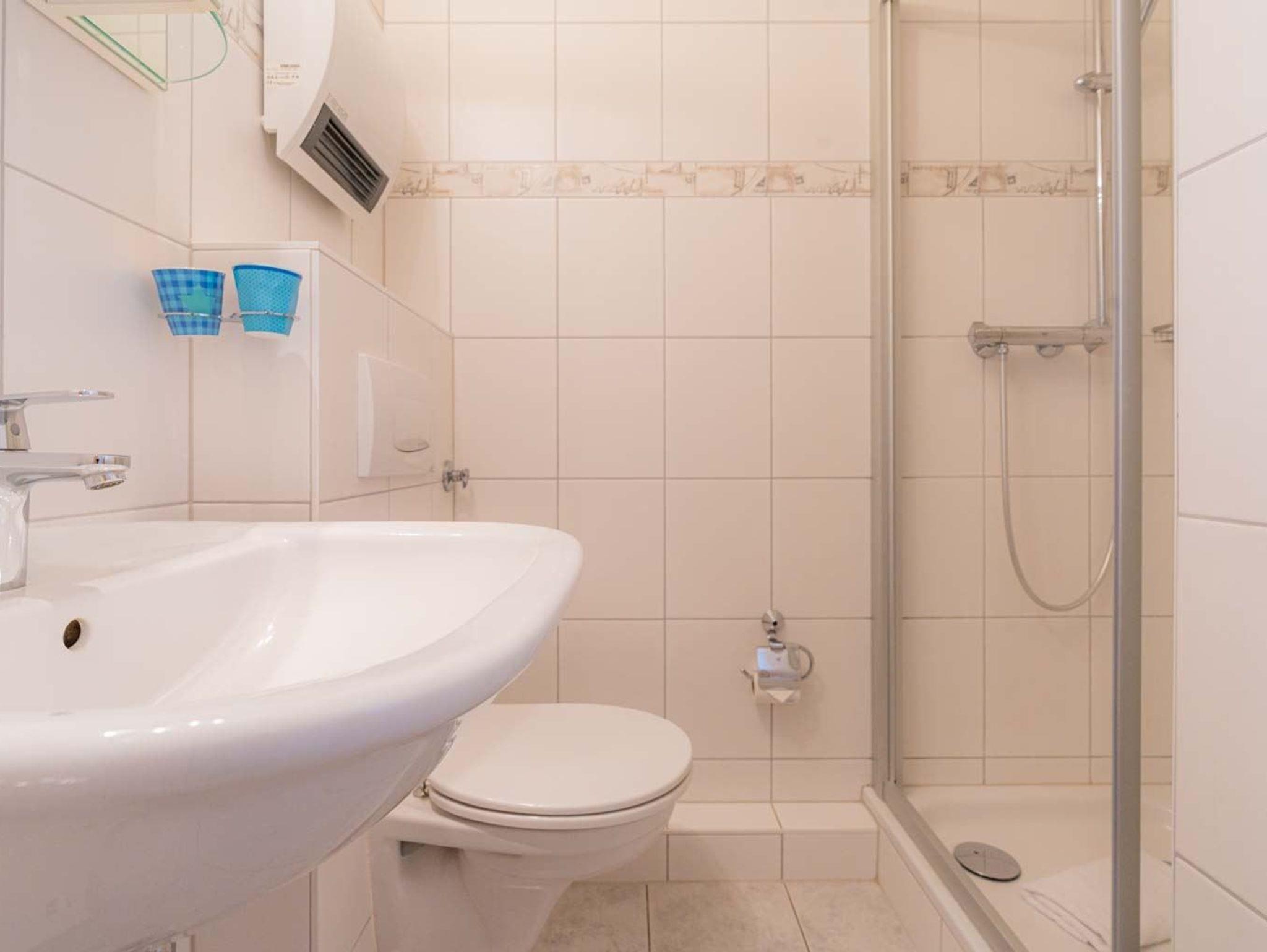 Badezimmer (Duschbad) mit Dusche und WC.