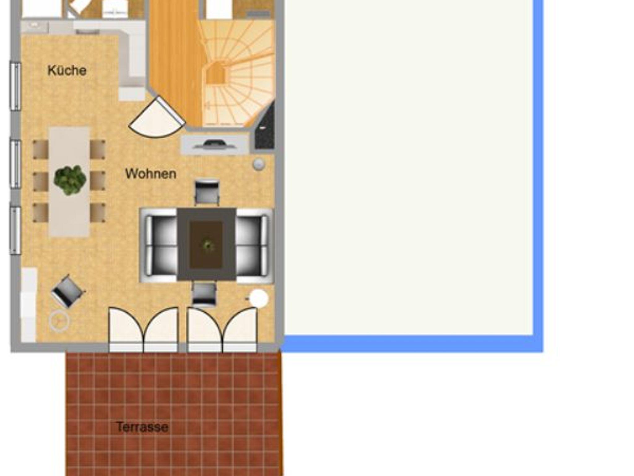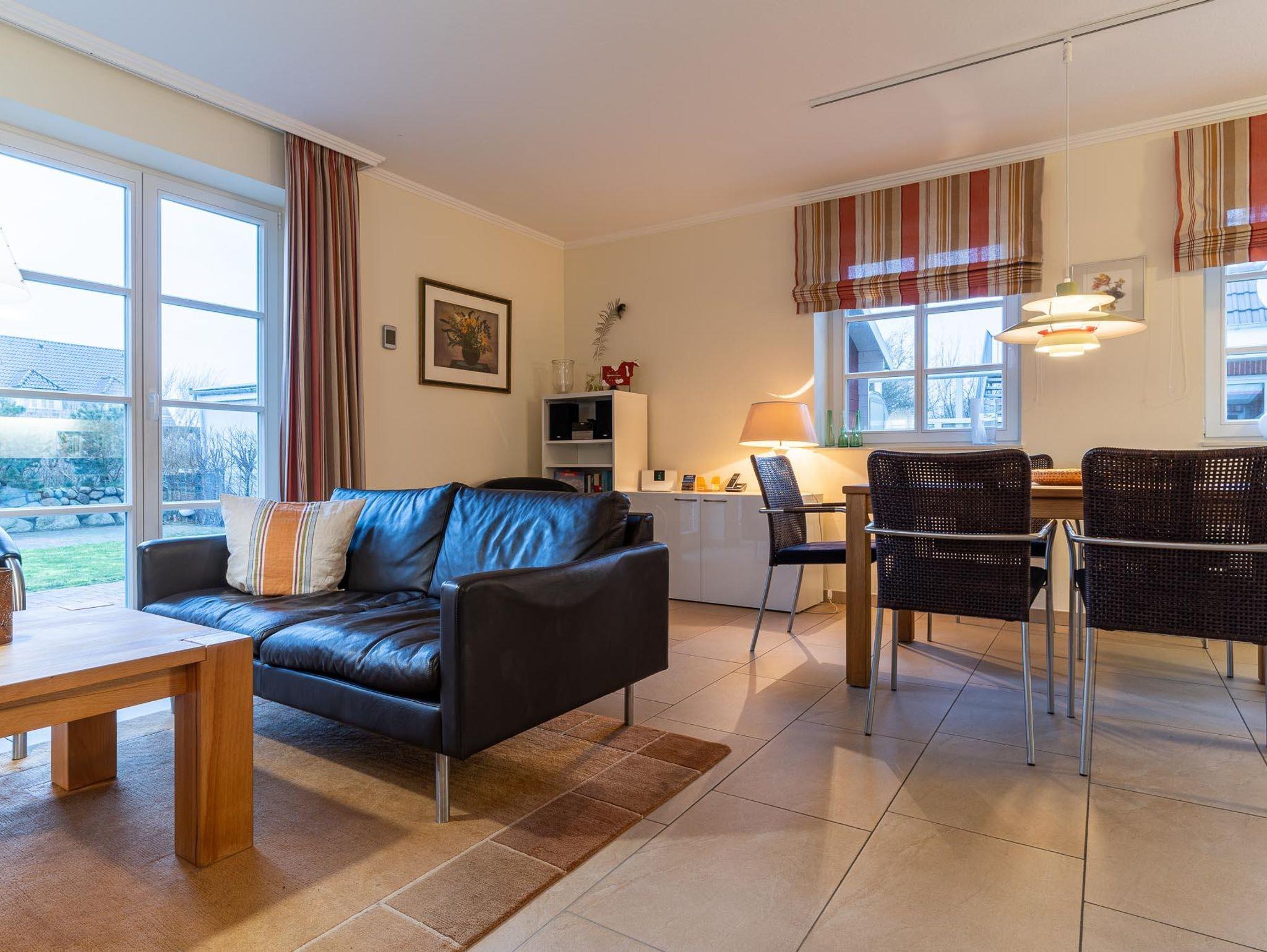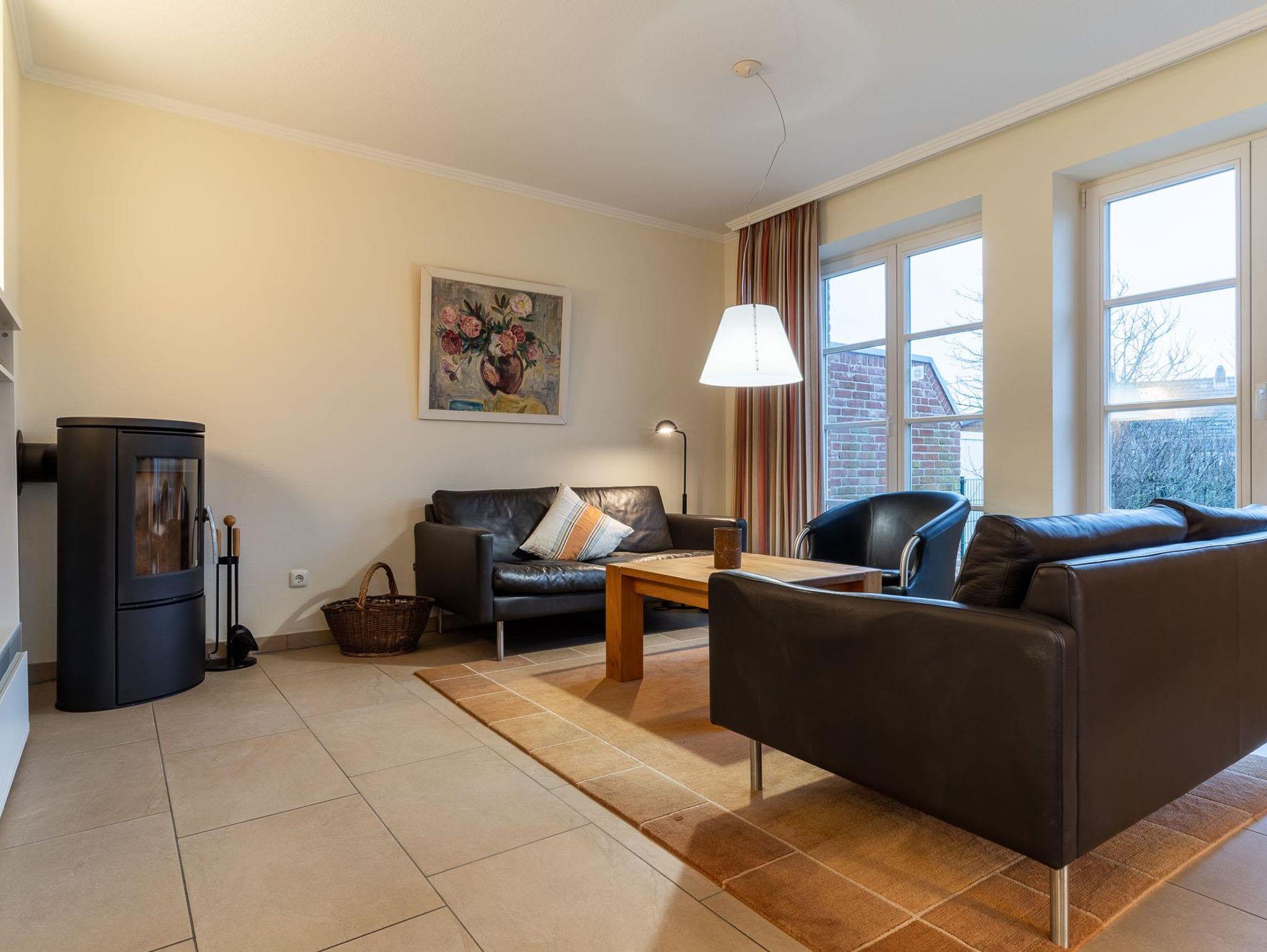 Im Erdgeschoss befindet sich das gemütliche Wohnzimmer mit dän. Kaminofen und großem Flachbildschirm mit DVD-Player sowie Stereo-Anlage mit CD Player. Der Esstisch sowie der hochwertige Küchenbereich mit E-Herd mit Ceran-Kochfeld und Backofen (mit Umluft u.s.w.), Kühlschrank (mit Gefrierfach), Mikrowelle (ohne Grill u. Heißluft), Geschirrspüler, Bestecken, Geschirr und Gläser für 6 Personen wird Ihnen gefallen.