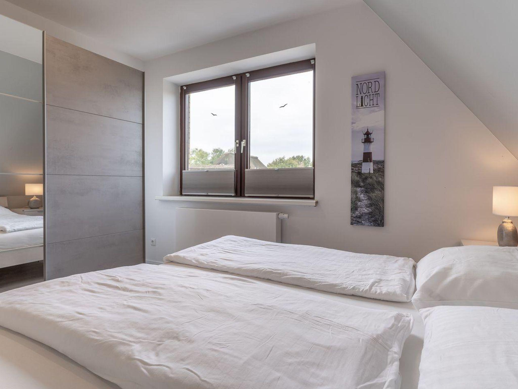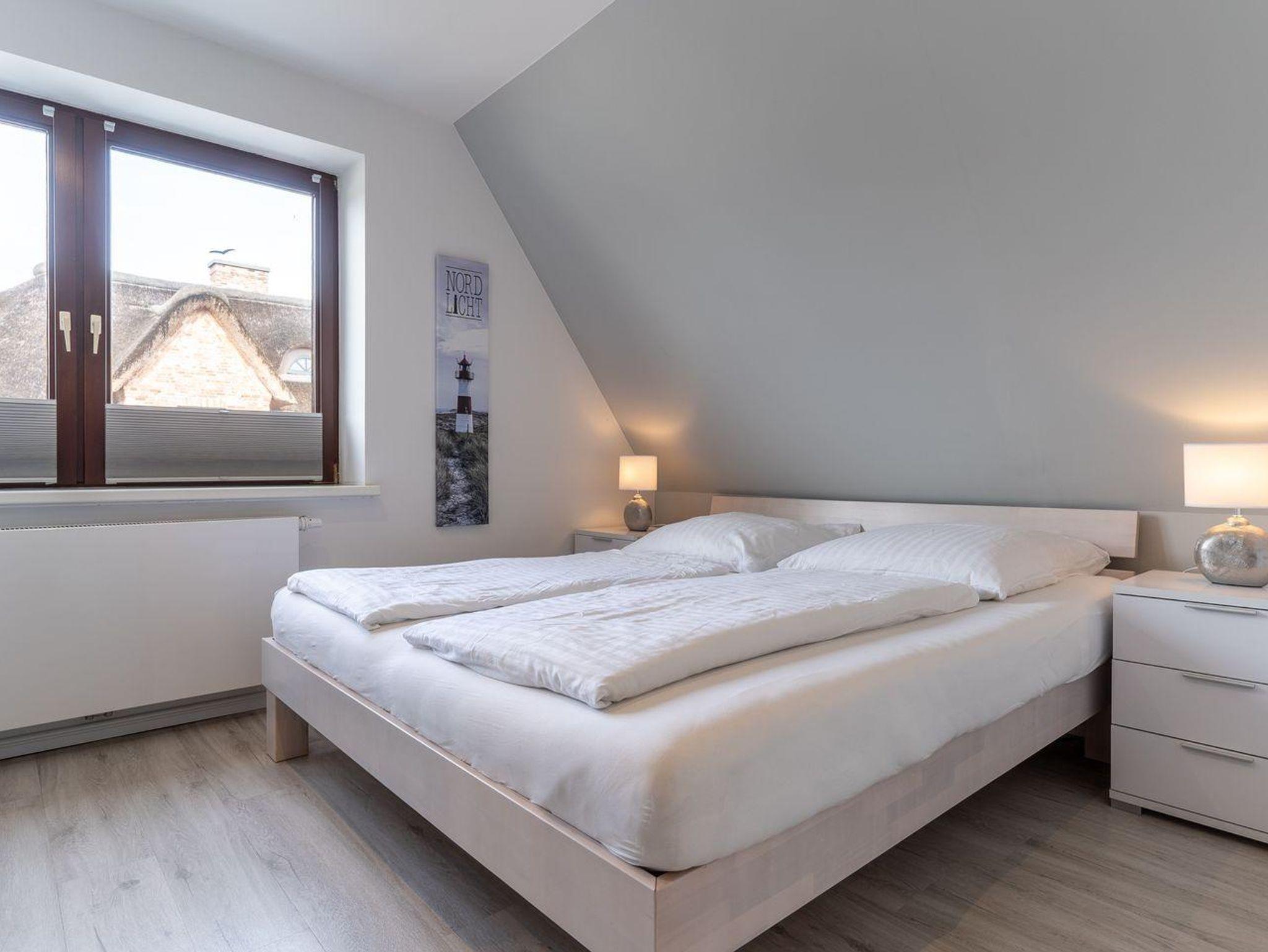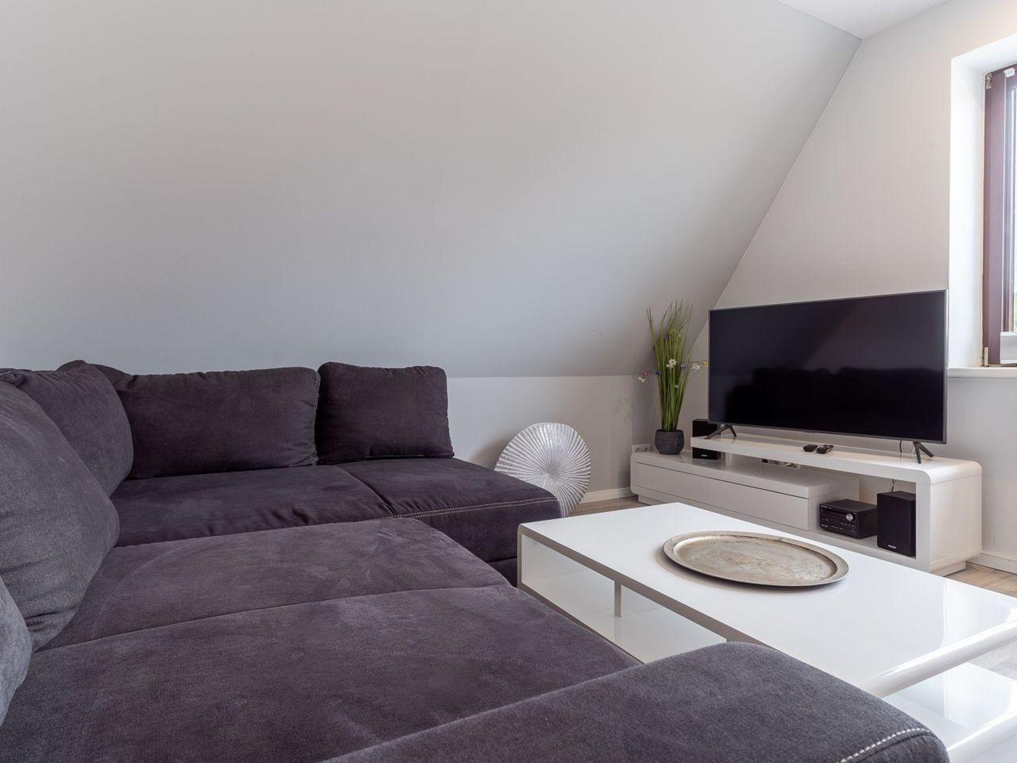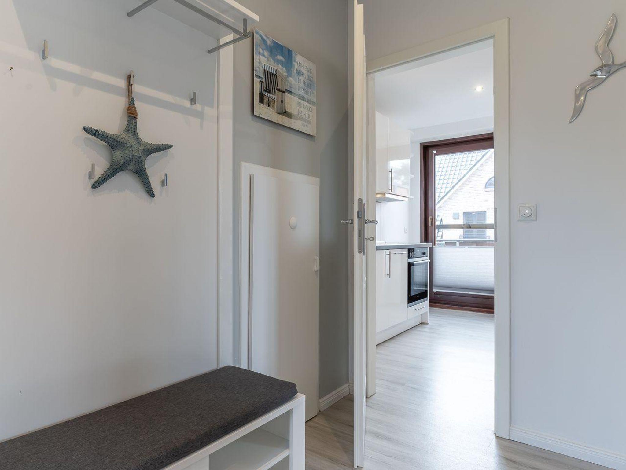 Die 45m² große Ferienwohnung welche im Jahr 2020 vollständig saniert wurde, liegt im Obergeschoss und bietet bis zu 4 Personen Platz für einen unvergesslichen Urlaub in St. Peter-Ording. Durch die Lage und Ausstattung ist die Ferienwohnung besonders familienfreundlich, Kinder sind hier herzlich willkommen. Die Ferienwohnung verfügt über einen nach Südwesten hin ausgerichteten, vollständig möblierten Balkon, der Abendsonne für ein herrliches Beisammensein bietet. Auch Urlaub mit Hund in St. Peter-Ording ist hier möglich. Das moderne Wohnzimmer ist hell und freundlich gestaltet. Zur Ausstattung gehören eine komfortable Couch und der große Esstisch, an dem die ganze Familie Platz findet. Die Couch lässt sich zum komfortablen Schlafplatz für 2 Personen umfunktionieren. Für die multimediale Unterhaltung sorgen ein großer Flachbild-TV, Radio mit Bluetooth und kostenfreies W-LAN. Für die Versorgung im Urlaub sorgt die vollumfassend ausgestattete, angrenzende Küche der Ferienwohnung. Hier stehen neben Cerankochfeld und Backofen noch Kühlschrank, Mikrowelle und Nespresso-Maschine bereit. Ein Waschtrockner steht für Gäste kostenfrei zur Verfügung. Orangenpresse und Milchaufschäumer gehören ebenfalls zum Inventar. Im hellen, einladenden Schlafzimmer steht ein komfortables 170x200cm Doppelbett zur Verfügung. Zur edlen Ferienwohnung gehören weiterhin Duschbad mit WC und Haartrockner. Die meisten Fenster der Ferienwohnung sind mit Fliegenschutzgitter und Verdunklungsplissees ausgestattet. Die große Fensterfront ist mit elektrischem Außenrollo ausgestattet, um Licht und Sichtschutz nach Belieben regulieren zu können.